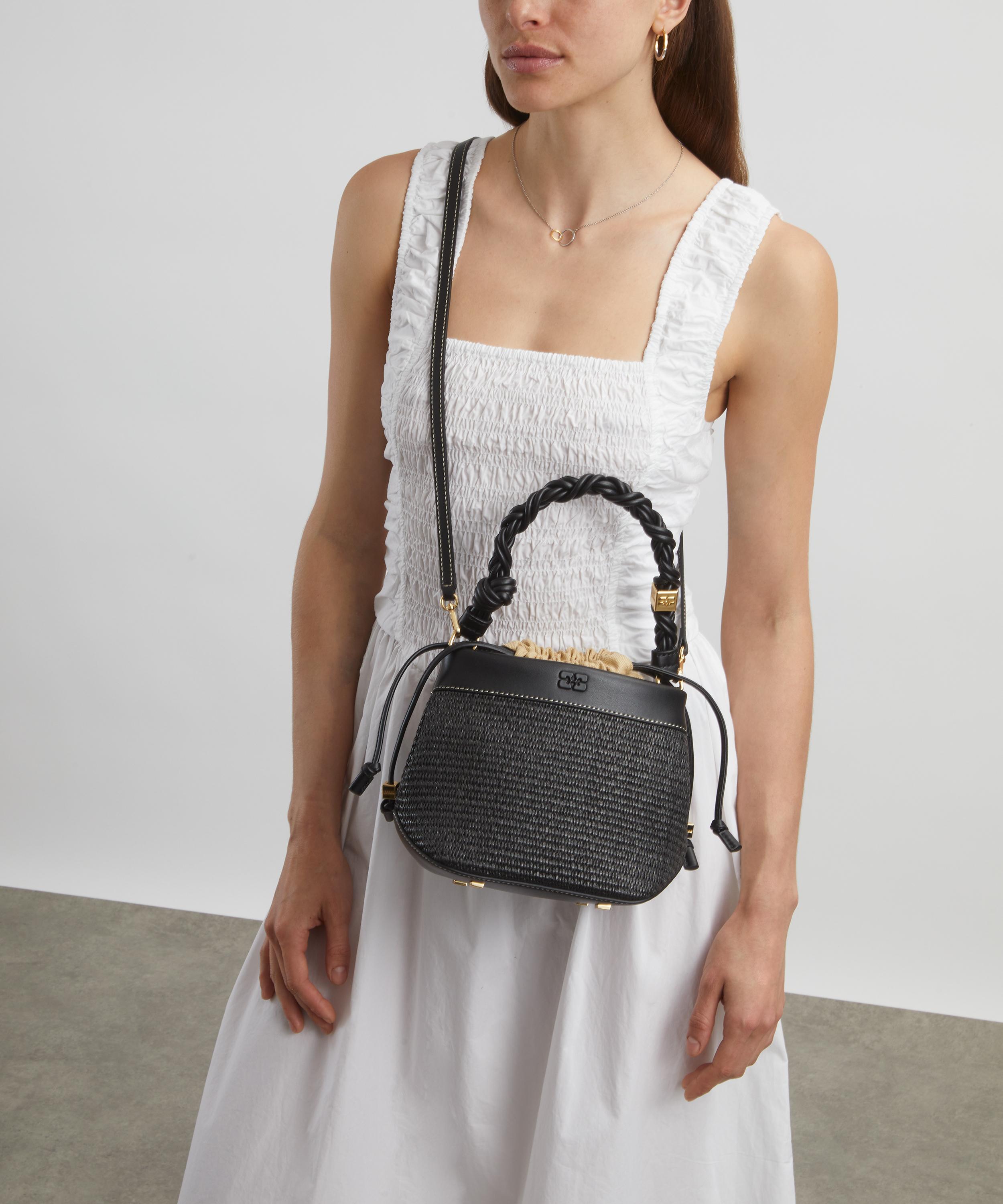 An endlessly stylish addition to your new season edit, this bucket bag is woven from raffia by millennial-favourite Danish brand, GANNI.