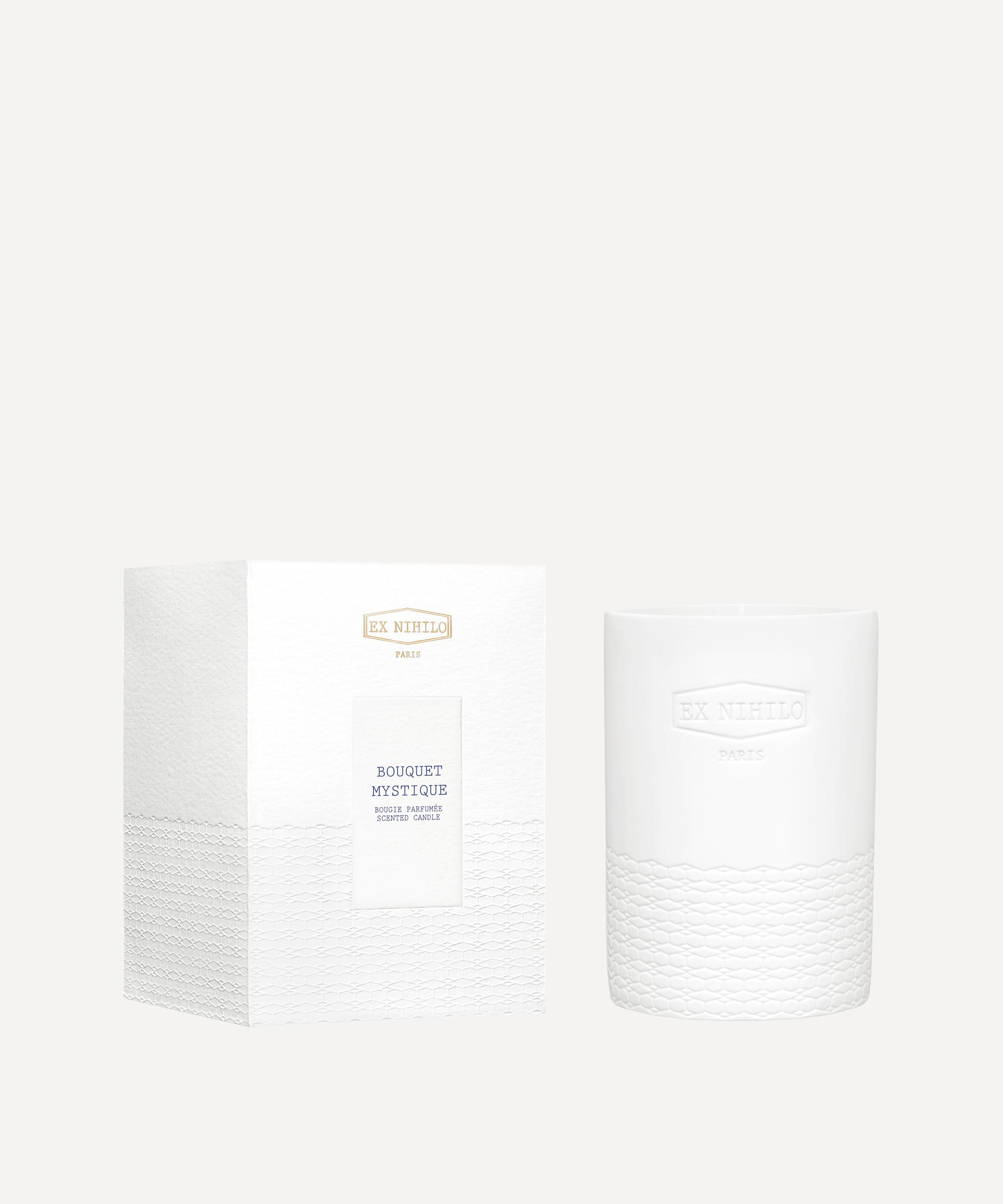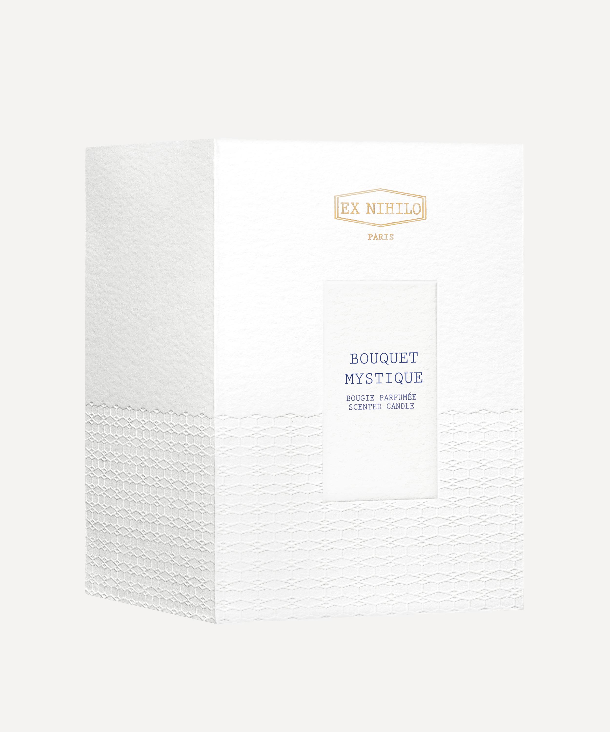 Parisian fragrance house EX NIHILO present the Bouquet Mystique scented candle, showcasing an expertly blended, harmonious aroma with notes of fresh, white flowers mingling with aromatic curls of incense.