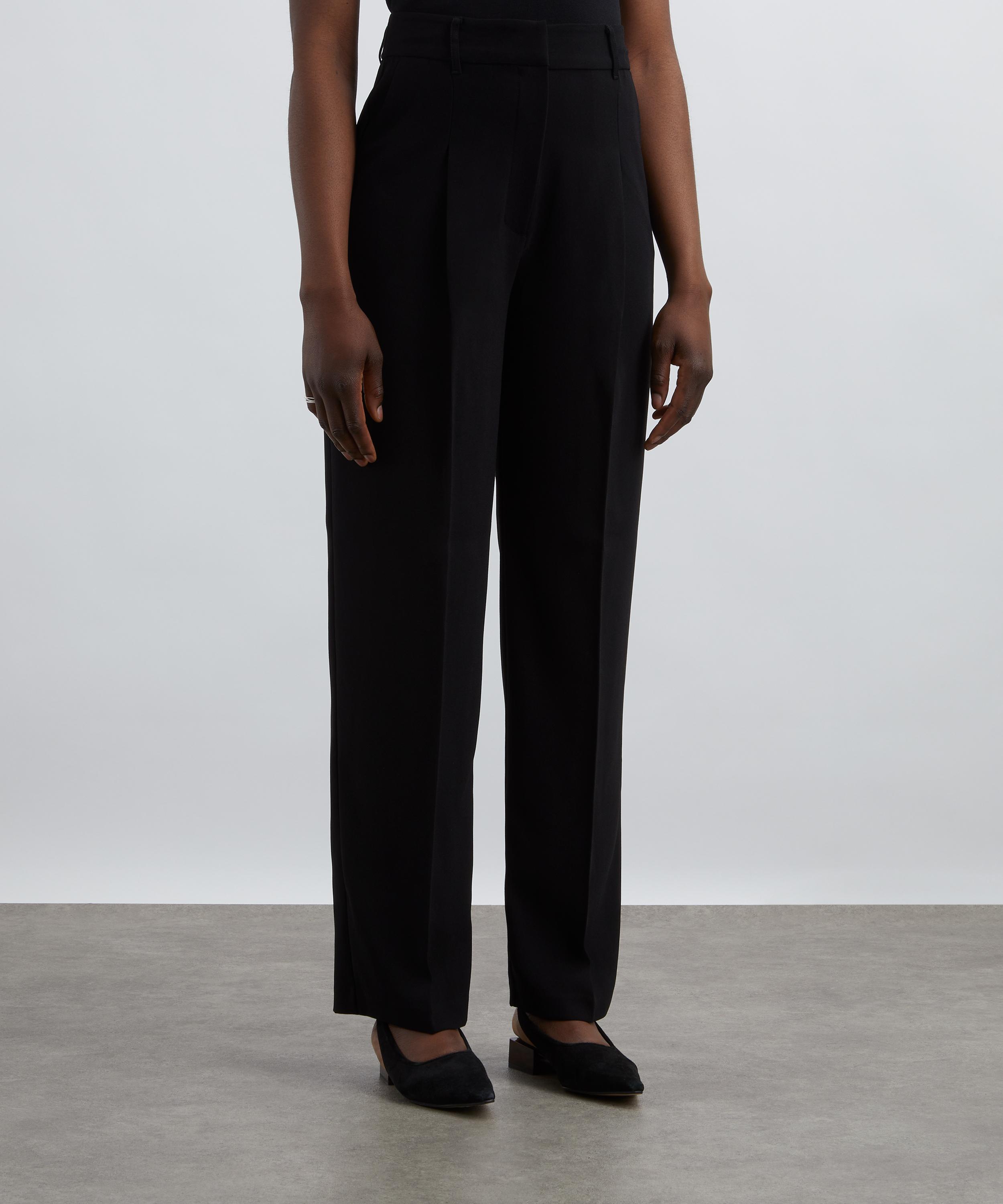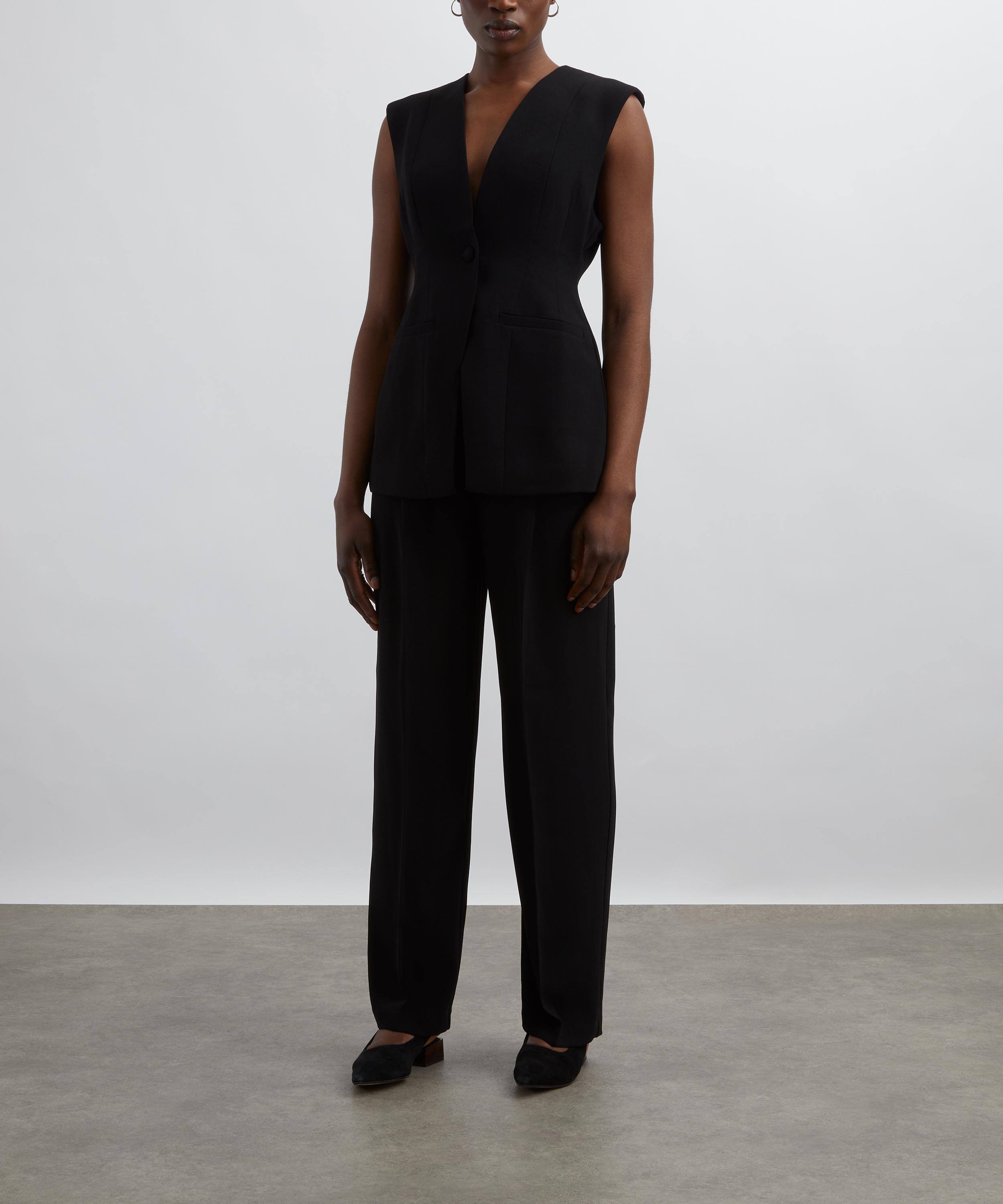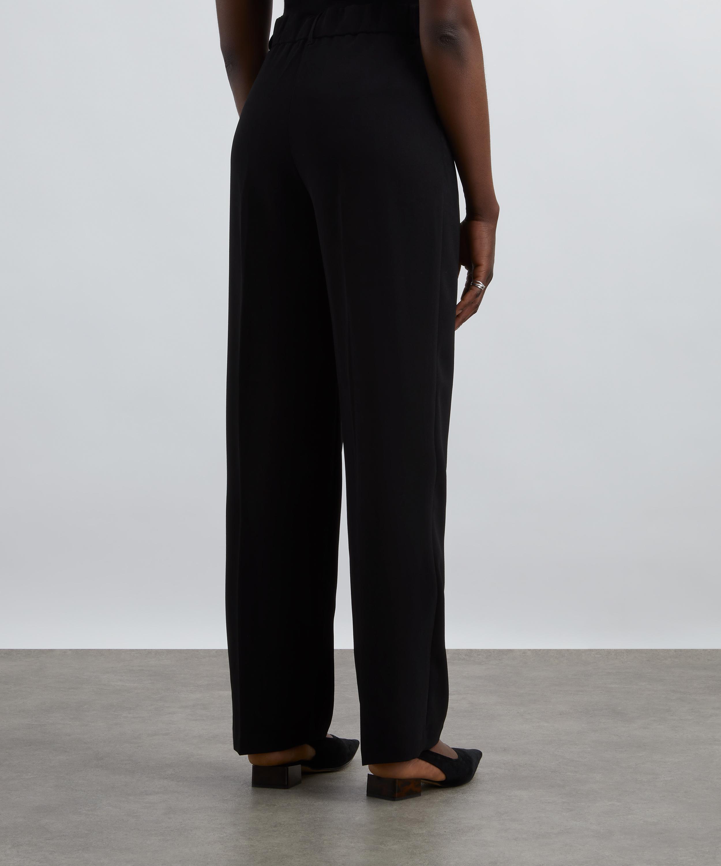 Cut from black crepe to a slick silhouette, these voluminous, full-length trousers feature slanted side pockets, a wide elastic waistband and front pleats, complemented by back darts for a tailored fit. Pair with the Briella vest for an elegantly sculptural co-ord.Composition & Care