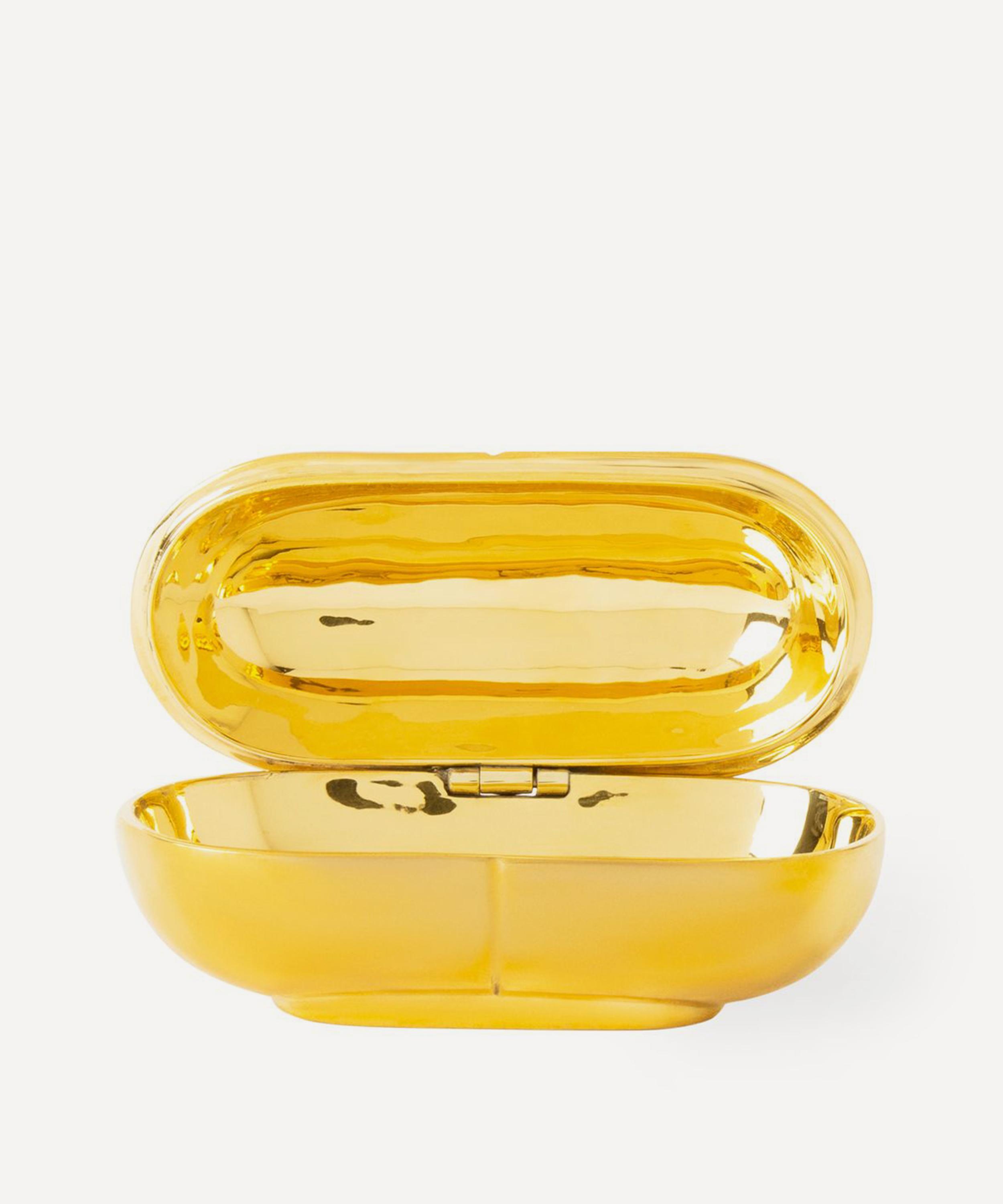 Jonathan Adler’s Brass Prozac pill box presents the New York based brand’s flair for seriously designed pieces that don’t take themselves too seriously.