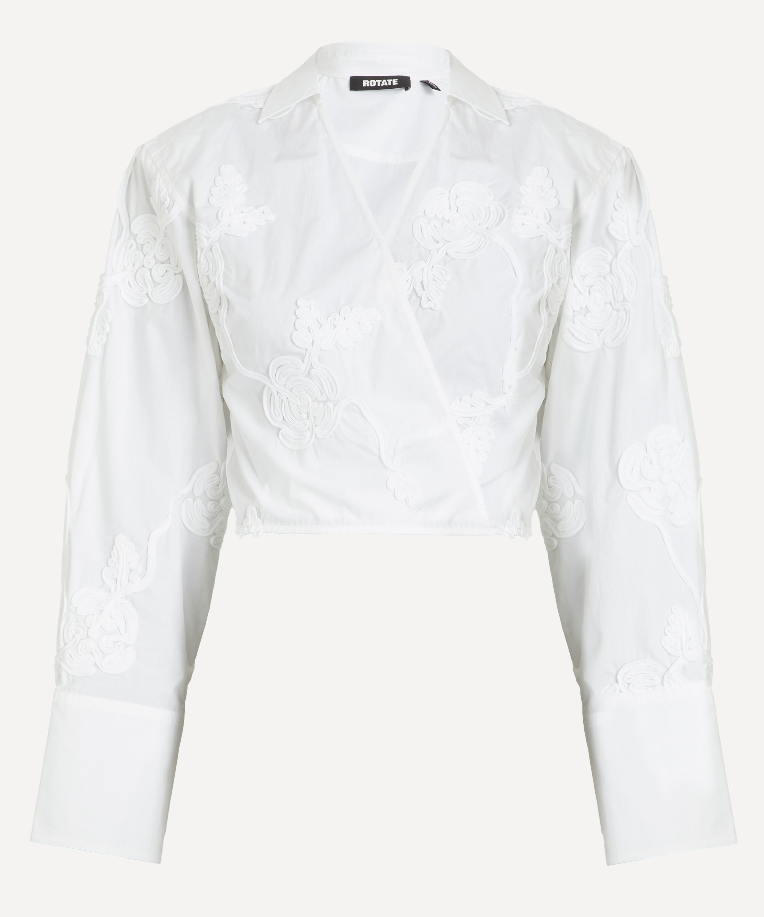 The Bright White Flower Wrap Shirt from ROTATE Birger Christensen brings a bold dose of Copenhagen cool to your evening wardrobe.