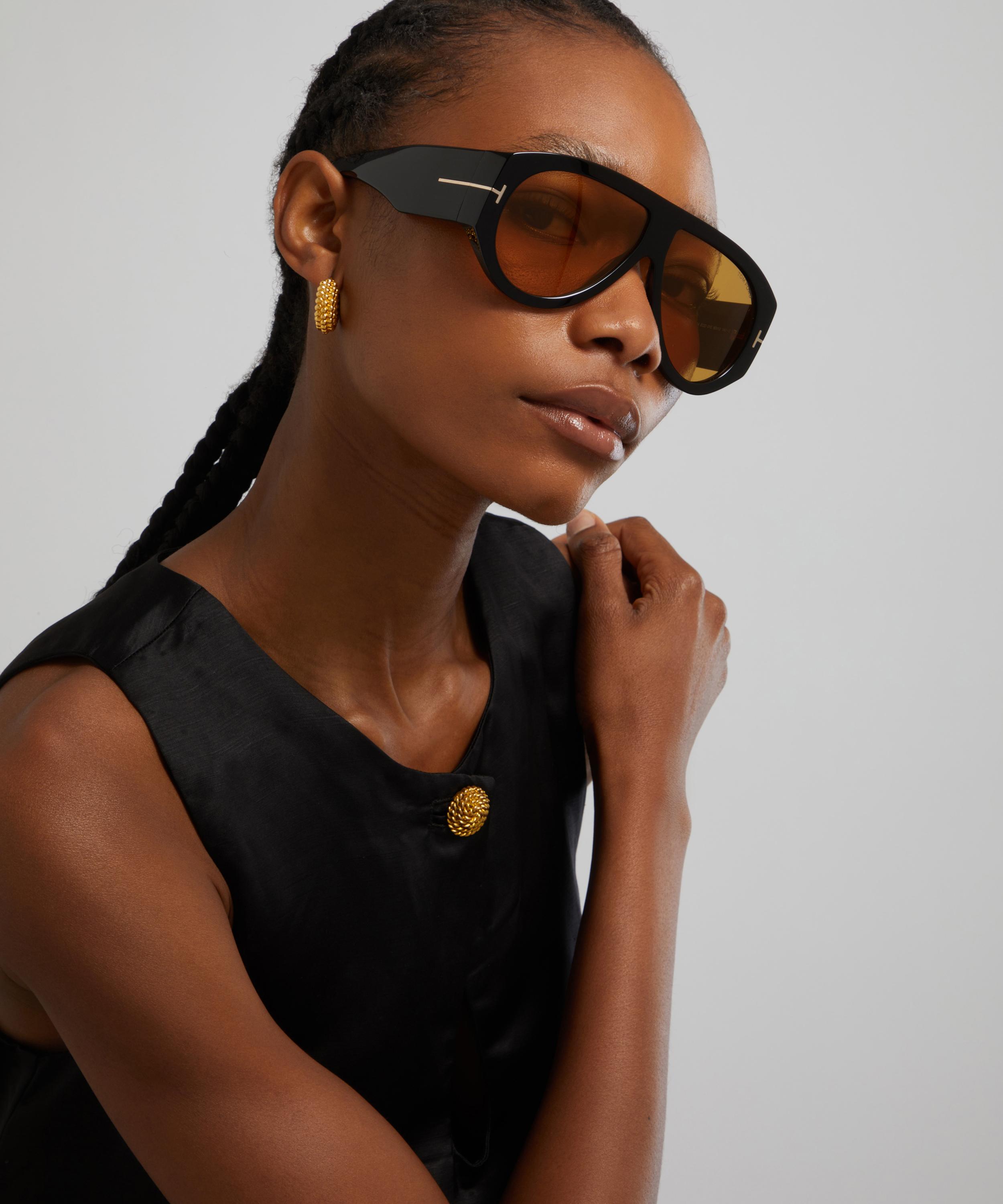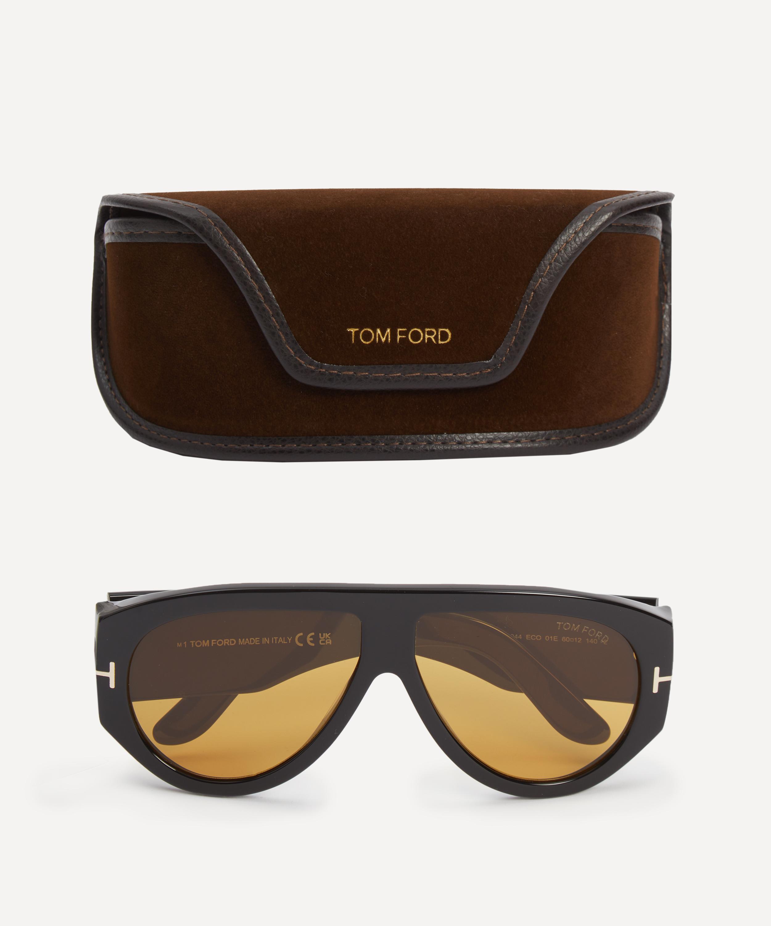 Compliment your outfit and infuse a bit of edge with the Bronson aviator sunglasses from Tom Ford. Fusing retro-inspired design cues with a premium quality craftsmanship, these specs showcase the brand’s penchant for bold, statement frames. Expertly crafted from black acetate with yellow-brown tinted lenses, they’re finished with a metal T logo to the temples – boasting a prerequisite addition to your eyewear edit.