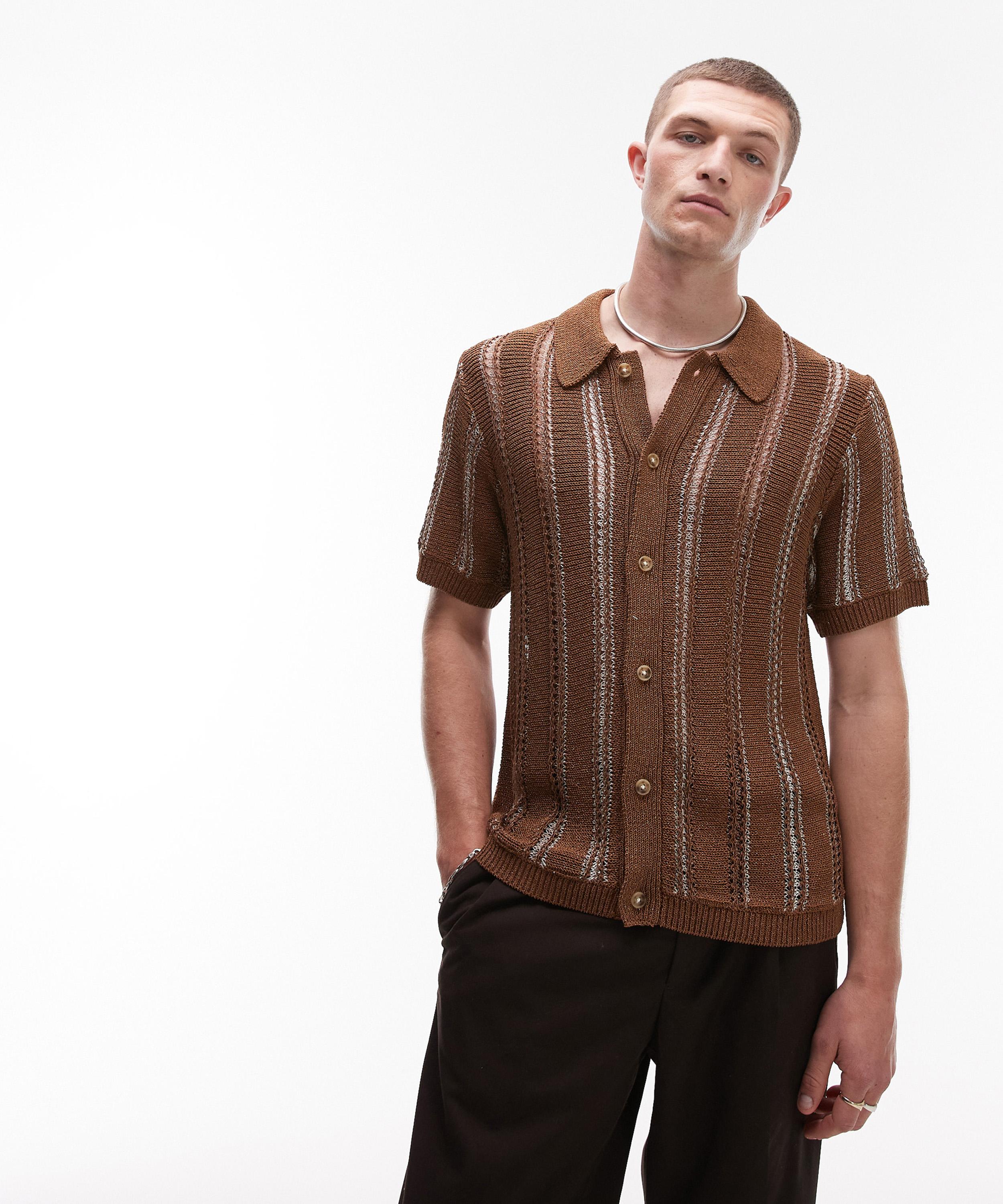 This Brown Knitted Button-Through Shirt is part of the exclusive Liberty x TOPSHOP residency, marking TOPMAN’s highly anticipated relaunch at Liberty.