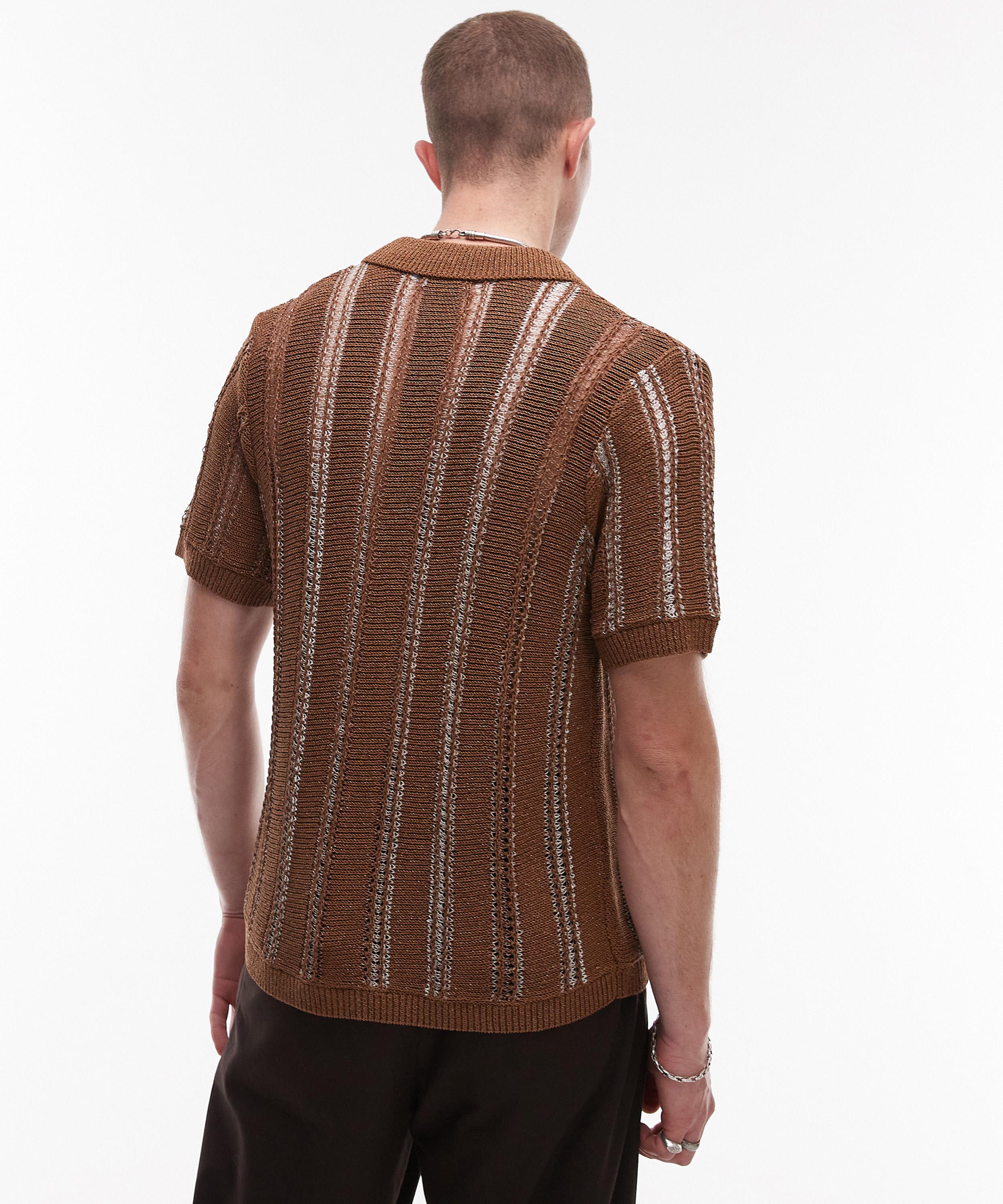 Brown Knitted Button-Through Shirt