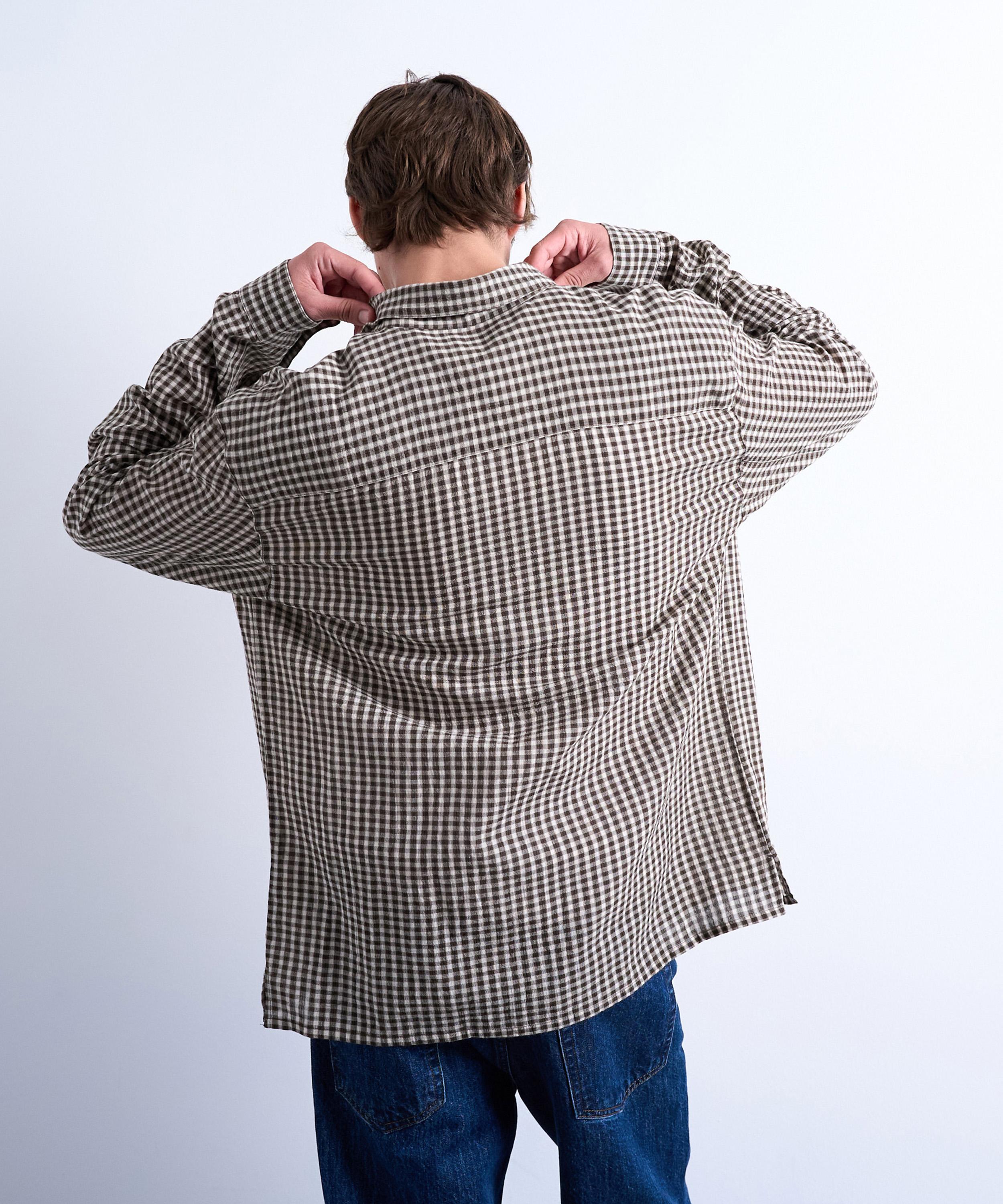 Crafted from woven cotton fabric adorned with a brown gingham design, this shirt is designed with a regular fit featuring a spread collar, long sleeves, buttoned cuffs, and a button placket - offering a timeless, everyday layer.