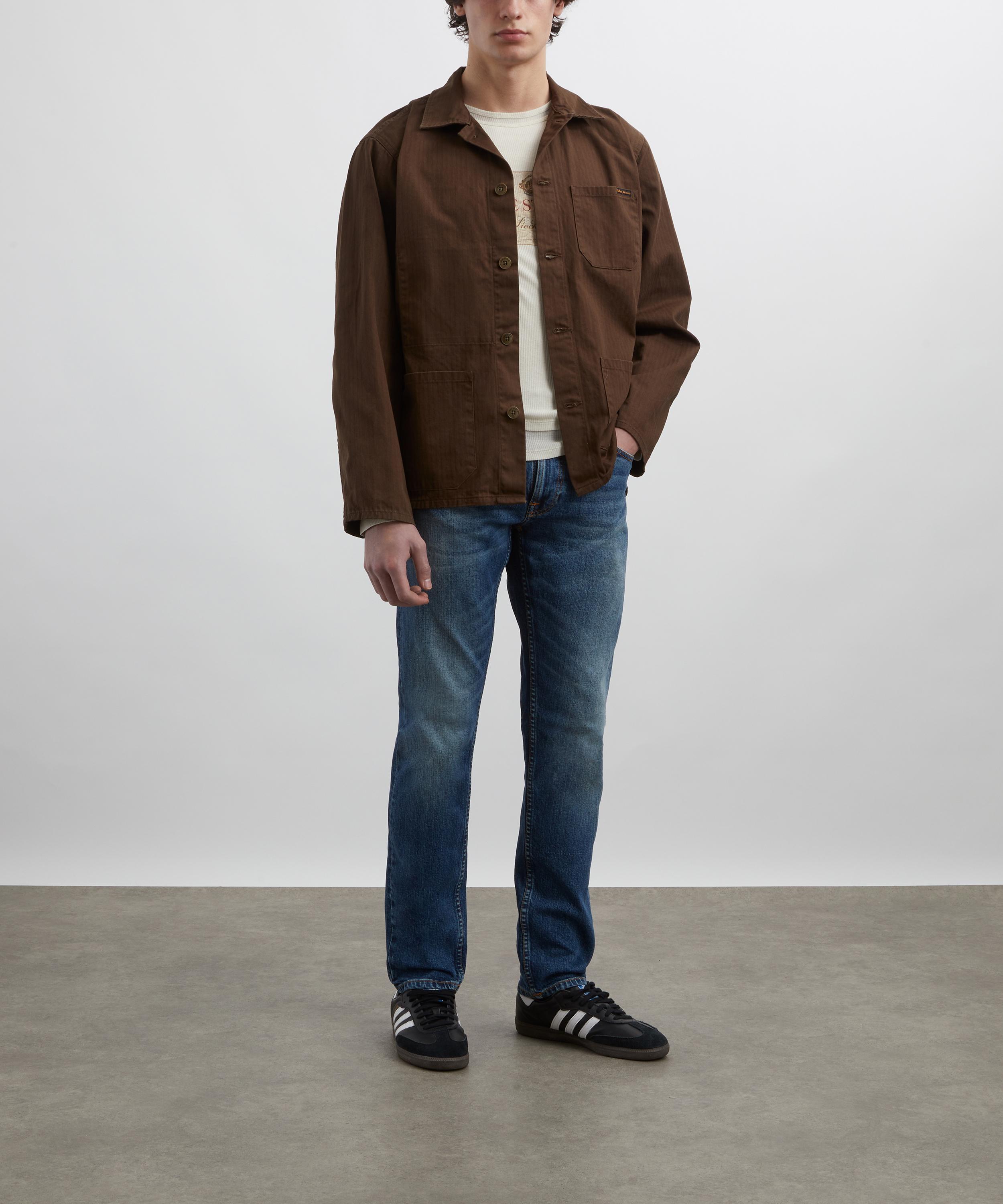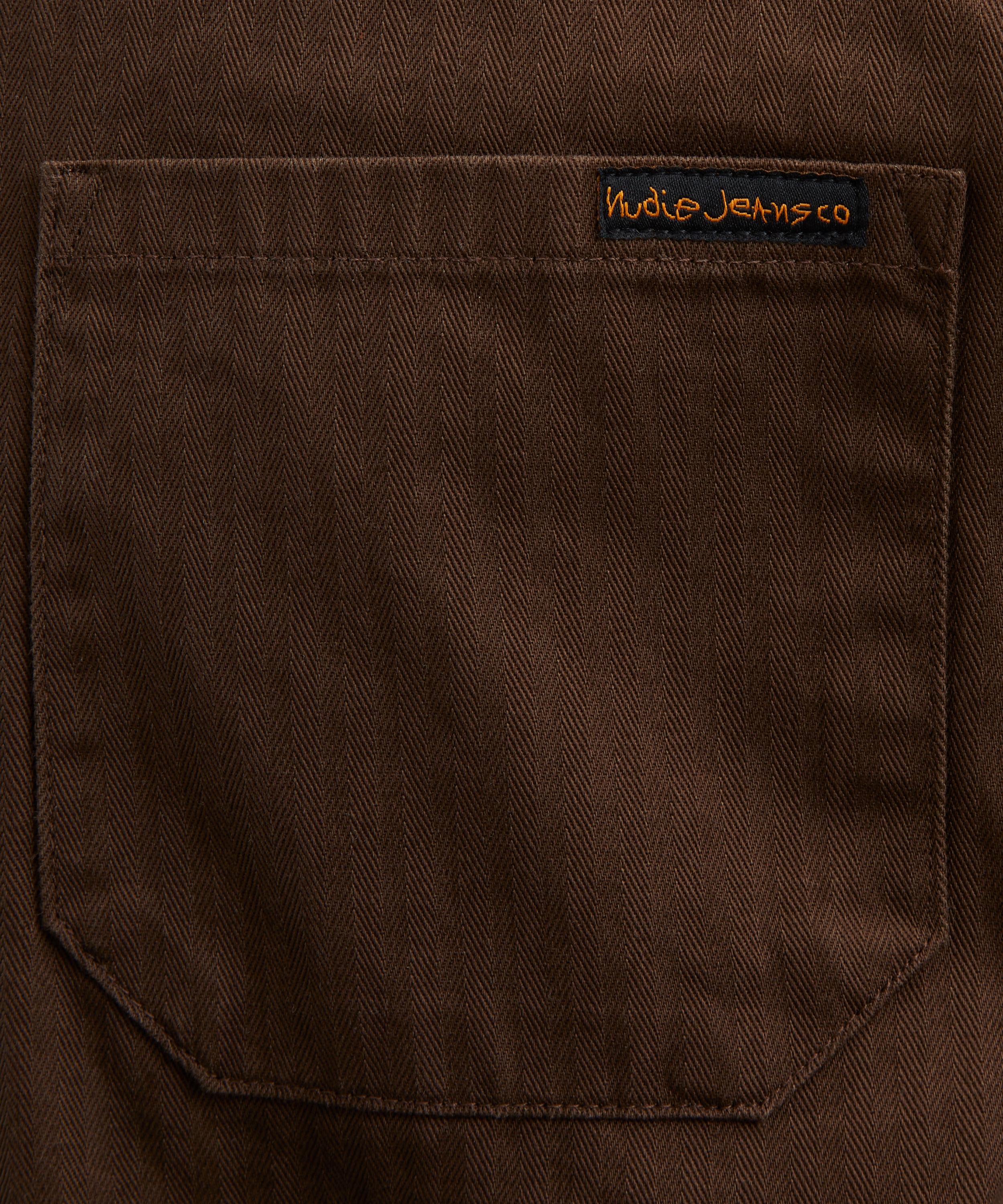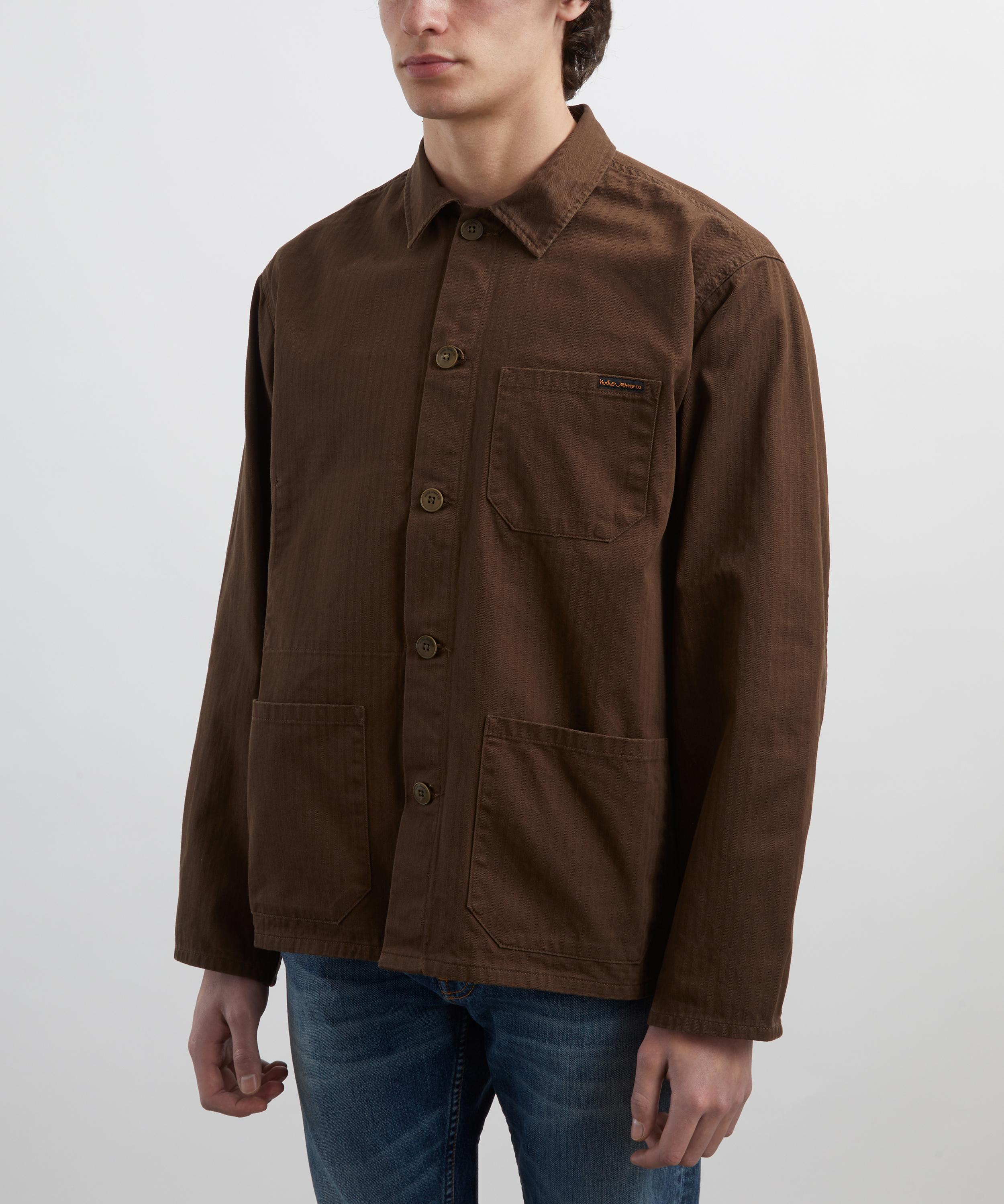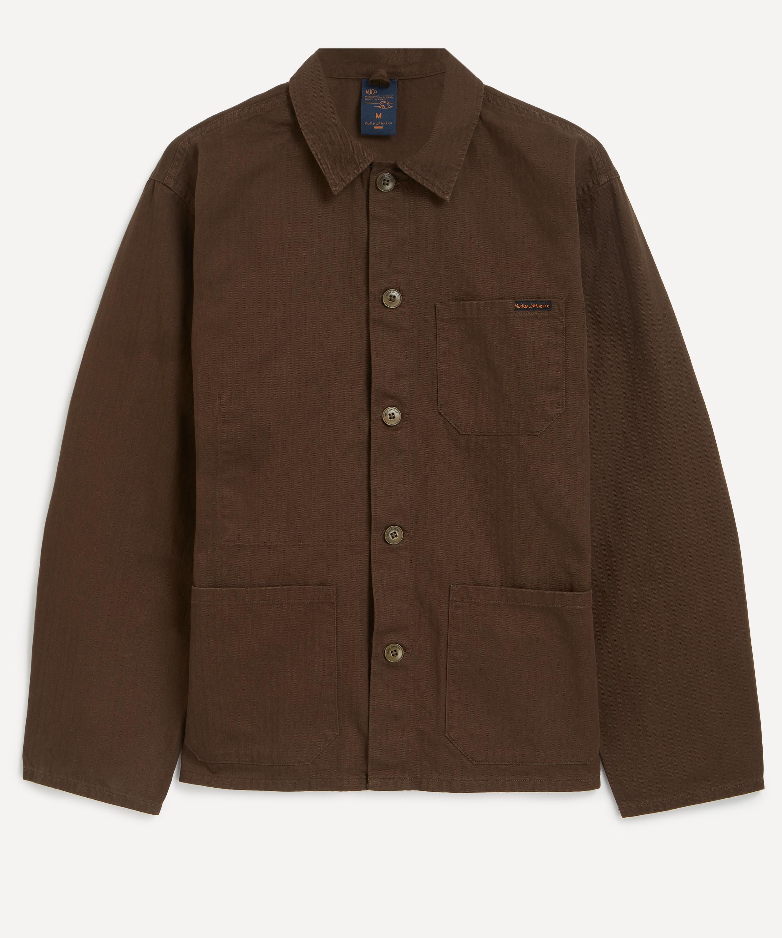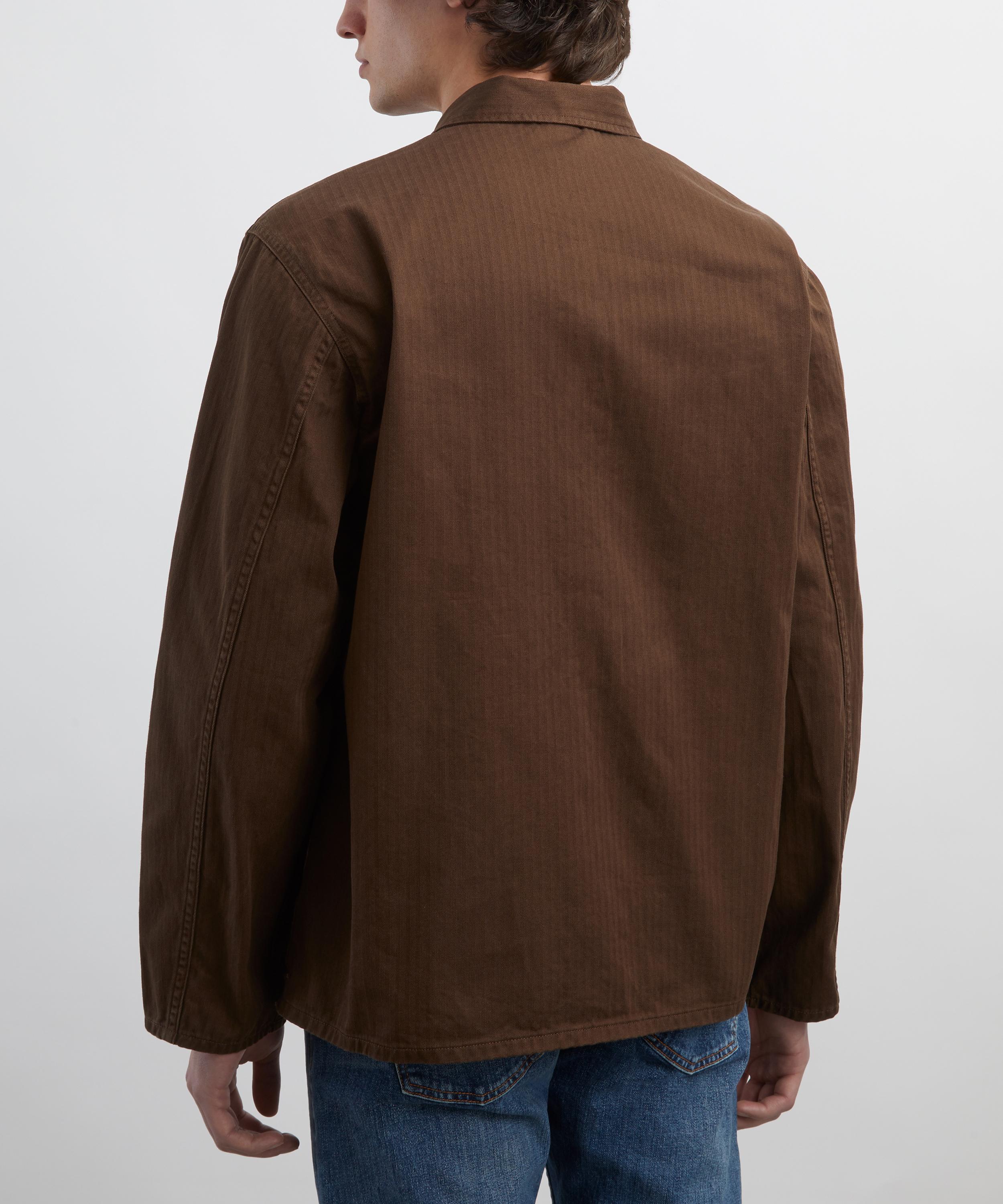Slickly crafted in herringbone twill, this workwear-inspired jacket features all the essential details with three patch pockets, a buttoned front closure and point collar with the main seams sewn with felled twin-needle seams for a clean and sturdy finish.