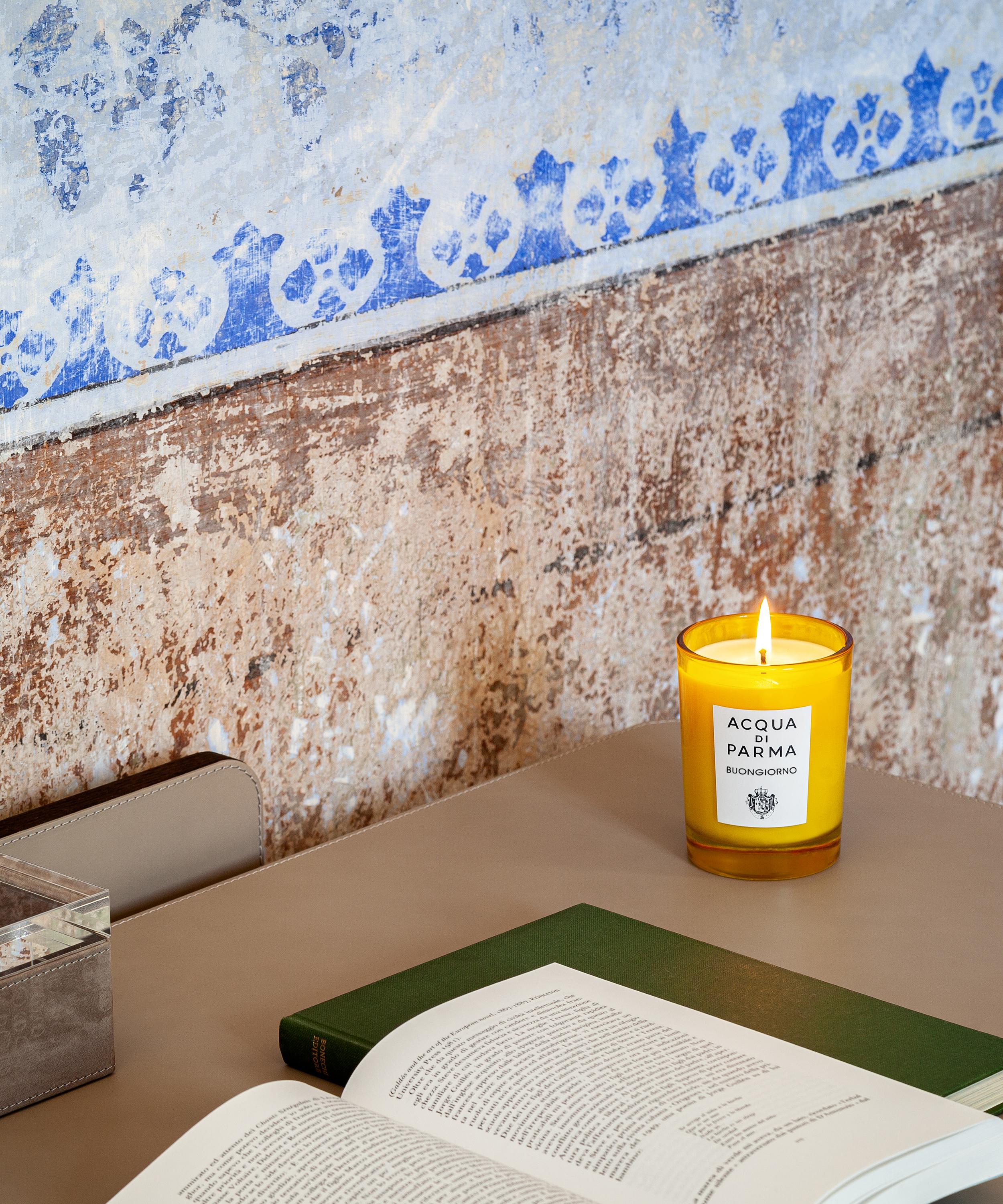 Buongiorno scented candle from Acqua Di Parma diffuses enchantingly fresh scents blended to awaken your day.
