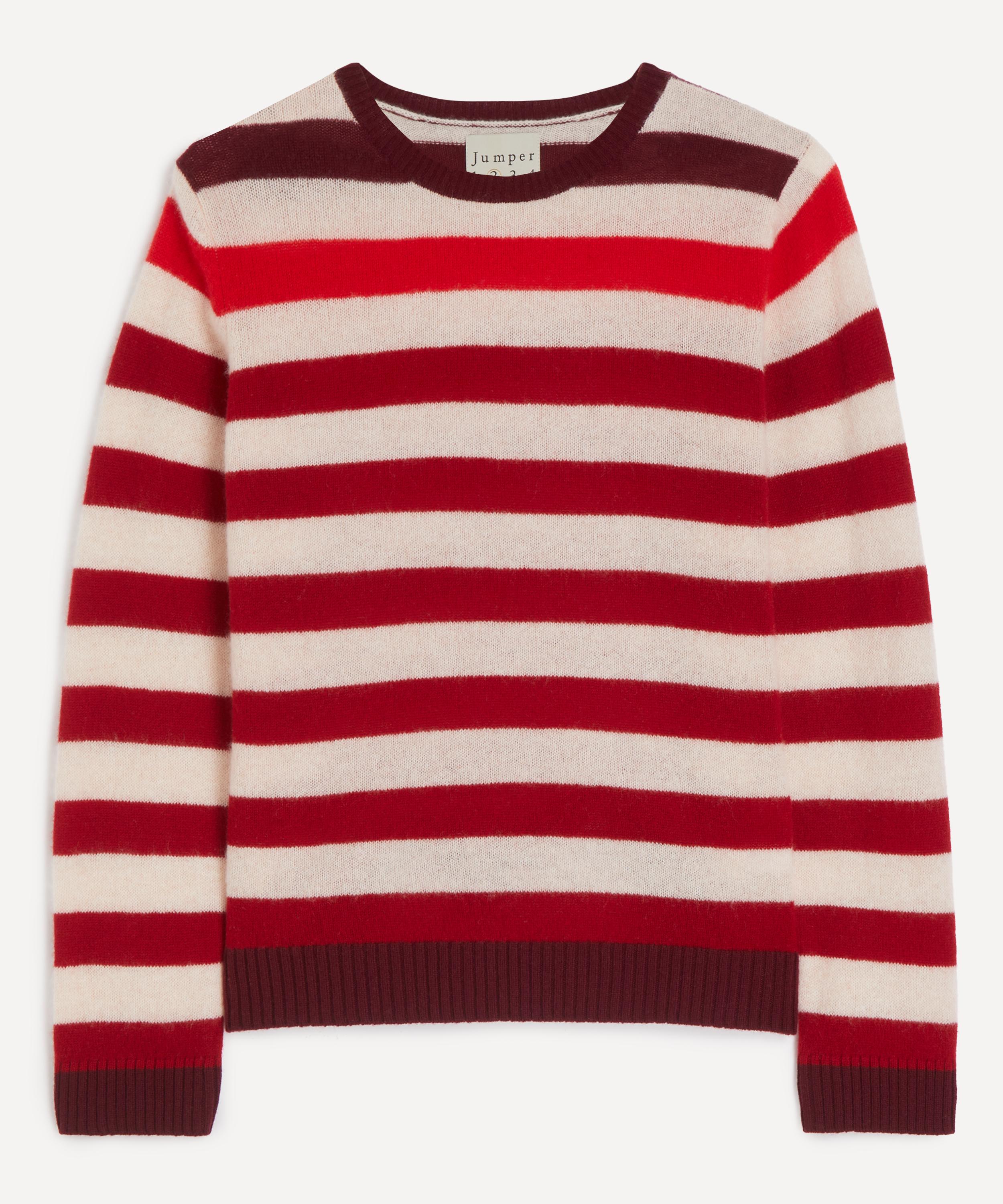 Crafted from lightweight cashmere, this sumptuous knit features a striped design in rich shades of burgundy. Cut to a true-to-size fit, it’s finished with a classic crew neckline and ribbed trims for an effortlessly cosy yet refined look.