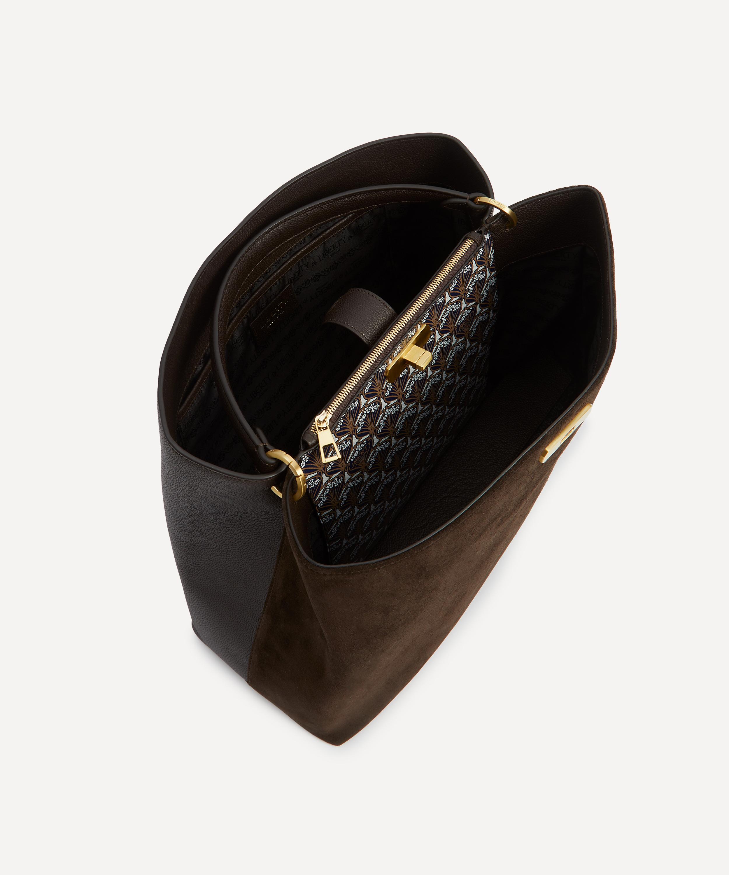 Made from beautiful suede leather, it features a structured, boxy silhouette for a polished and clean look, perfect for pairing with both off-duty and tailored workwear ensembles. With two main compartments secured by a central zip section and elegant turn-lock, inspired by Liberty Central Atrium, it’s functional and timeless design is further adorned with a peek of our iconic Iphis print. Complete with an adjustable shoulder strap that can be worn over the shoulder or cross-body, it evokes a luxury investment piece that can be styled with everything, designed to last season after season.