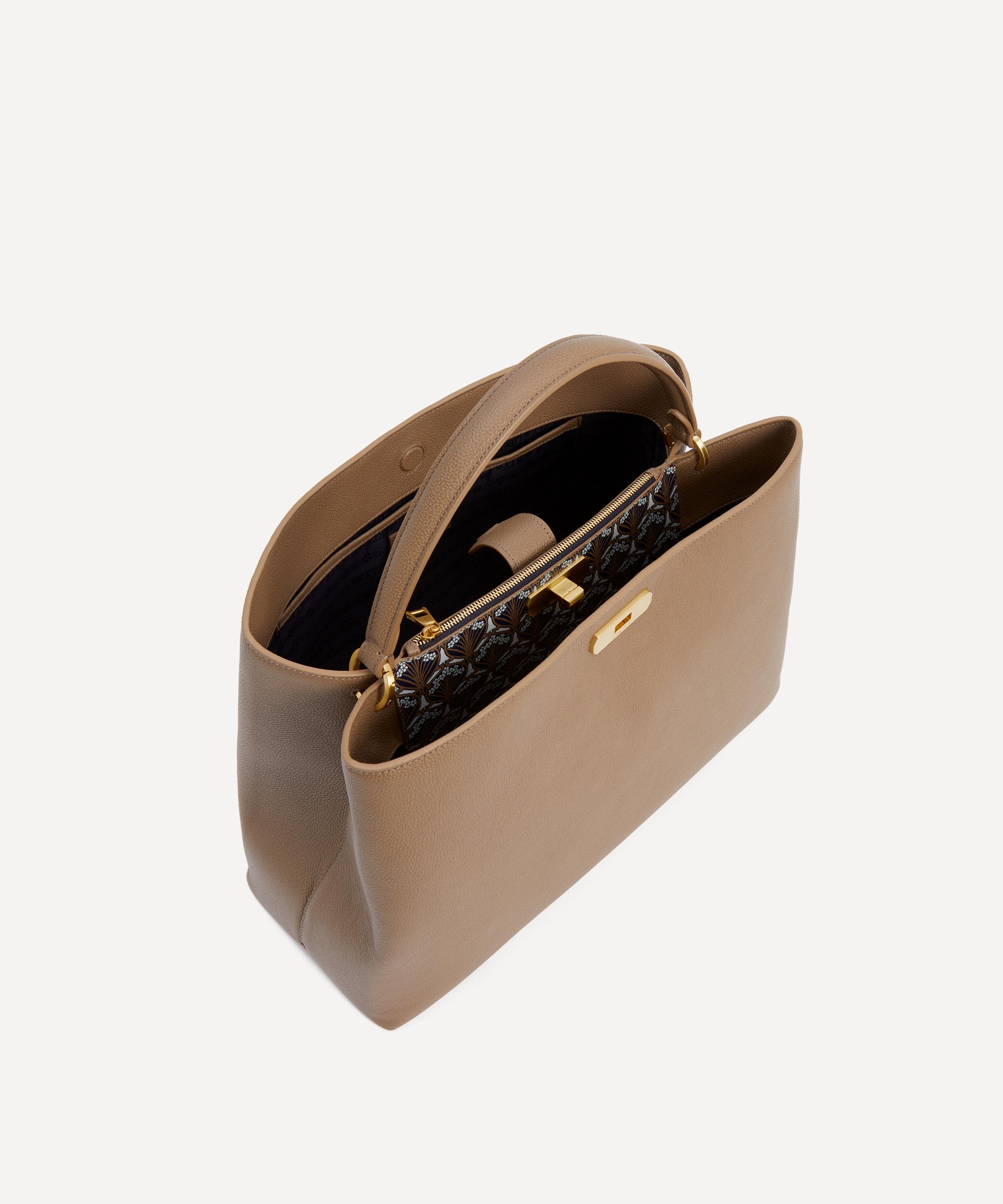 Update your staple wardrobe with Liberty’s Burlington Top Handle Bag. Made from beautiful, hardwearing leather, it features a refined and sophisticated silhouette perfect for both off-duty and workwear looks. With two main compartments secured by a central zip section and elegant turn-lock, inspired by Liberty Central Atrium, it’s functional and timeless design is further adorned with a peek of our iconic Iphis print for an elevated finish. Complete with an adjustable shoulder strap that can be worn over the shoulder or cross-body, it boasts a true icon, a luxury investment piece that can be styled with everything, designed to last season after season.