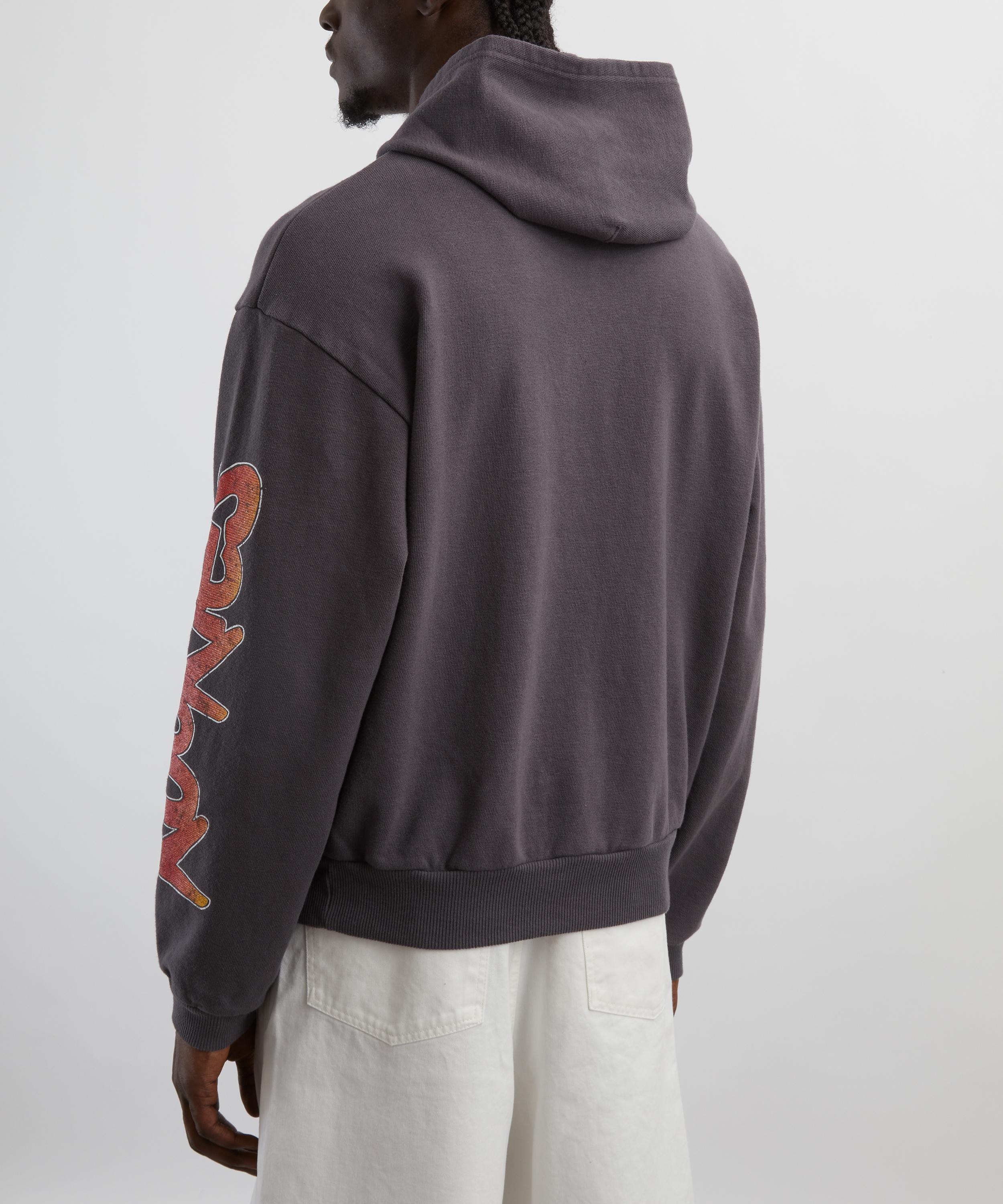 Fusing experimental design with cutting-edge production techniques, this cotton hoodie presents a washed finish for a vintage look, with KAPITAL’s ‘Buster Peckish Bowy’ print on the front, inspired by kaiju movies in Japanese cinema. Boasting relaxed fit with dropped shoulders and long sleeves, it’s finished with a ribbed hem and cuffs.