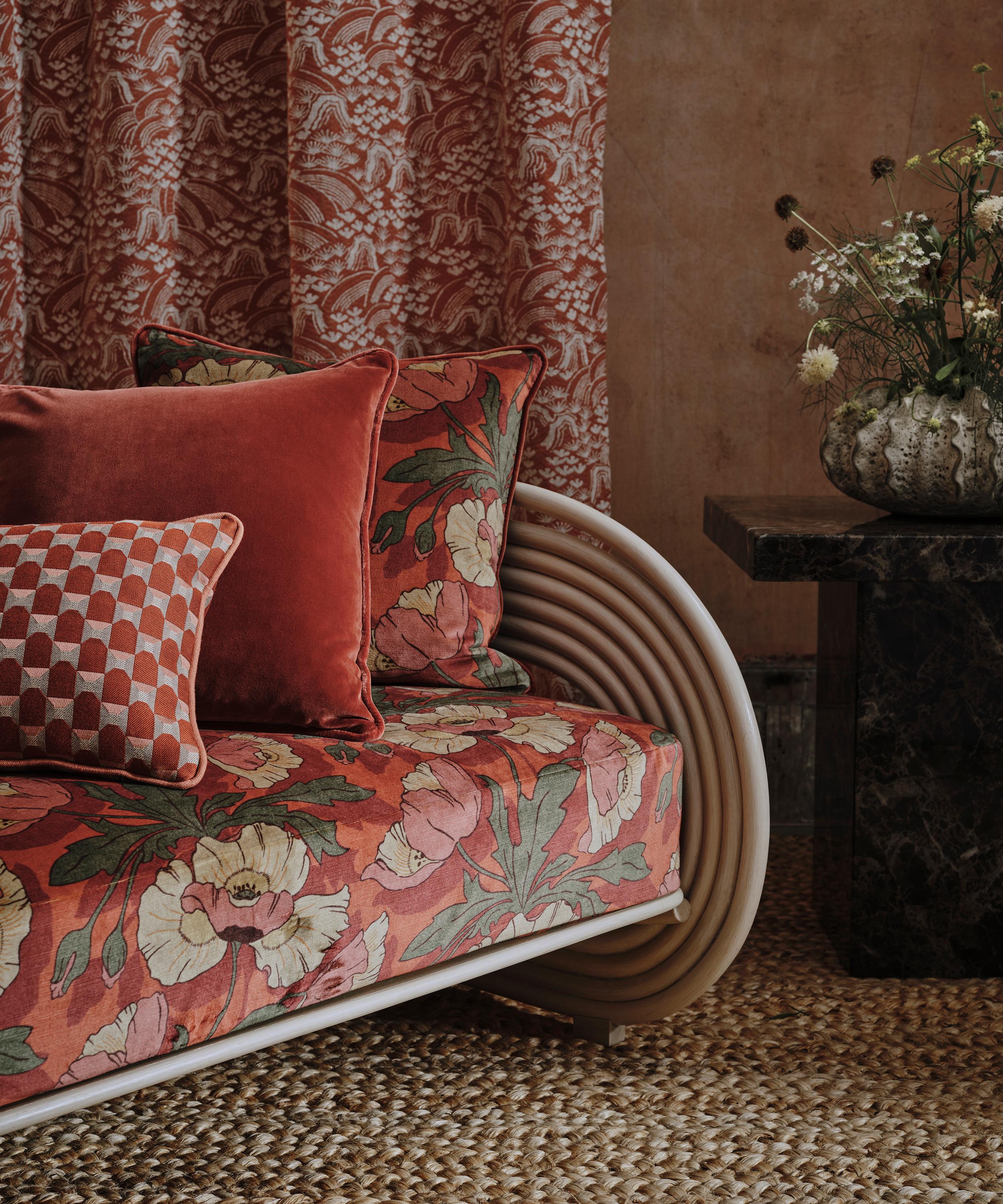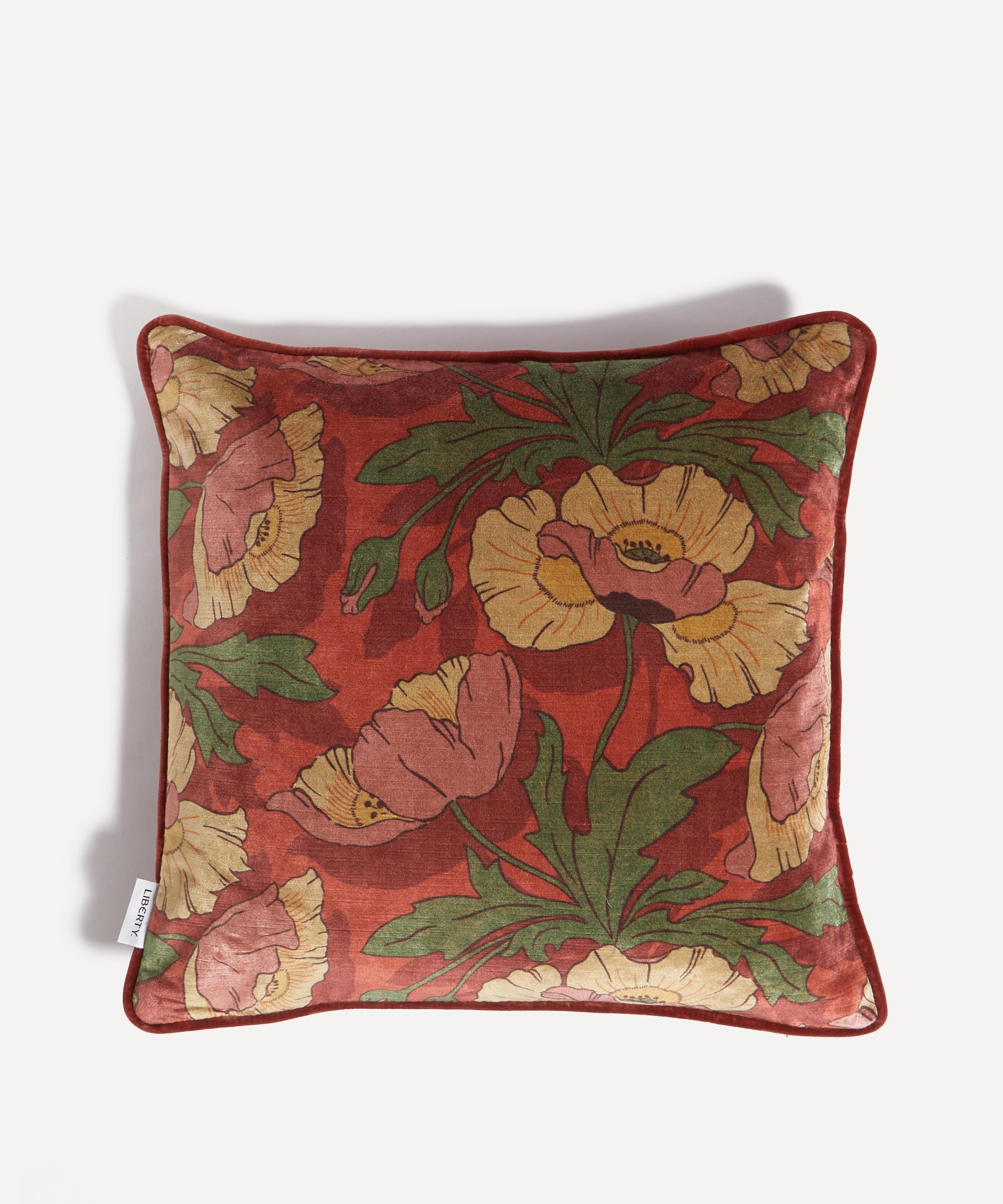 The Botanical Atlas collection celebrates Liberty’s historic lineage of craftsmanship and design through a cross-pollination of styles and visual narratives. Richly layered embroideries, opulent textured weaves, and contemporary printed velvets and linens are juxtaposed with a selection of elegant stripes and mesmerising geometrics - expertly crafted using traditional and cutting-edge techniques in Italy, Belgium, and India. Designed in the 1900s by one of Liberty’s most influential Arts and Crafts designers, Lindsay Butterfield, this original artwork is seen for the first time in interiors. With the addition of a dramatic shadow to this playful poppy print, Butterfield is a quintessentially Liberty design, throw the cushion it on a daybed or armchair, for a verdant accent to modern interiors.