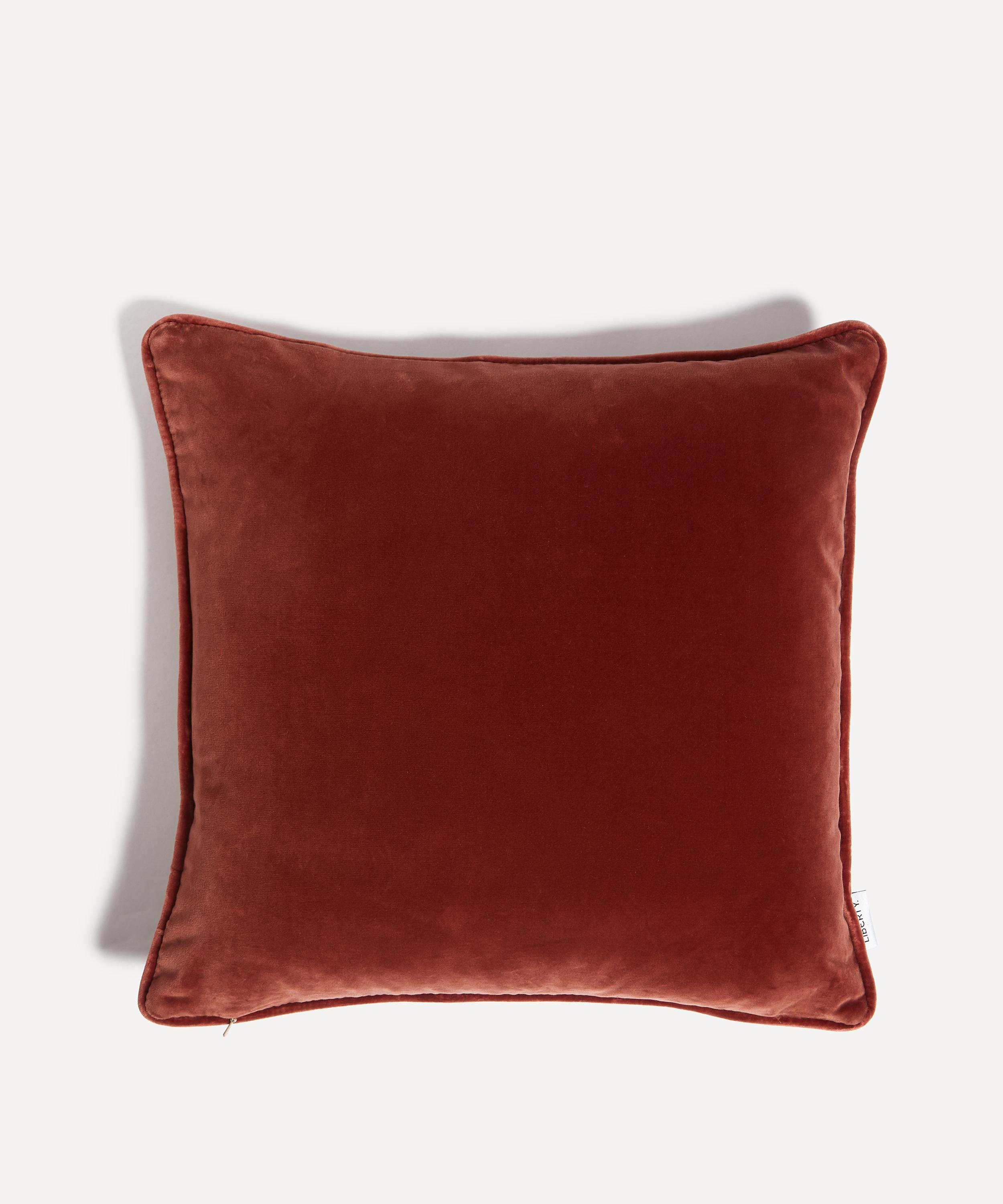 Liberty’s Butterfield rectangular cushion is crafted from luxurious cotton velvet with a plump duck feather filling.
