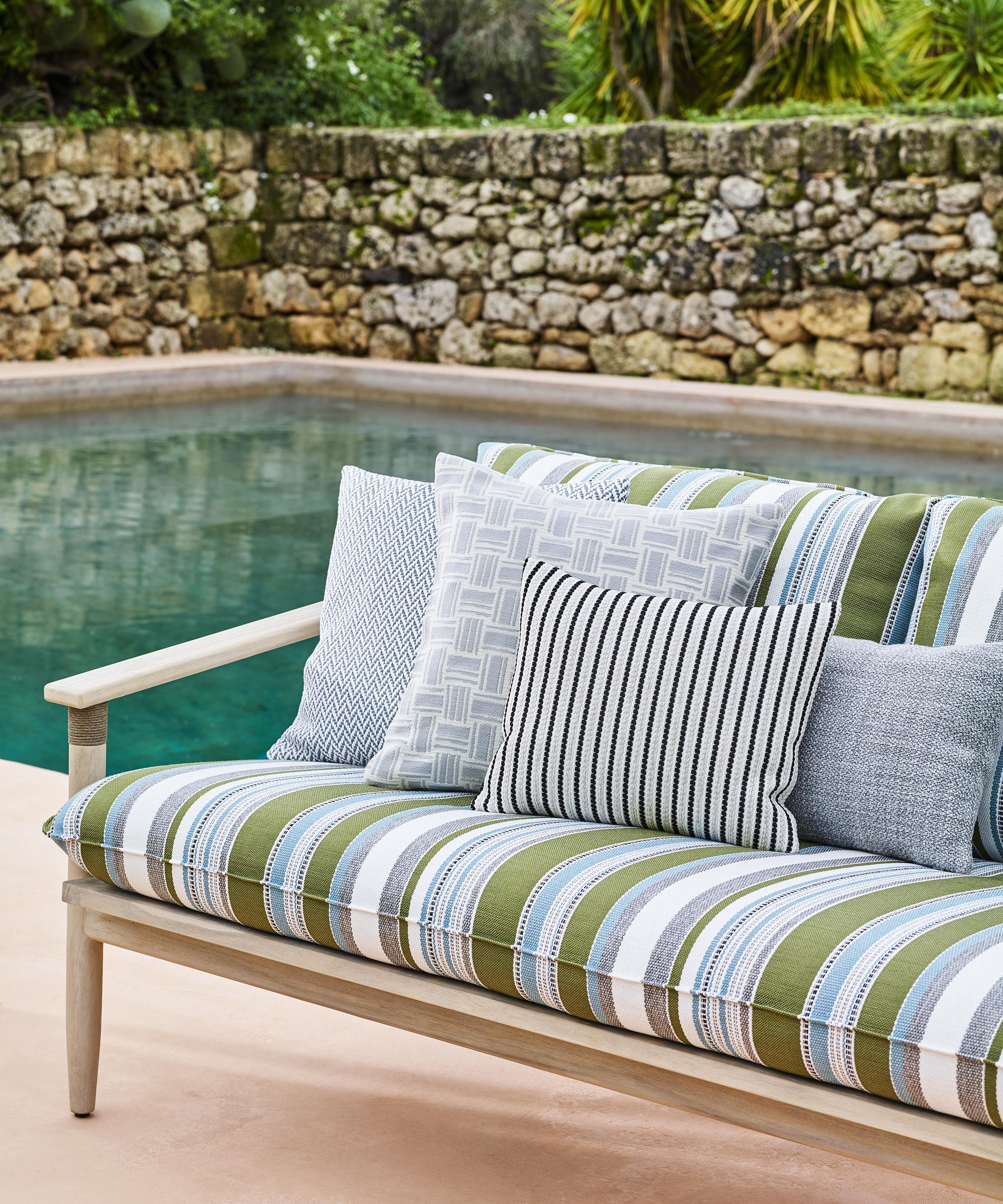 Taken from the Liberty archive, our bold scale Cabana Stripe is translated onto Dixster – a yarn-dyed fabric woven in Italy using high performance fibres. Solid colour effects are juxtaposed with textural marl stripes in four bold colourways – offering a strong contemporary contrast to the printed designs. Bringing harmony and balance to the collection, this versatile outdoor furnishing fabric coordinates effortlessly with all prints and weaves.