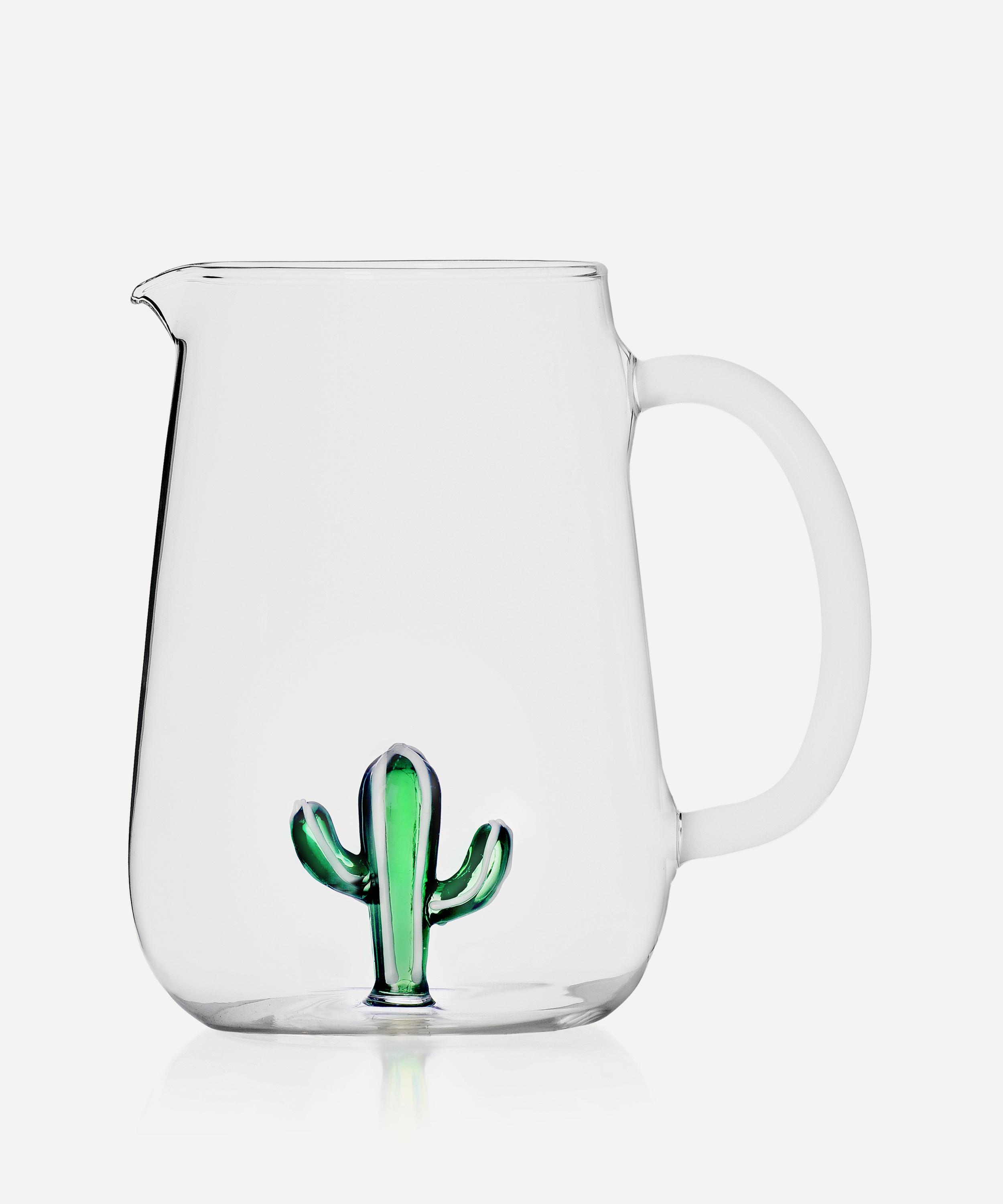 The Cactus pitcher from Ichendorf is a contemporary yet classic addition to any glassware collection. Hand-made and flame-worked in Italy, this charming jub features a sleek, simple silhouette and is decorated with a stylised cactus motif. Perfect for gifting, it can be used to hold beverages of your choice.