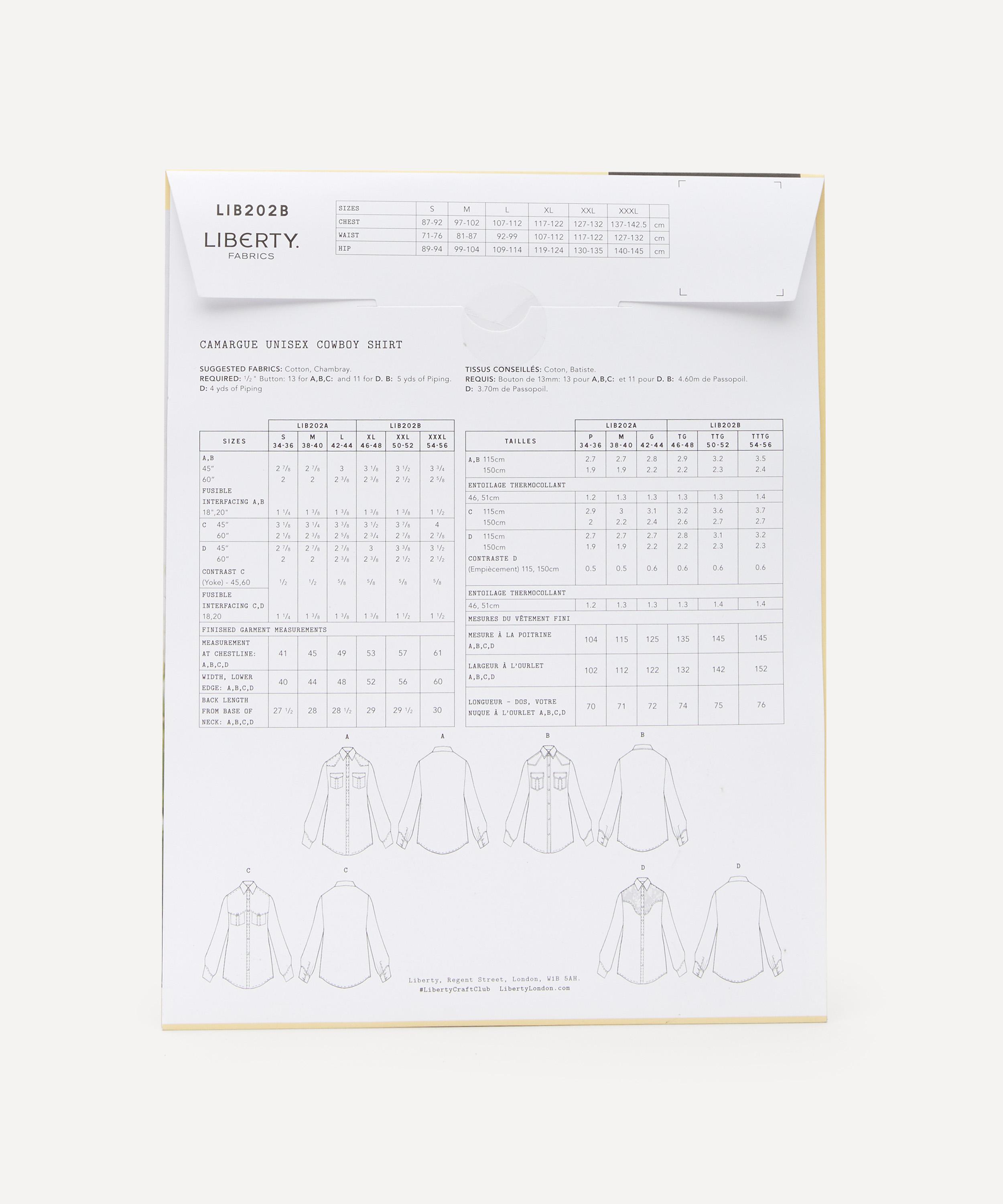 Join the global #LibertyCraftClub with the unisex Camargue Cowboy Shirt sewing pattern.