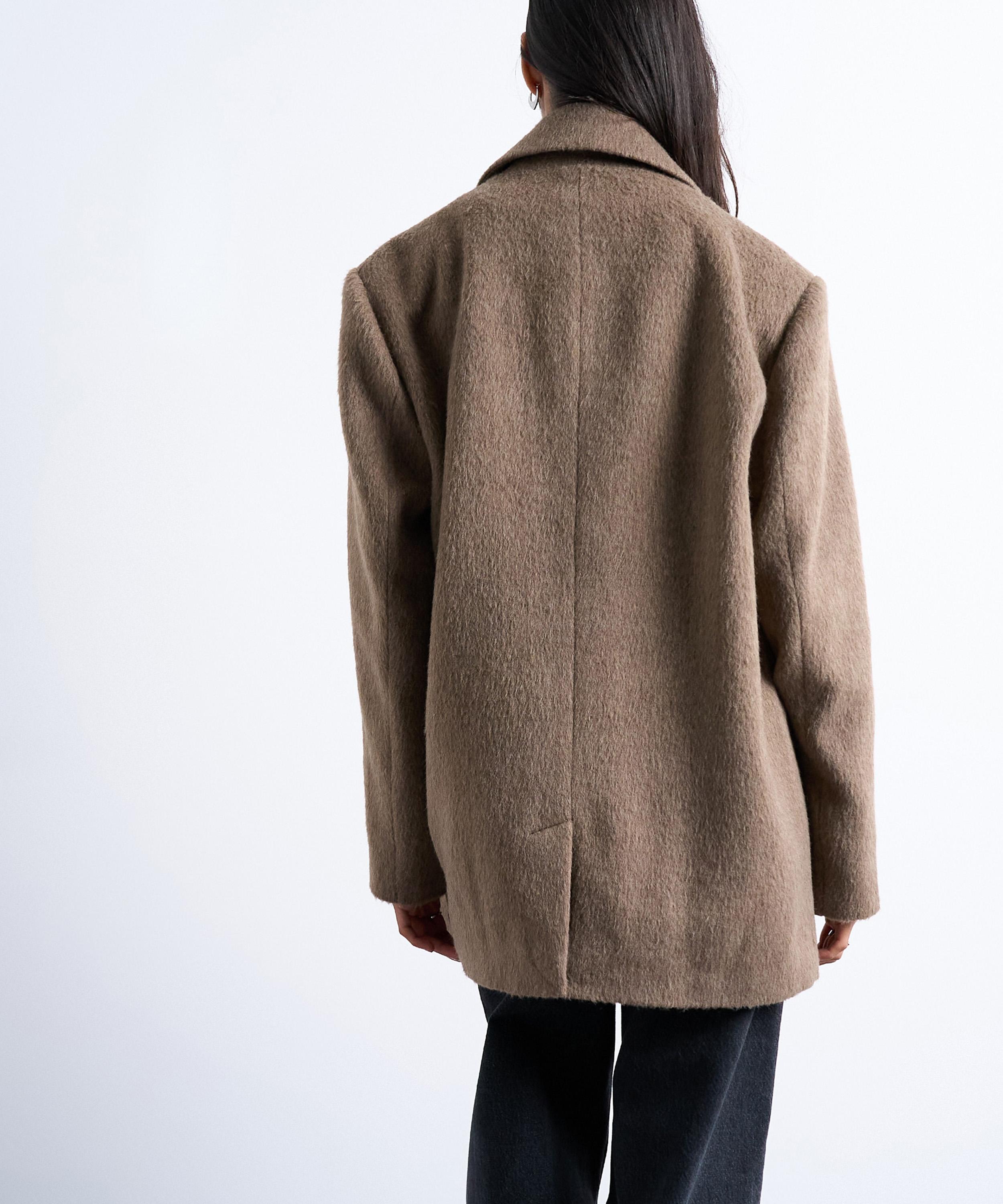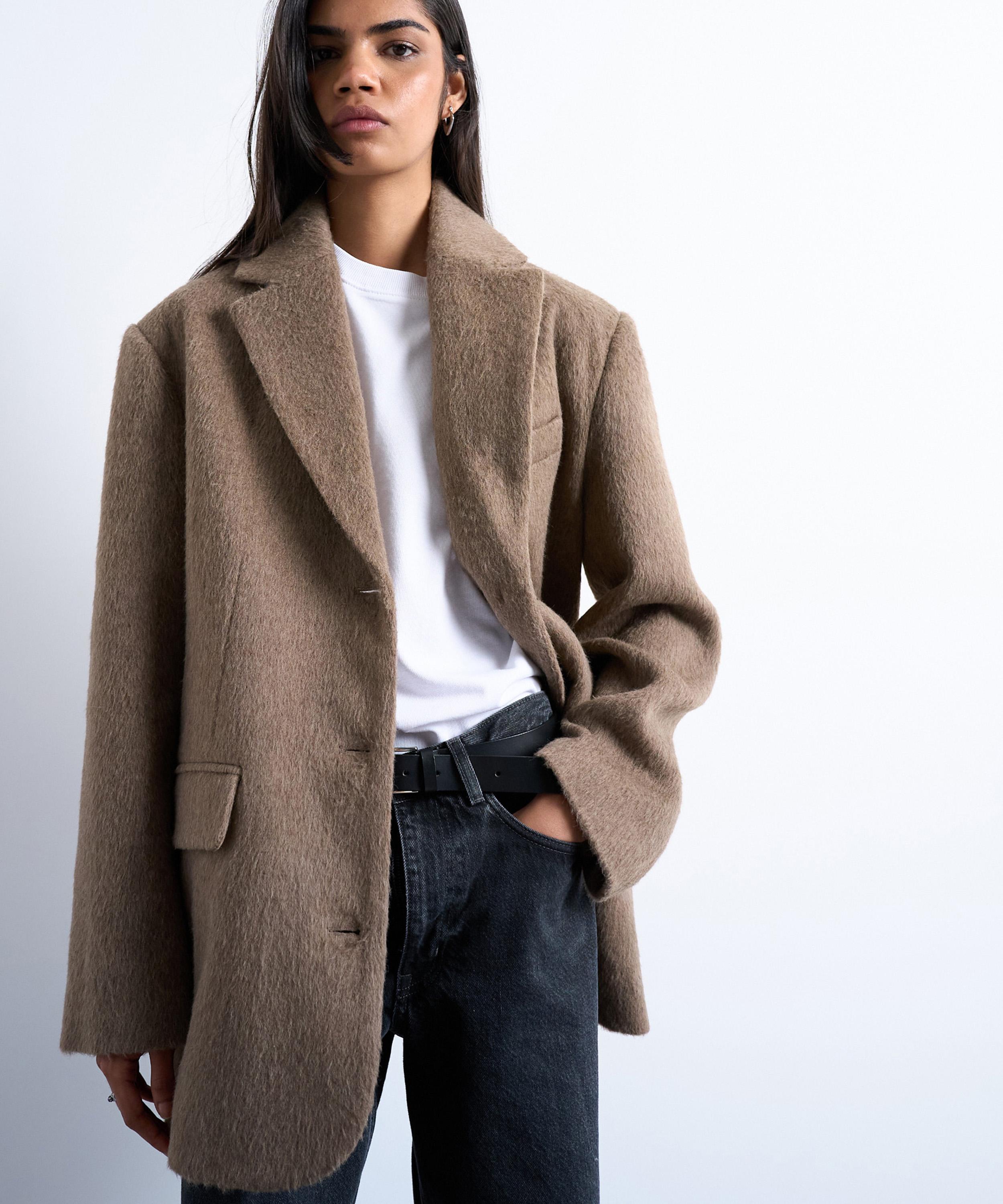 Crafted from brushed fabric in a classic camel hue, this blazer coat features a longline silhouette with notch lapels, flap pockets, and a three-button fastening for a timeless, tailored finish.