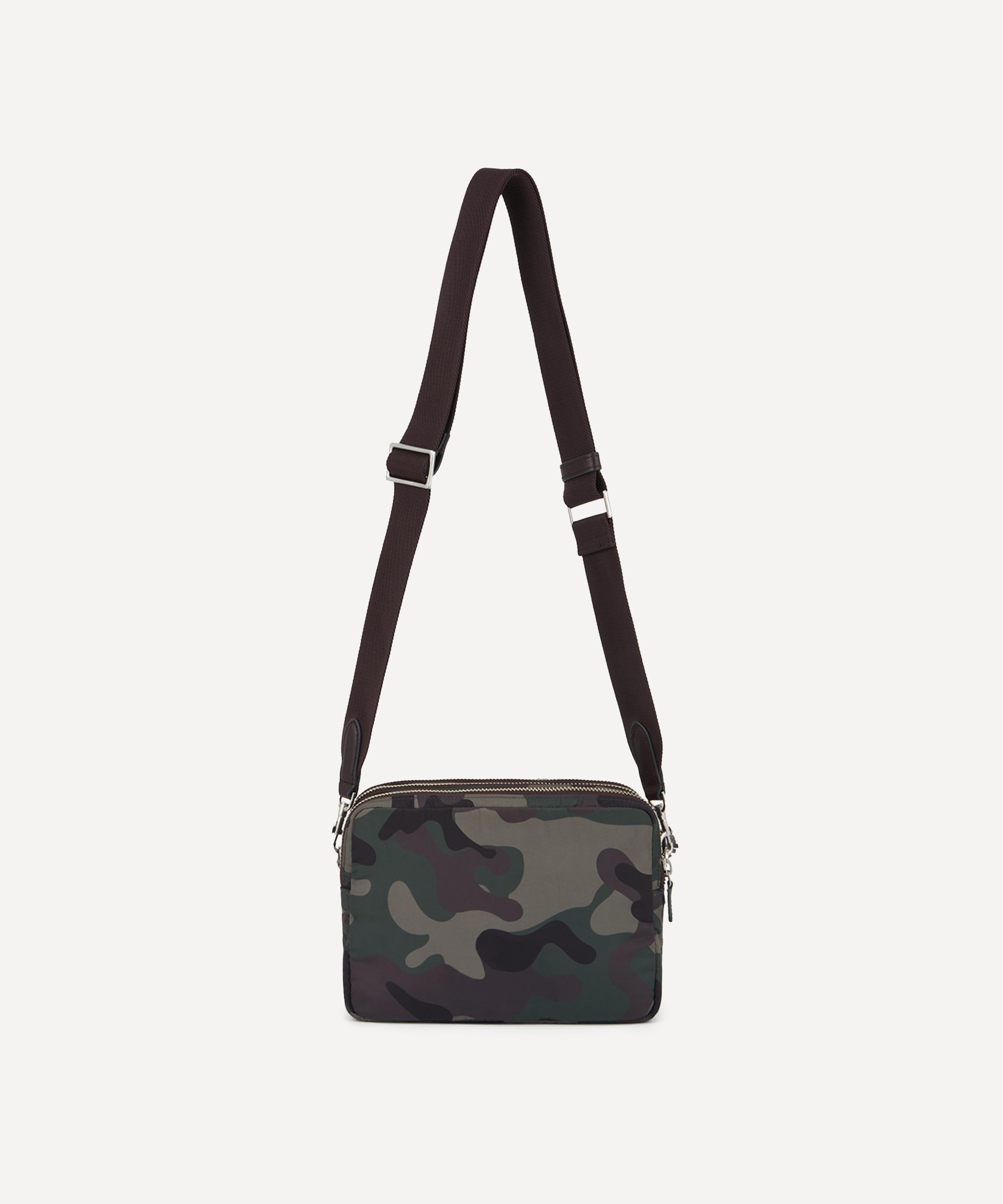 Inspired by the designer’s famous obsession with labelling, the Camouflage Essentials crossbody bag from Anya Hindmarch is a trusty travel companion for those who love to be organised. Crafted from nylon fabric, it features two external zip pockets with embossed labelling, one of which opens to reveal a handy internal slip pocket for cards. Complete with an adjustable and detachable shoulder strap, wear it crossbody or stow it in your bag as a pouch or purse.