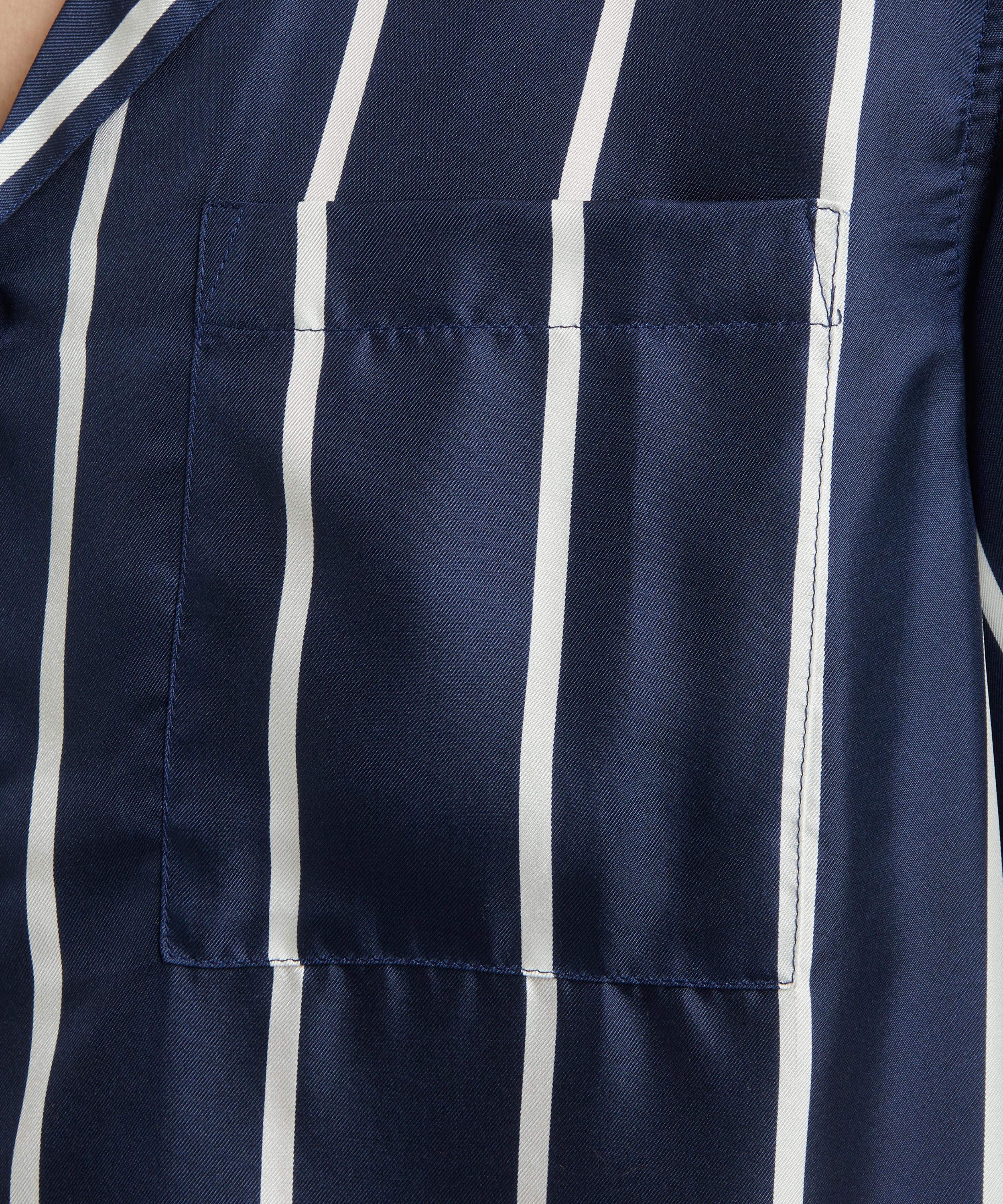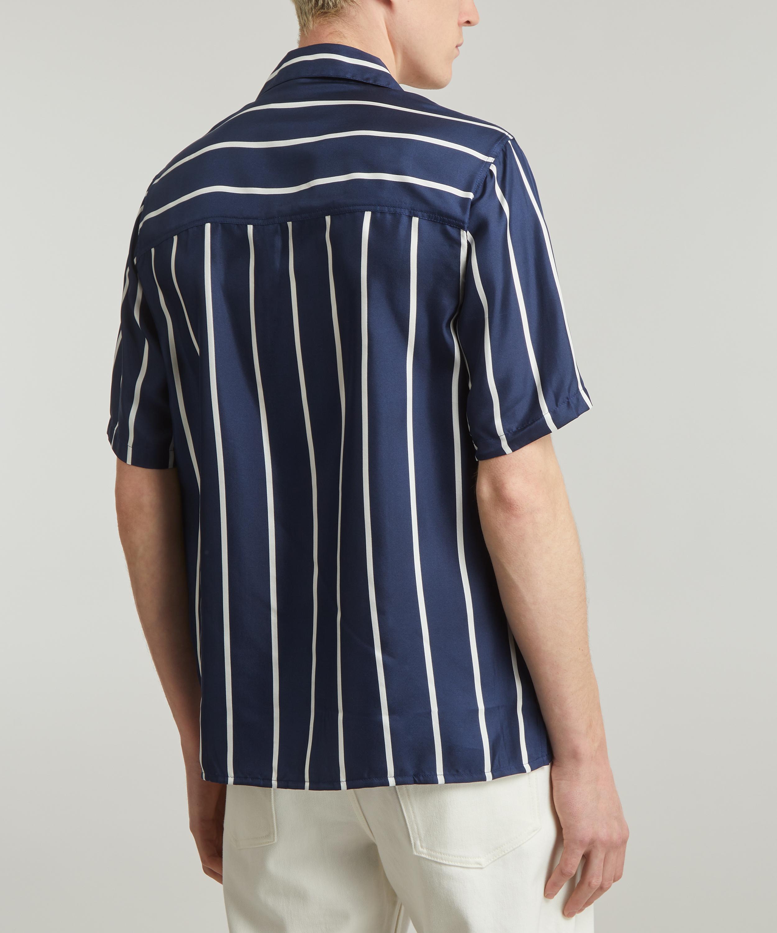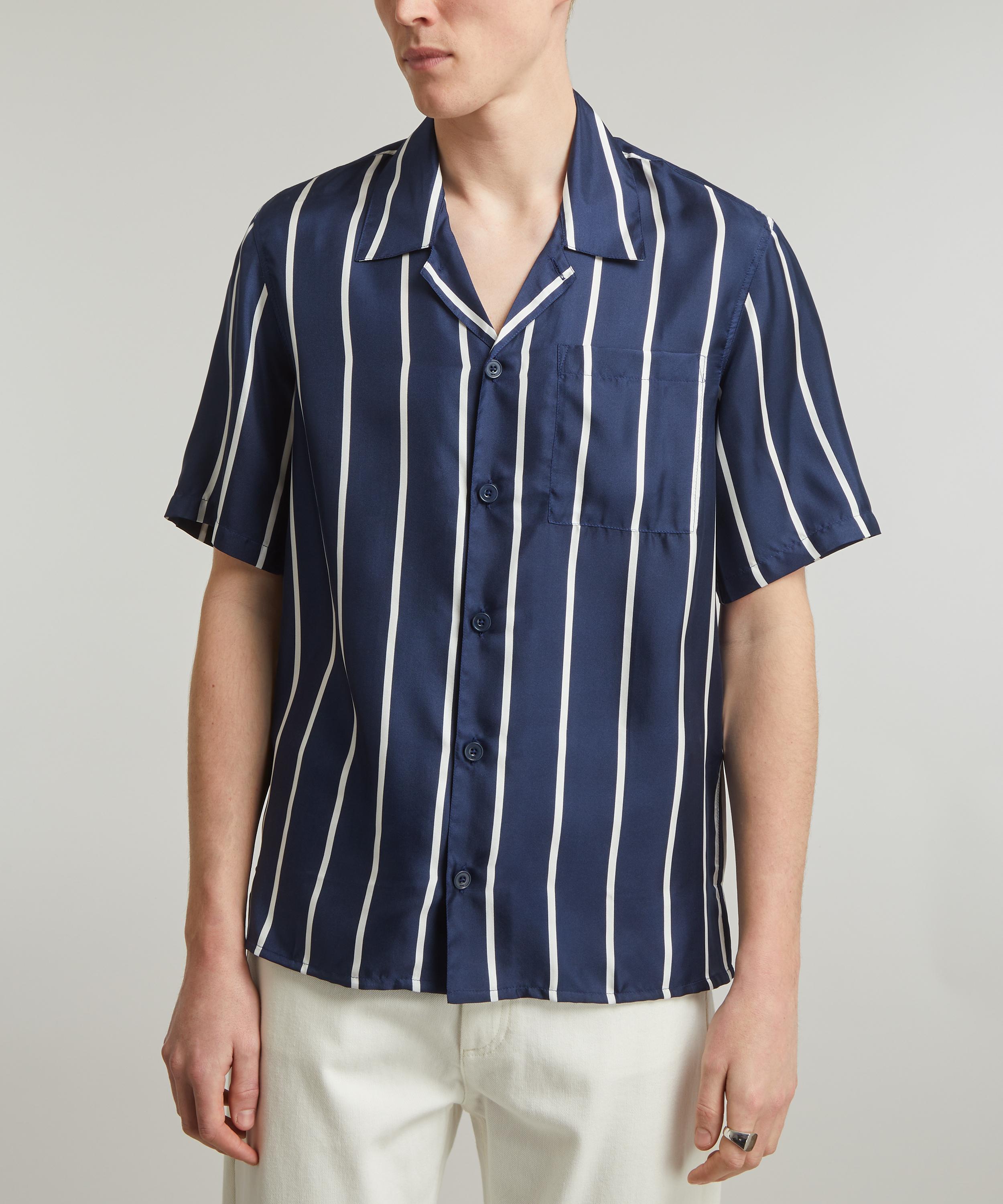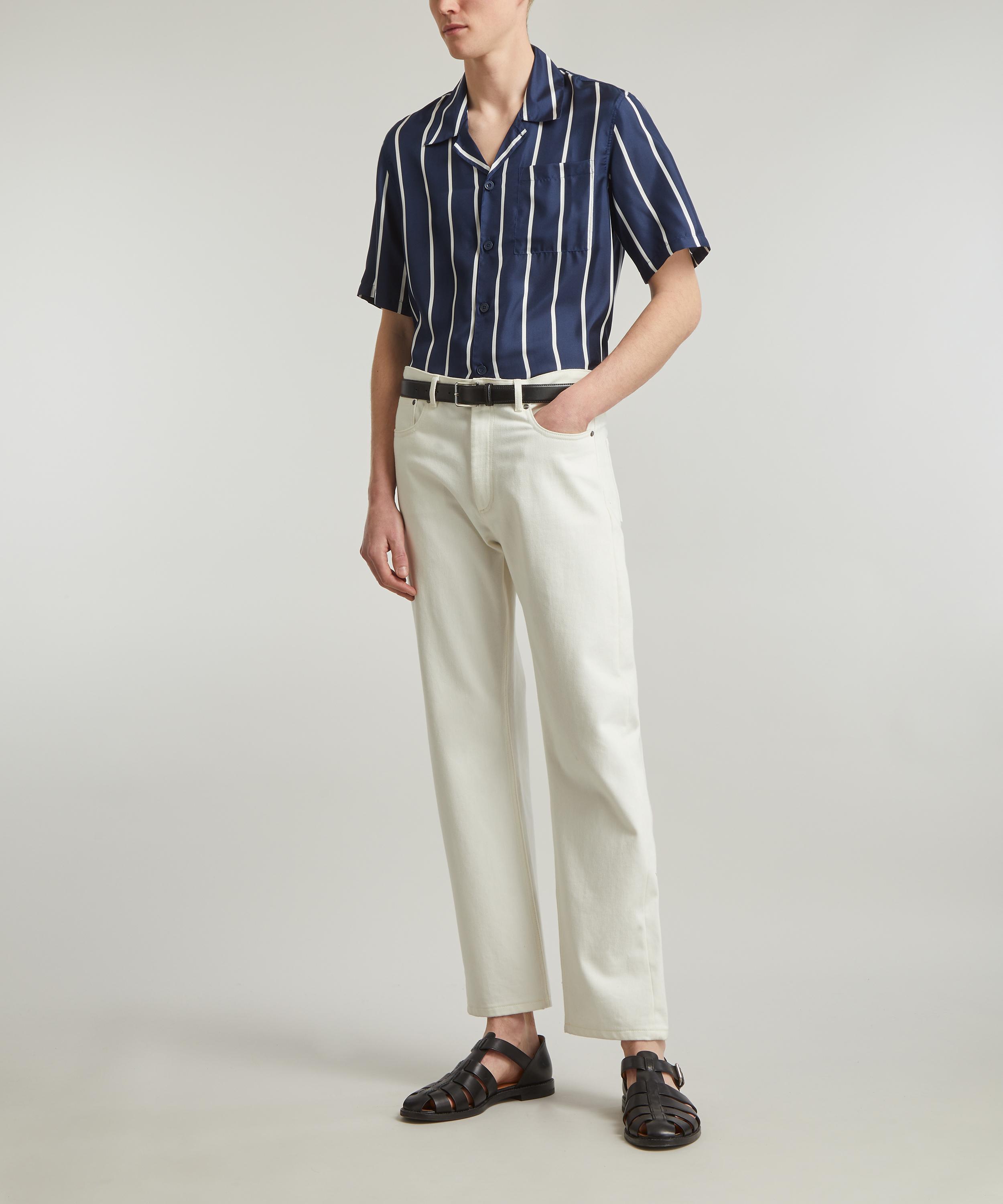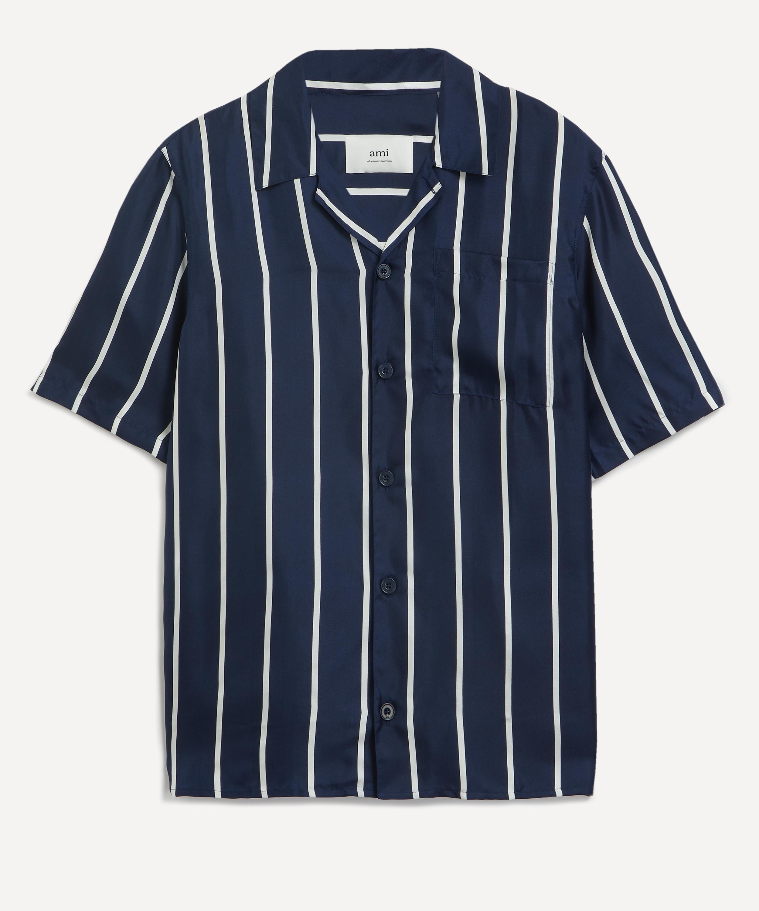 Epitomising the laid-back cool of the brand’s native Paris, the Camp Collar shirt from AMI is crafted from a lustrous silk for a touch of understated sophistication. This rendition of the wardrobe staple boasts a classic stripe pattern to the silk, cut to a straight fit and complete with a classic Cuban collar, and short-sleeves for an effortlessly casual finish.