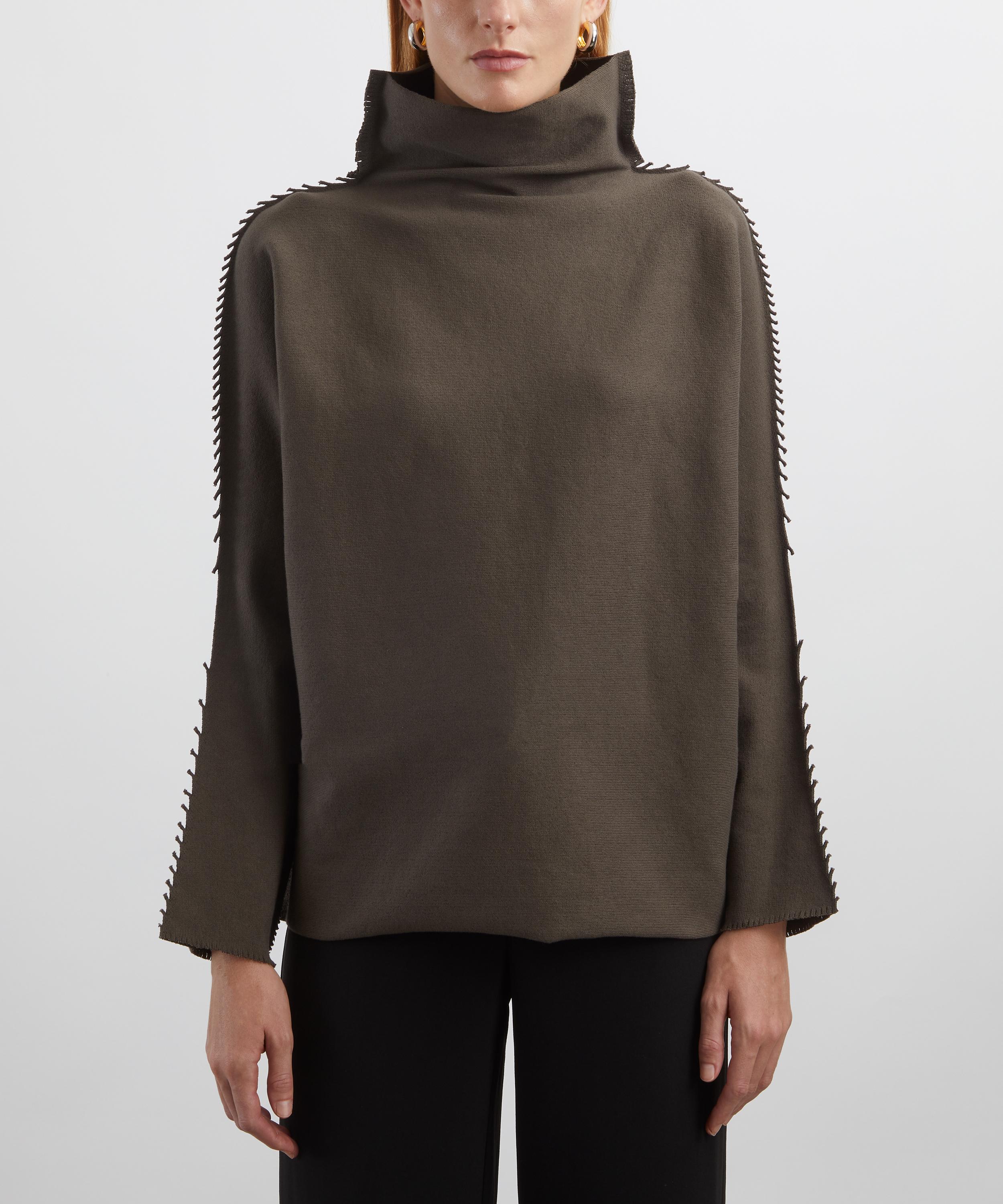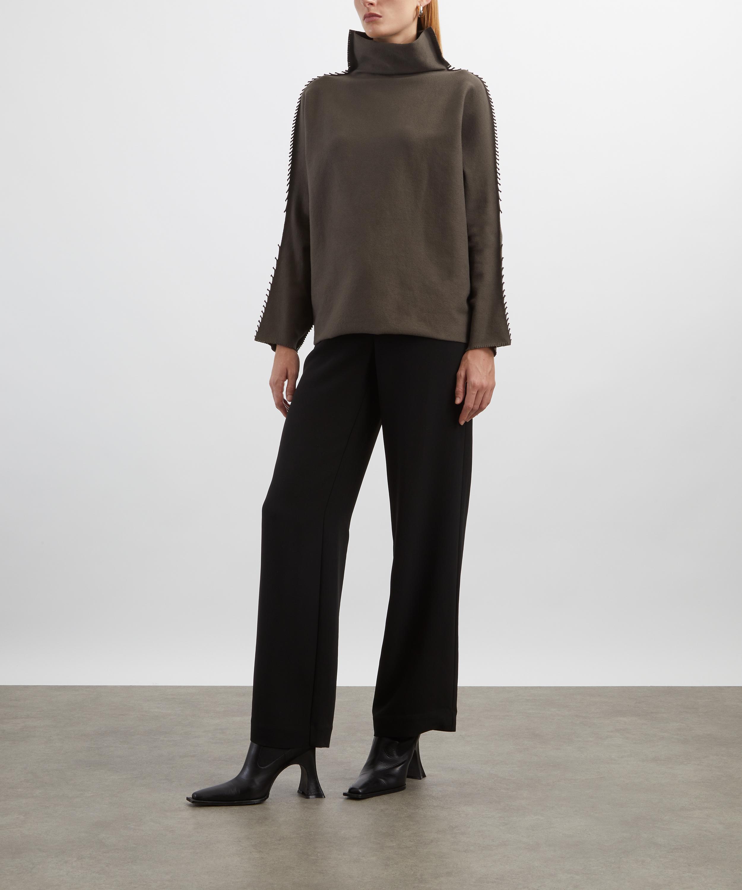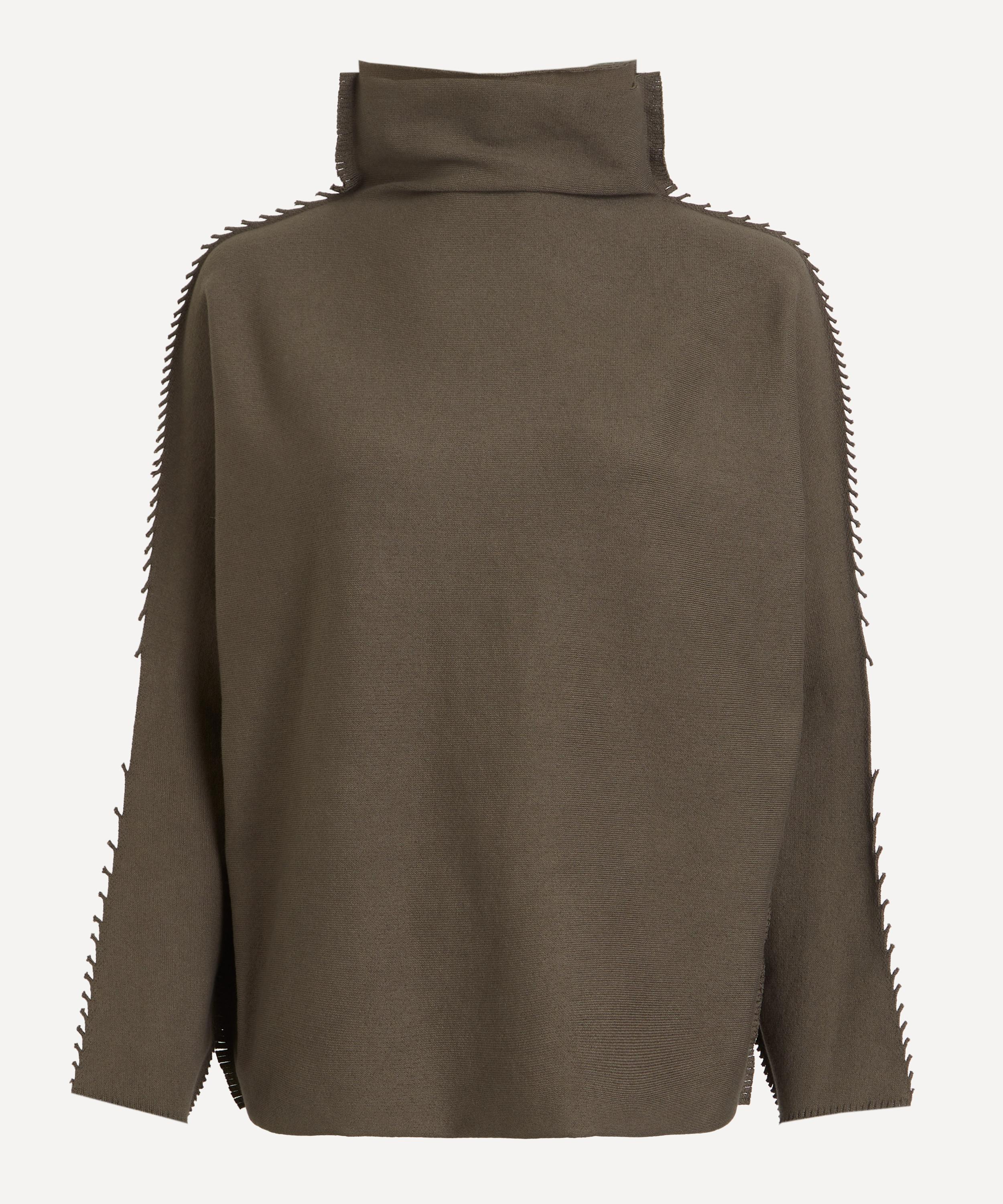 This long-sleeve top is cut from a thick yet stretchy 9-gauge cotton-blend A-POC jersey. A funnel neck and fine blanket stitch detailing along the seams lend a modern, textural edge.