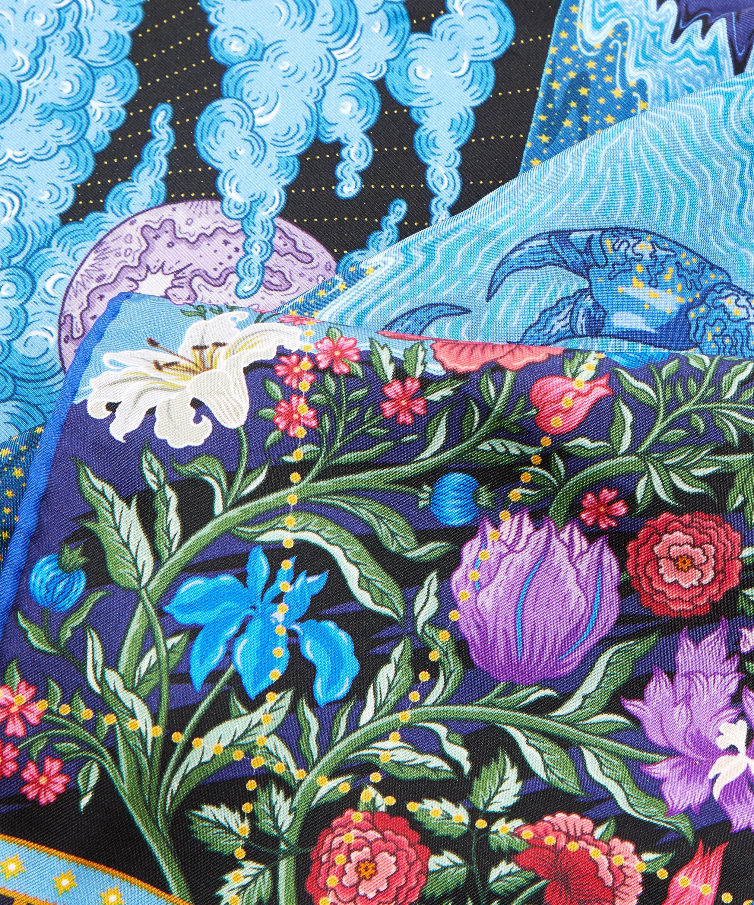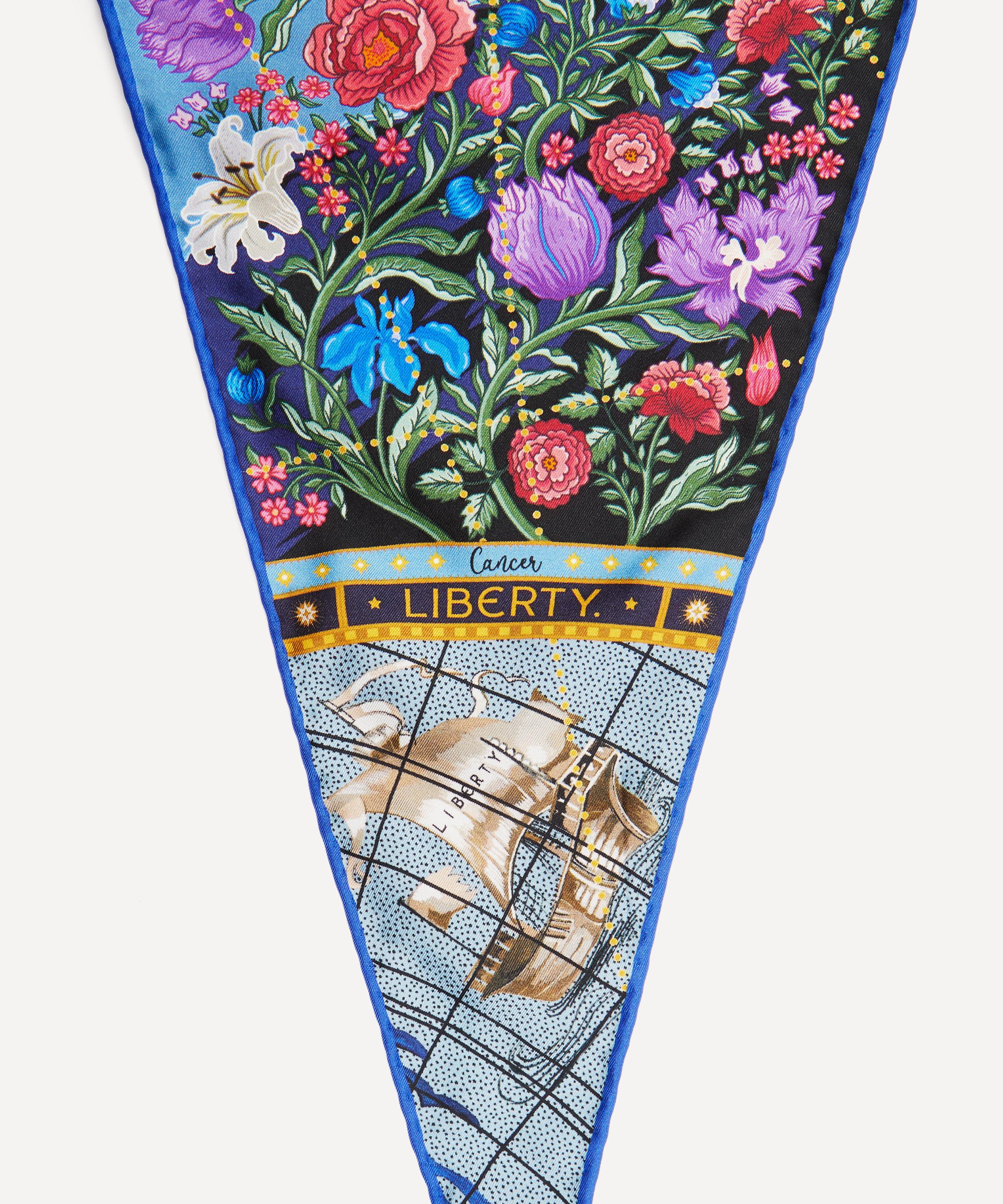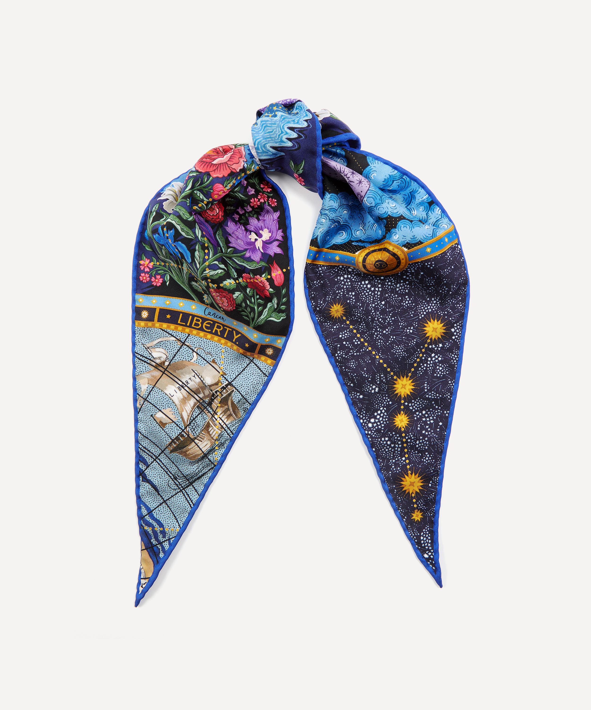 Liberty’s exclusive Celestial series spotlights each of the astrological signs within a luminously moonlit skyscape. Exquisitely made and printed in Italy on 17mm silk twill, each design appears on a striking lozenge silhouette. When combined, the full set of scarves make up a star-shaped map of the sky, united by the islands of an imagined globe beneath. Wear your sign with pride as a head band, scrunchie or neckerchief, for a flash of cosmic print magic – heaven-sent as a birthday gift for someone special, or a treat for yourself.