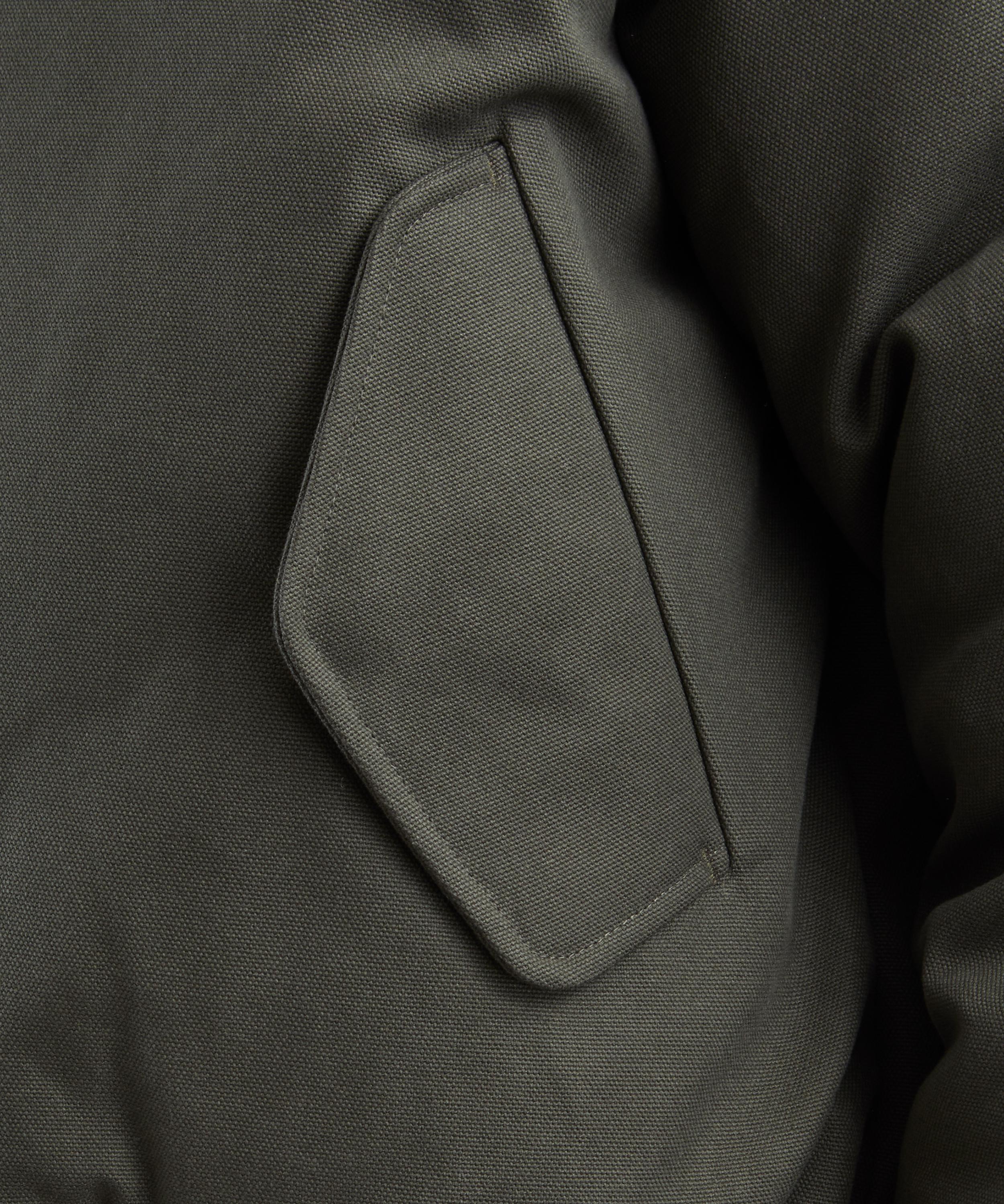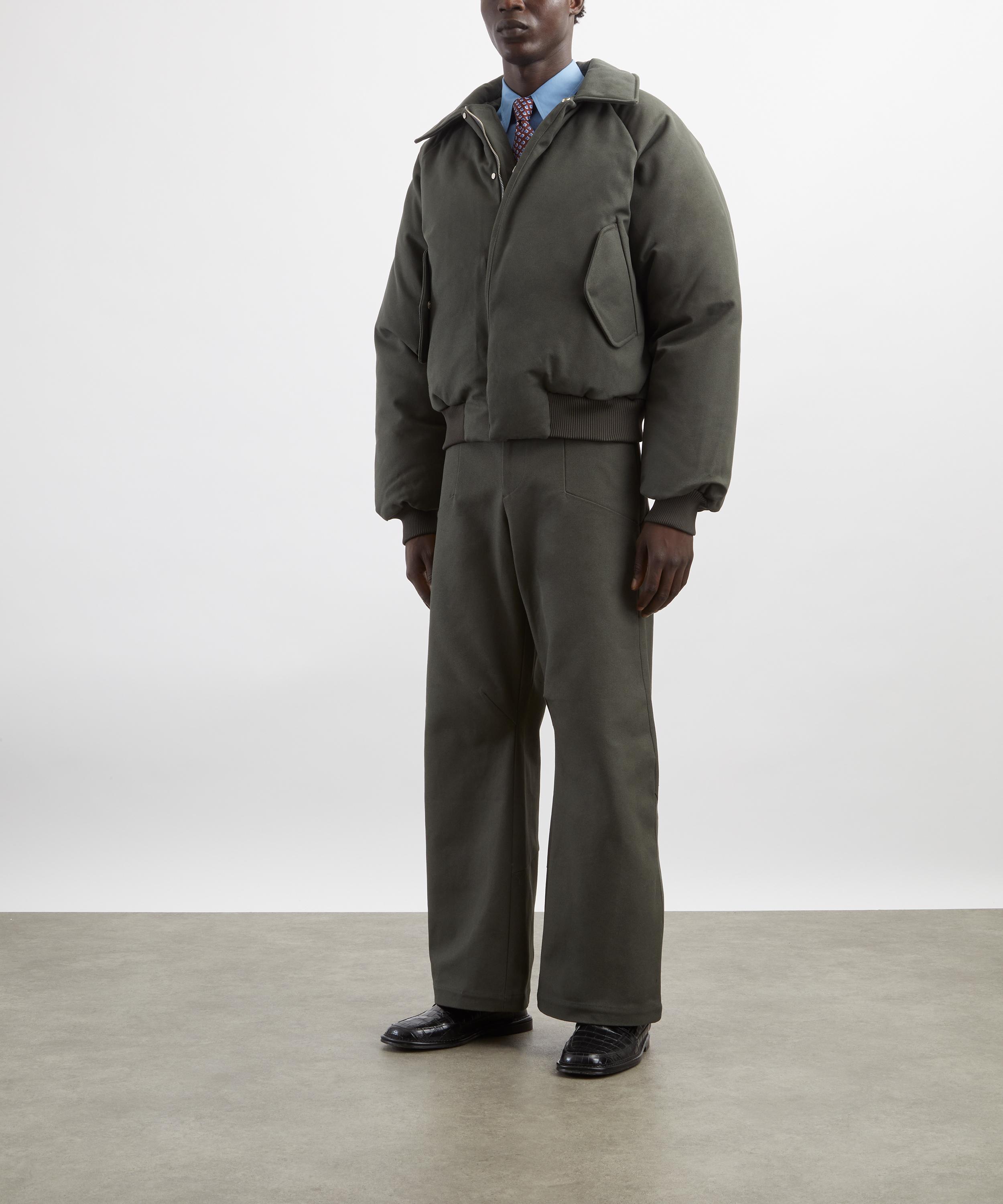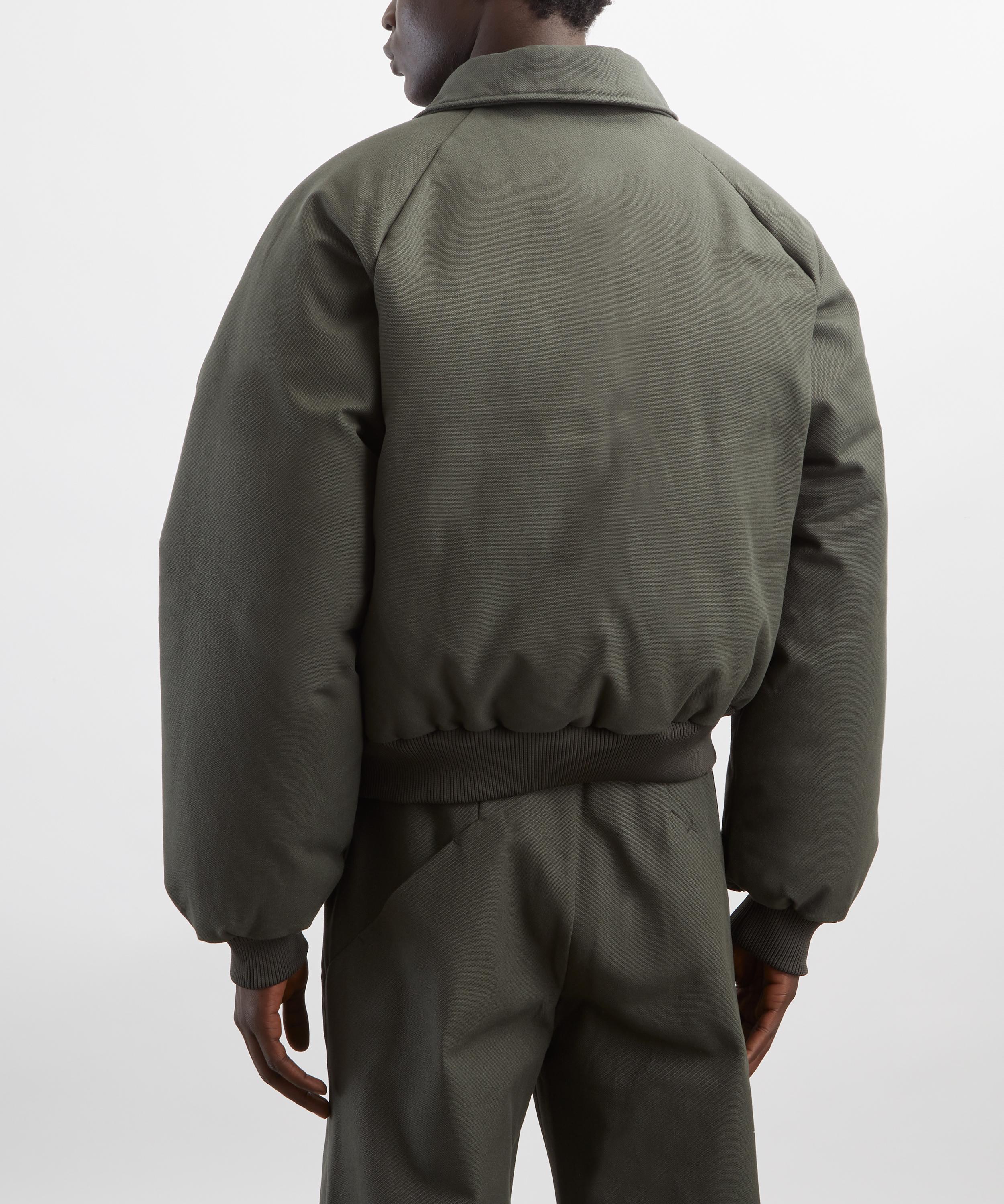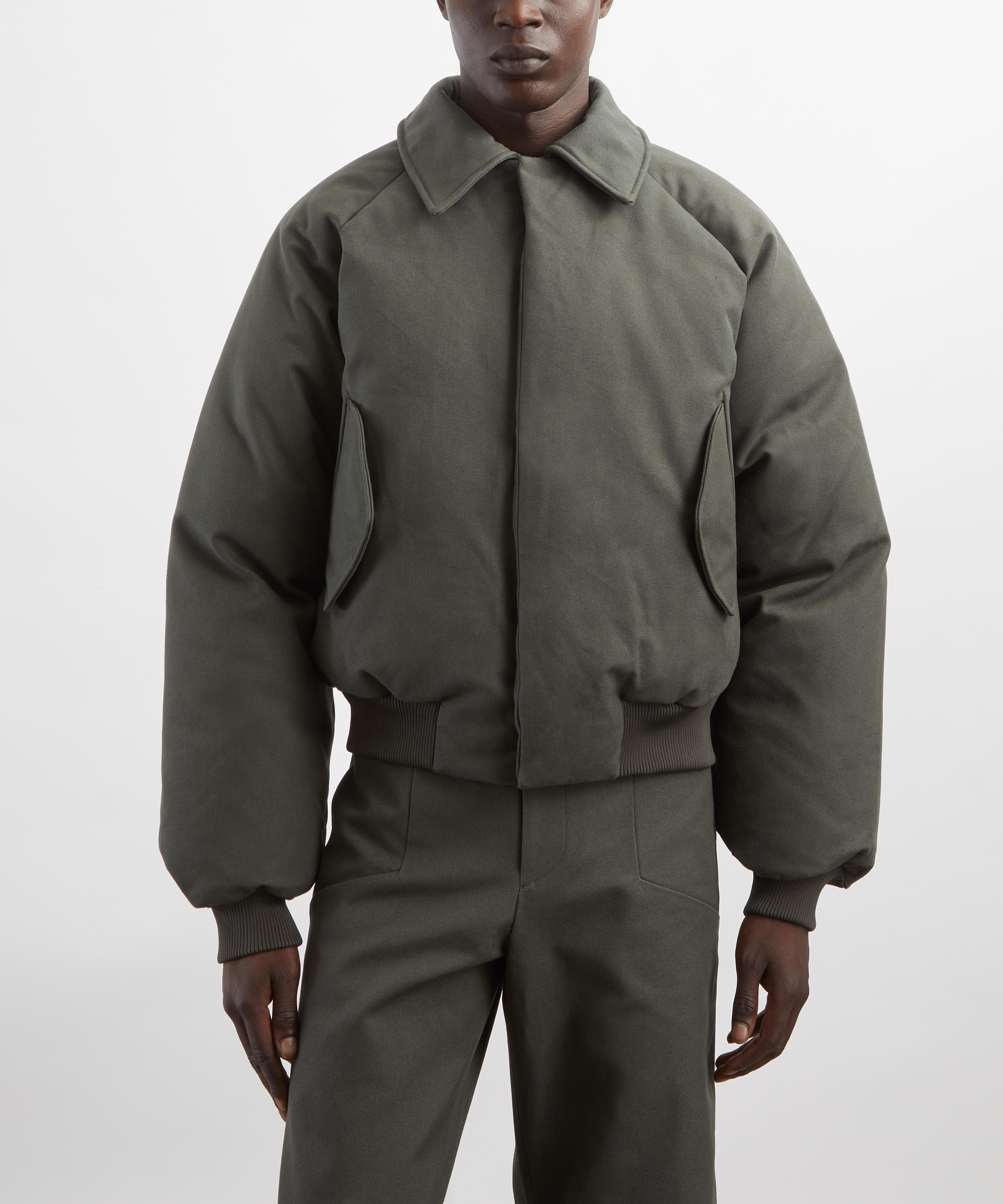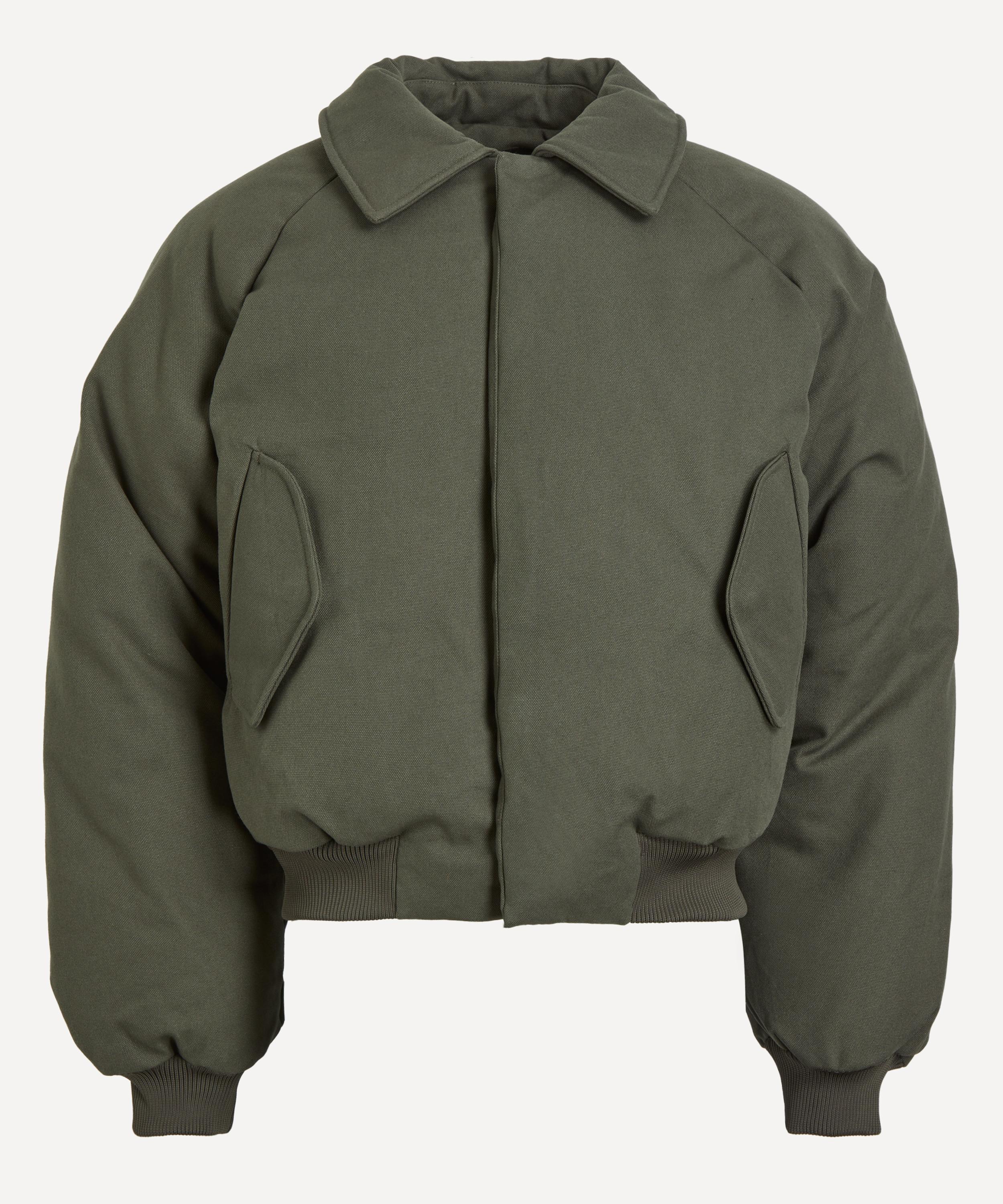 Crafted from water-resistant nylon and filled with insulating duck down, it offers practicality for the season's unpredictable weather. A clean spread collar, concealed two-way zip and detachable hood complete the jacket, while the oversized fit and slightly cropped hem bring a contemporary edge to cold-weather dressing.