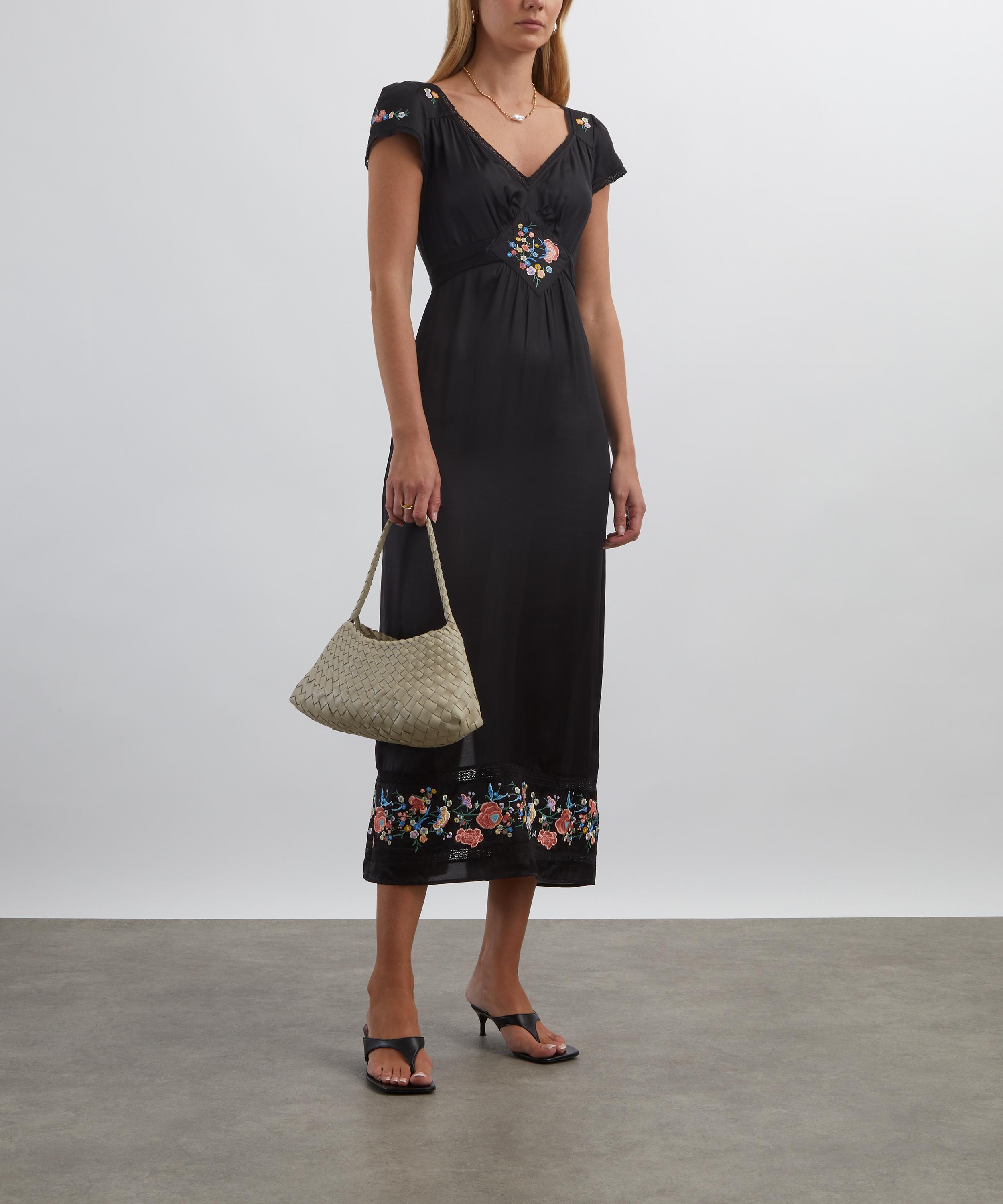 RIXO’s Carey Orchard Embroidery Black Midi Dress infuses your new season edit with a little retro elegance.