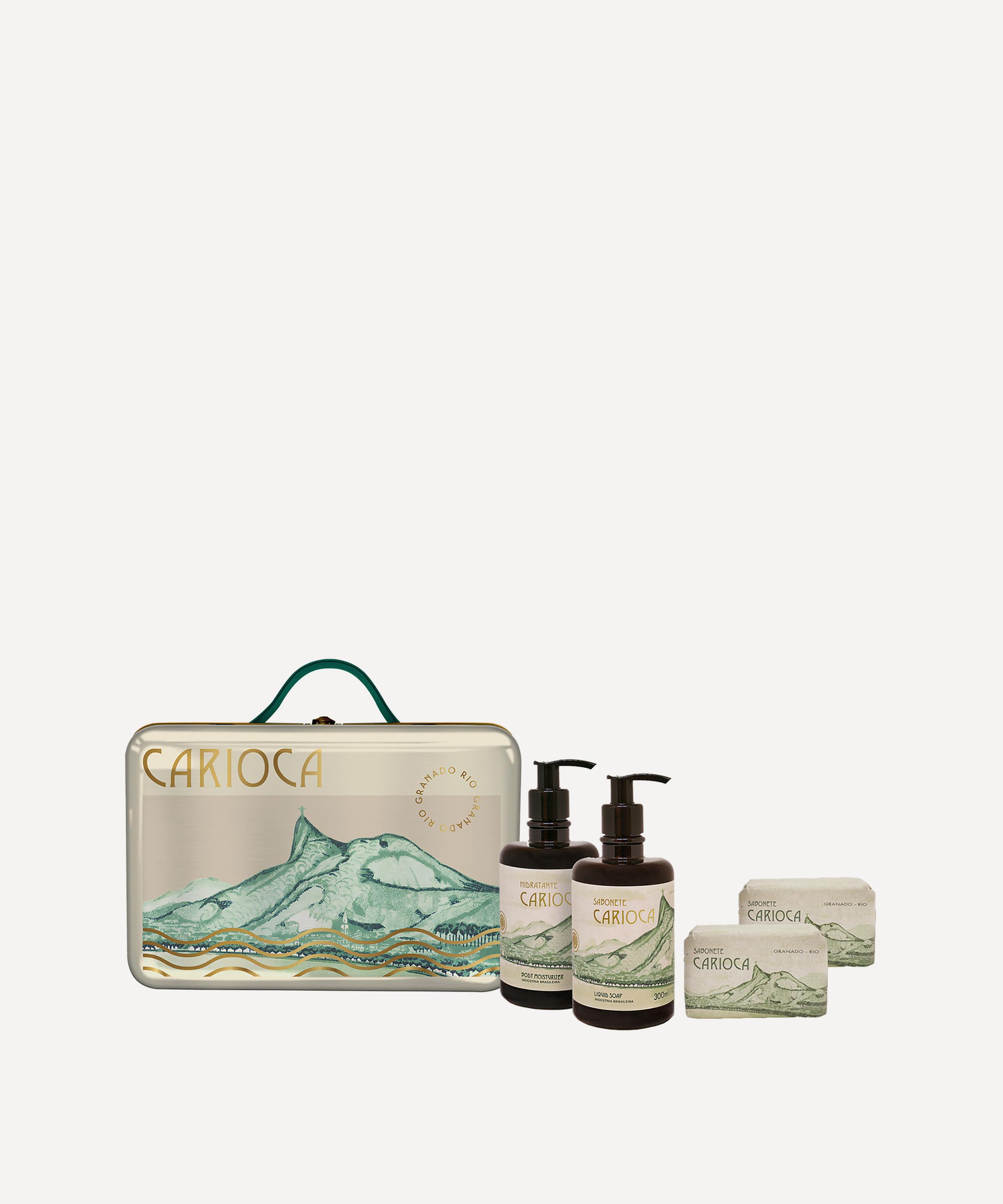 - Carioca Case Set includes: Carioca Bar Soap 120g x 2, Carioca Body Moisturiser 300ml, Carioca Liquid Soap 300ml and an elegant suitcase
