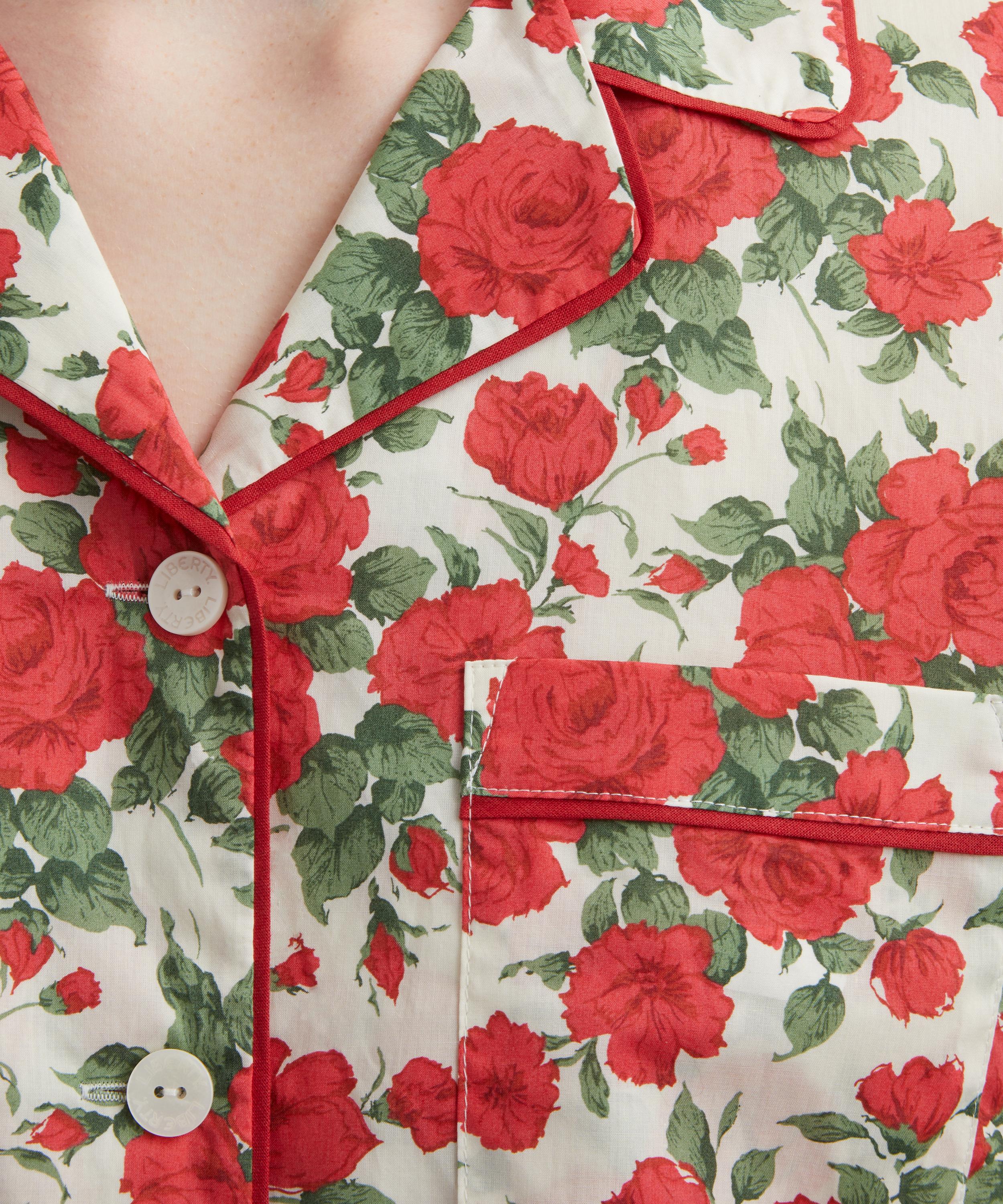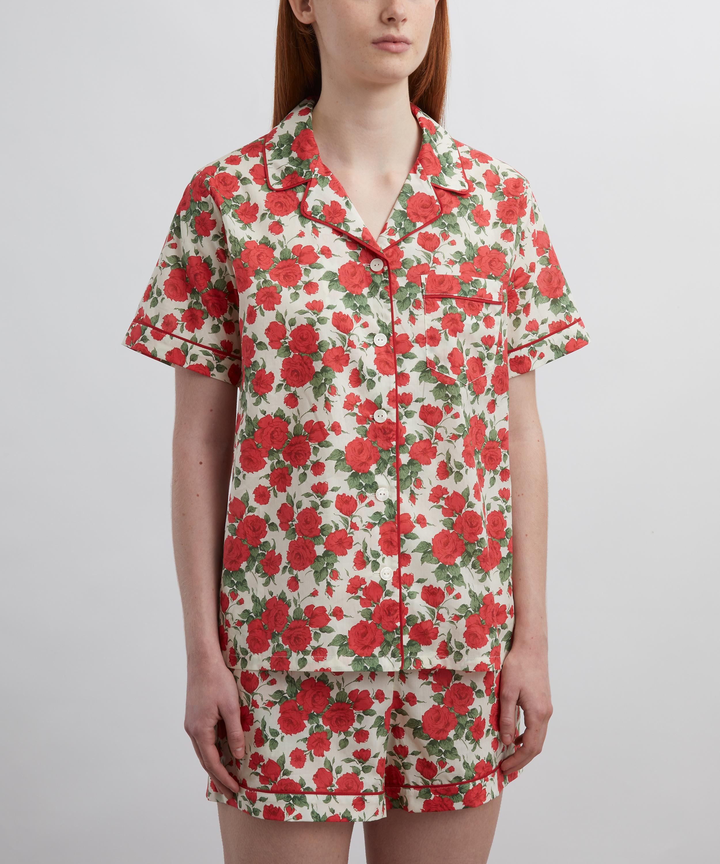Printed in our very own cutting-edge Liberty fabric mill in northern Italy, this particular pyjama set showcases the Carline Rose print - an archival classic, Carline Rose was originally painted in the 1990s to emulate the round, bold forms of vintage 1950s florals.