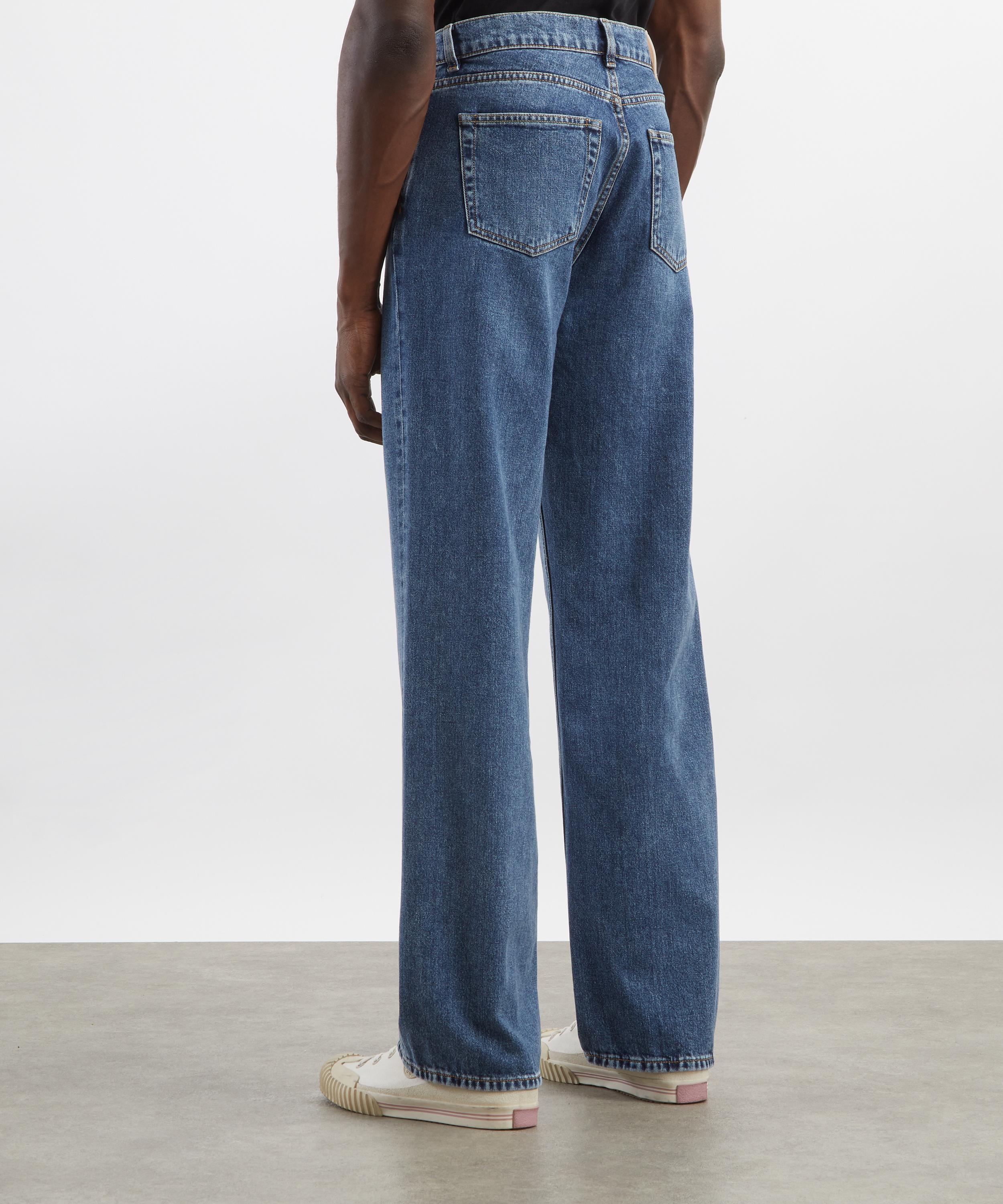 Constructed from Japanese Broken Twill denim in a rich indigo wash, the Carlson Cut jeans feature a high waist, straight hip, and a subtle bootcut flare for a vintage, ’70s-inspired silhouette. Finished with a zip fly, steel rivets, five-pocket construction, and Our Legacy’s signature embossed Jacron patch, light whiskering enhances their retro appeal.