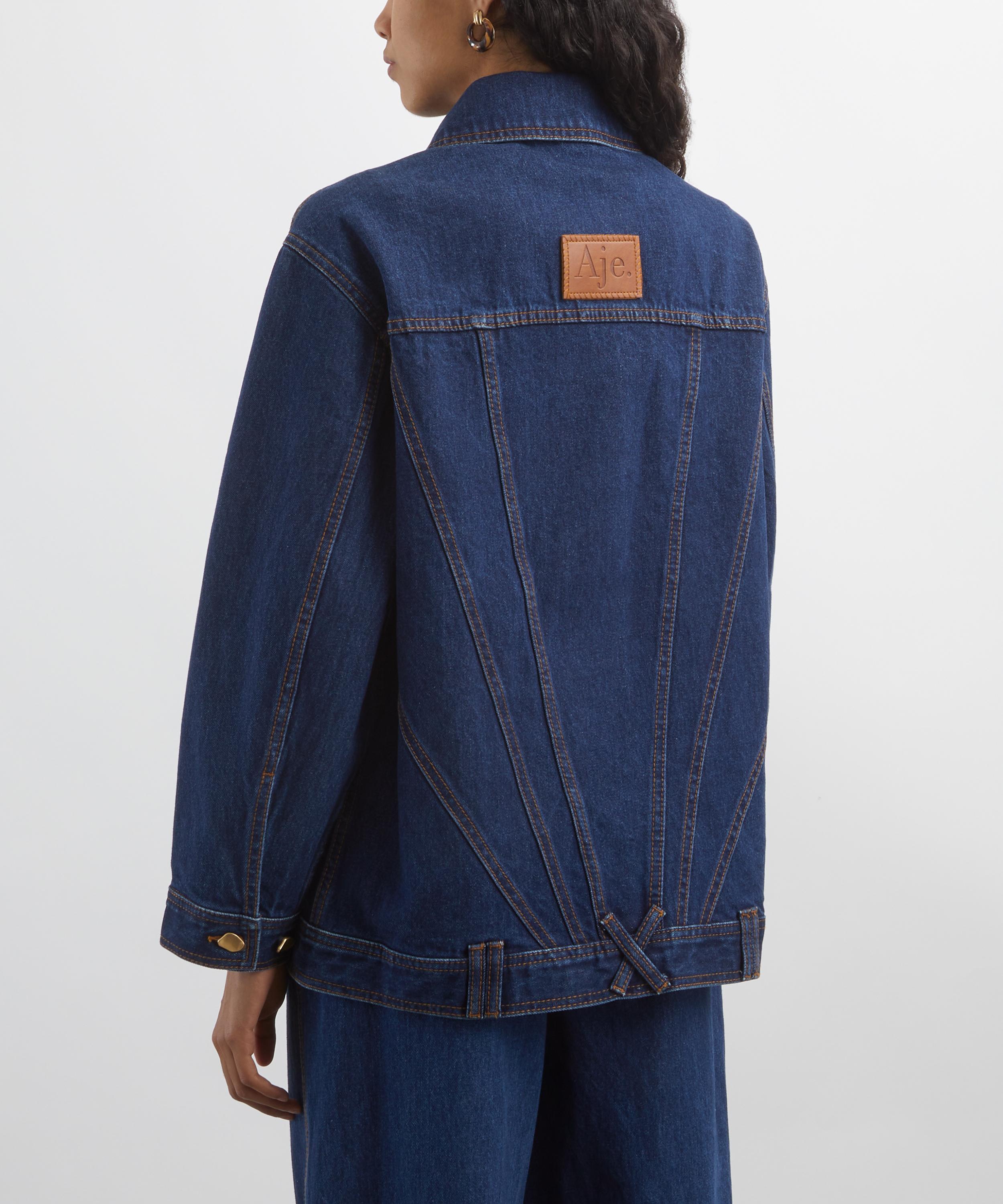 Fusing tough silhouettes with untamed volume, the Carmen Denim Jacket from Aje epitomises the Australian brand’s dedication to raw beauty.