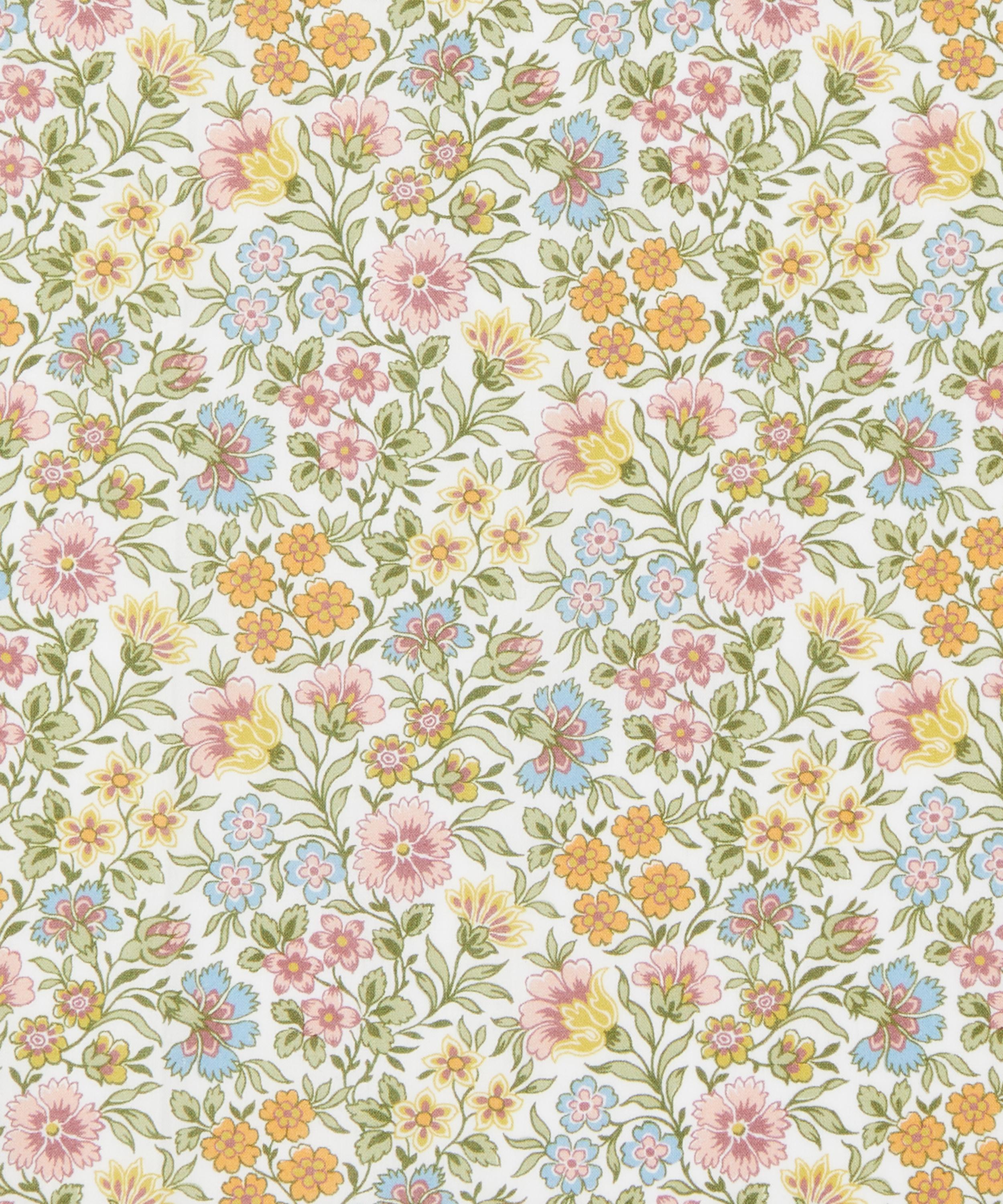 Derived from a hand-painted artwork in the Liberty archive, Carnation Trail echoes the delicate charm of Indian miniature botanical illustrations. Stylised sprigs of daisies, carnations, roses, and primroses flourish in every direction, forming an intricate, flowing pattern. Alive with subtle movement, the design captures the allure of a spring garden filled with newly sprung flowers.