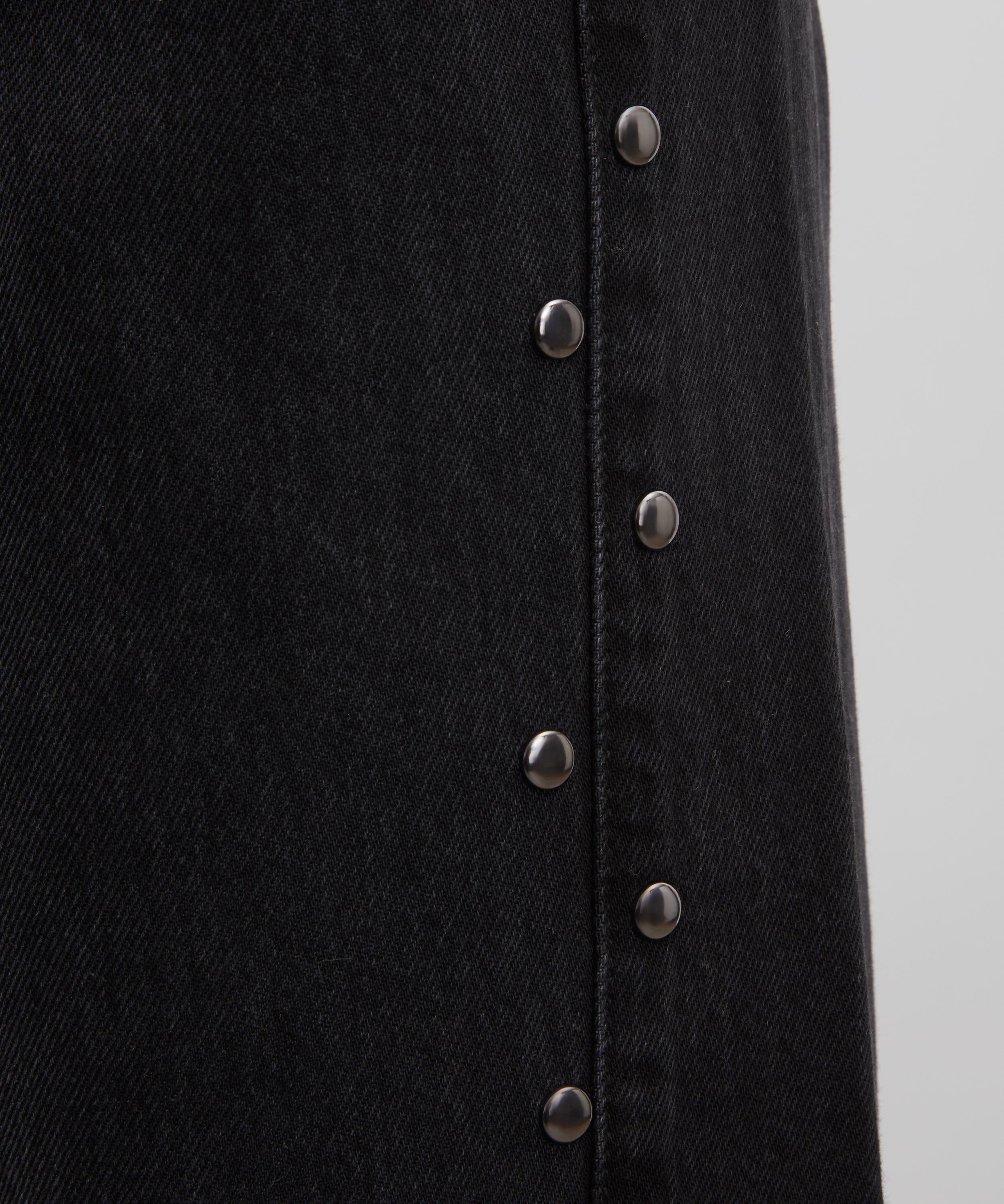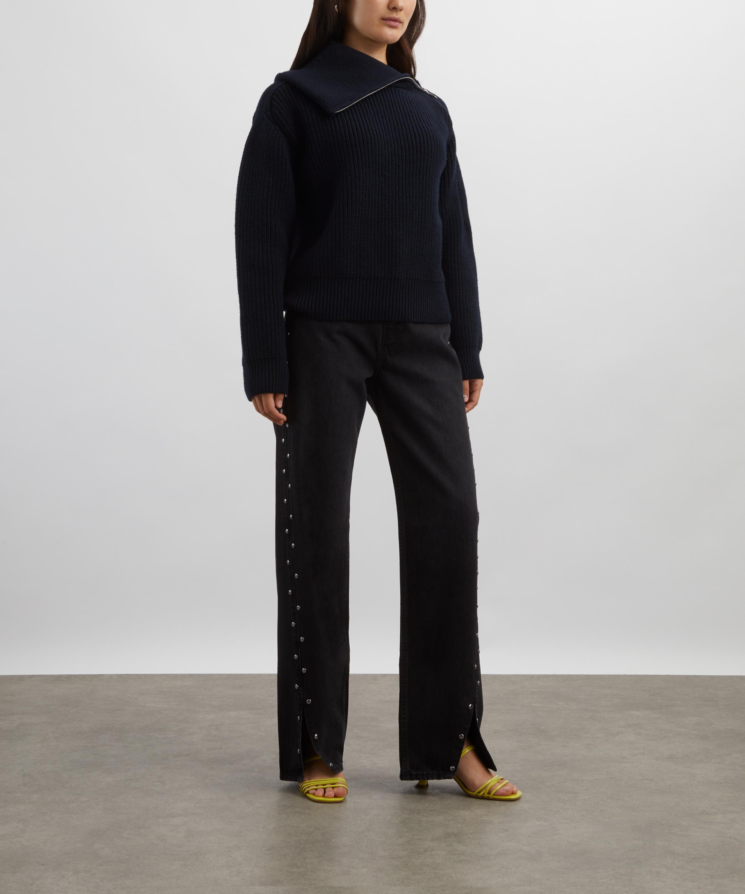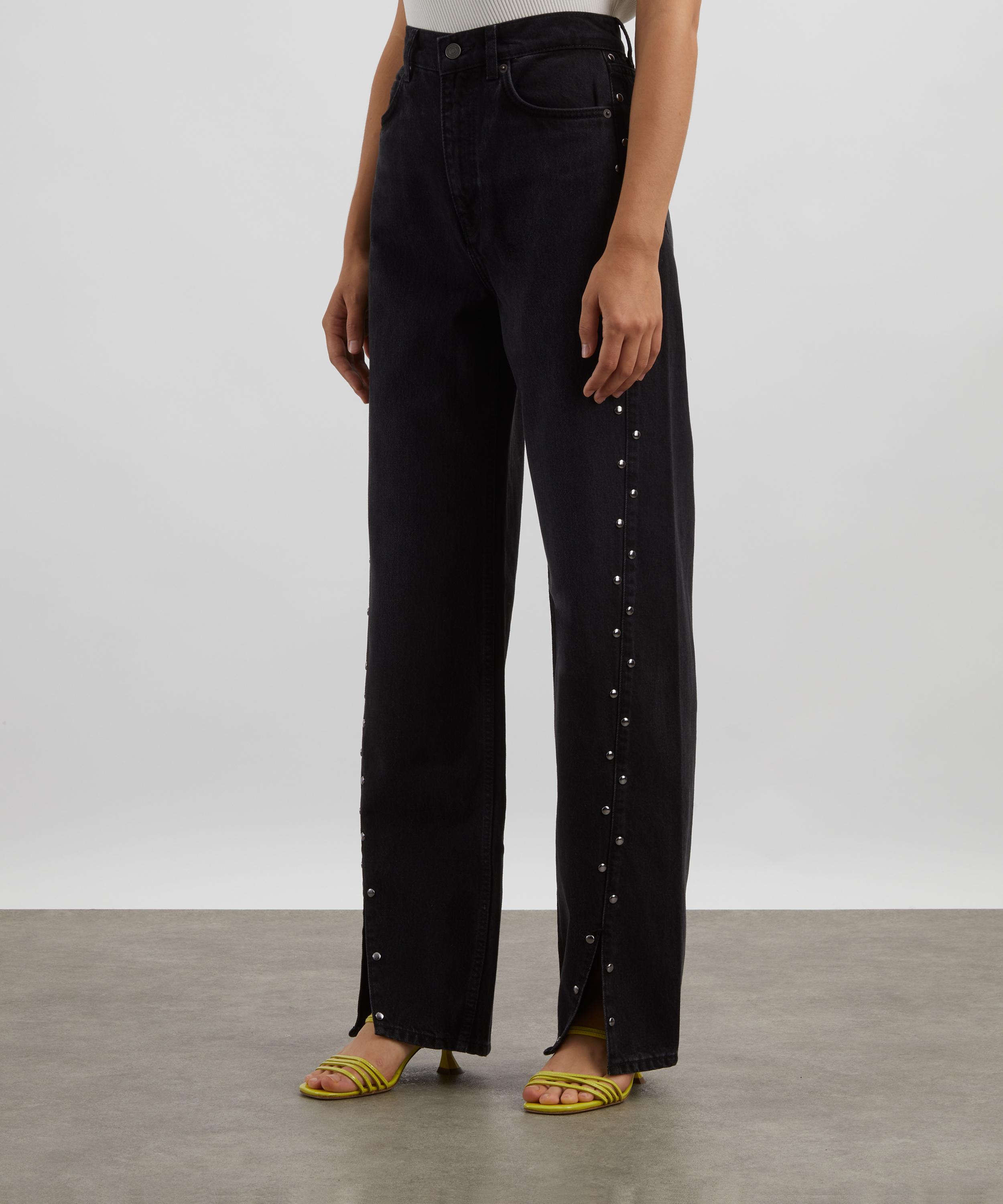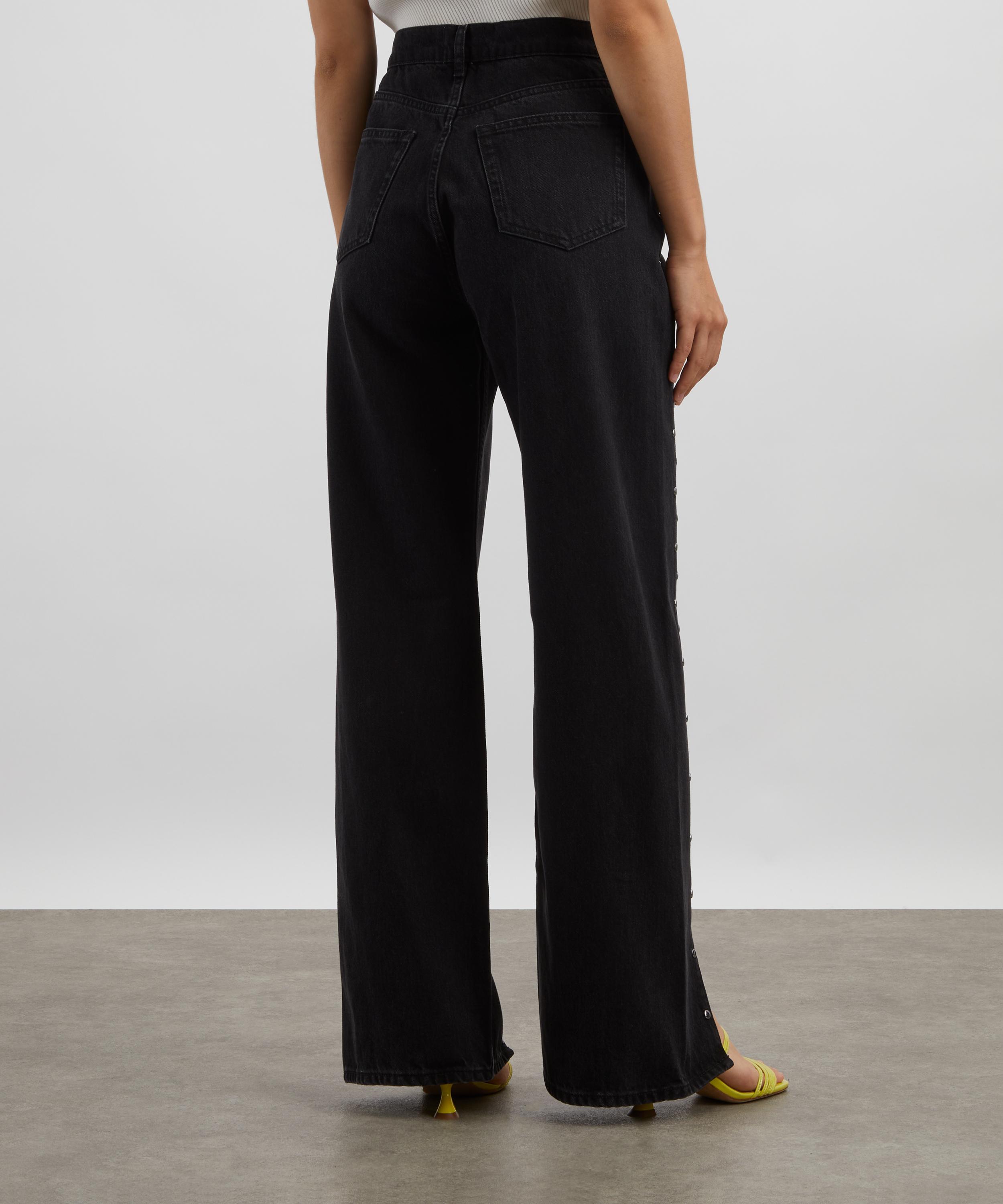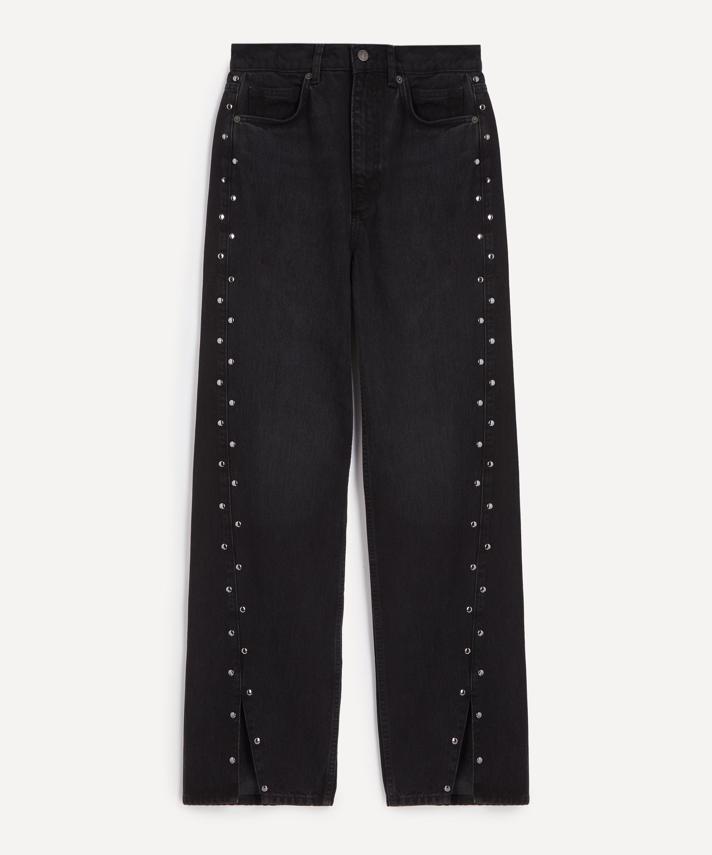 Crafted from rigid non-stretch denim, the Cary jeans are designed to be relaxed through the waist, hips, and thigh before falling into a wide-leg silhouette. Designed in a vintage-effect black wash, these jeans are a timeless staple, elevated by studded side seams that lend a touch of understated attitude.