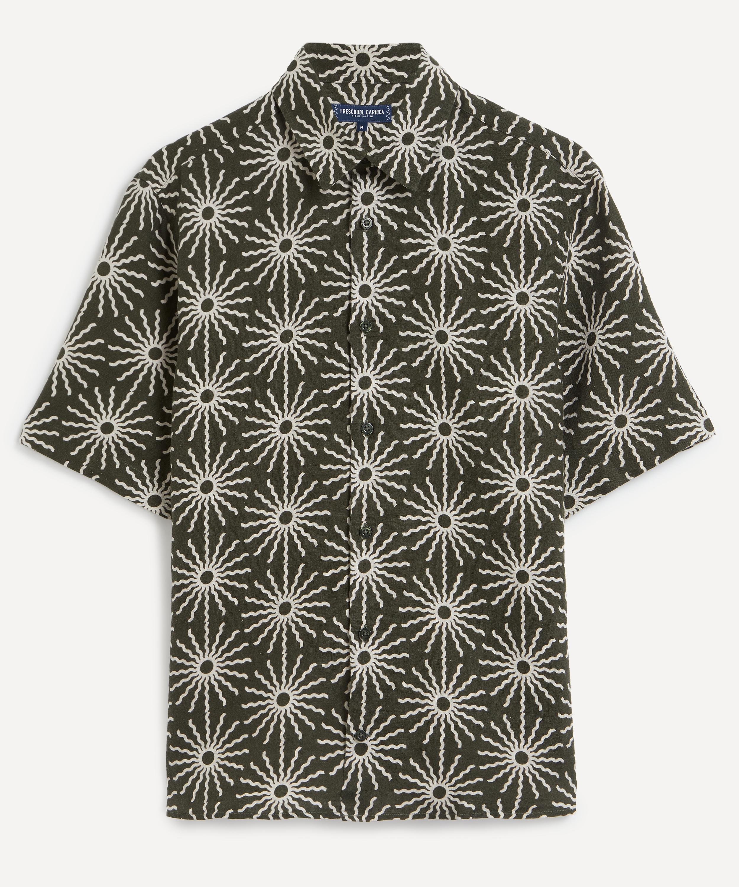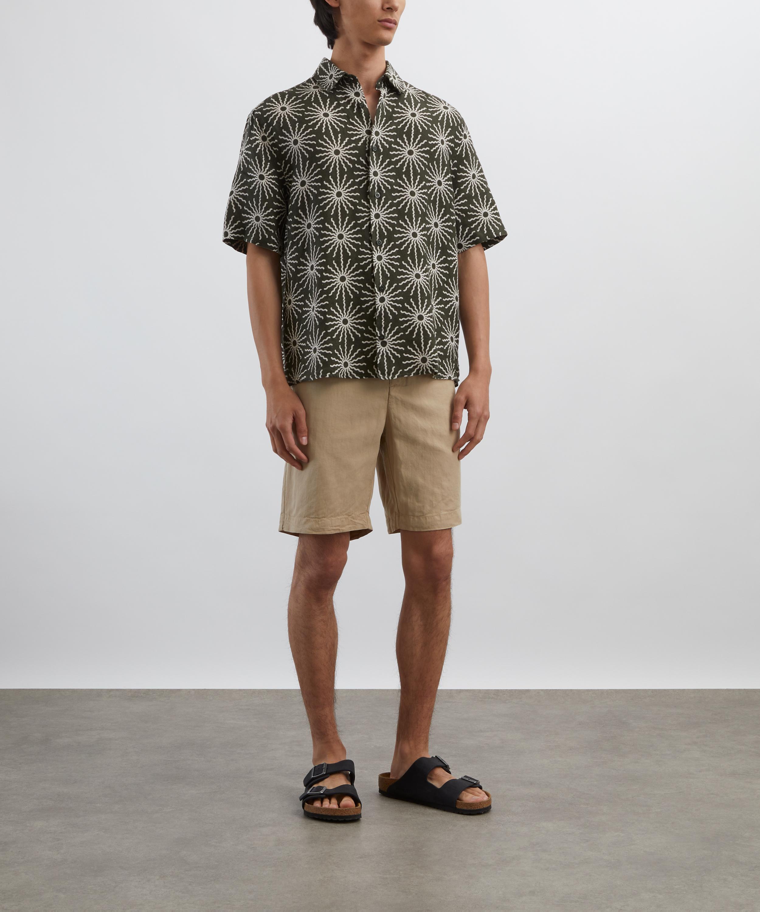 Cut from linen and tailored for a relaxed fit, the Castro shirt reimagines classic shirting with laid-back ease. Featuring a casual camp collar, short sleeves, and adorned with bespoke 'O Sol' print, it’s a contemporary staple that brings understated character to everyday dressing.