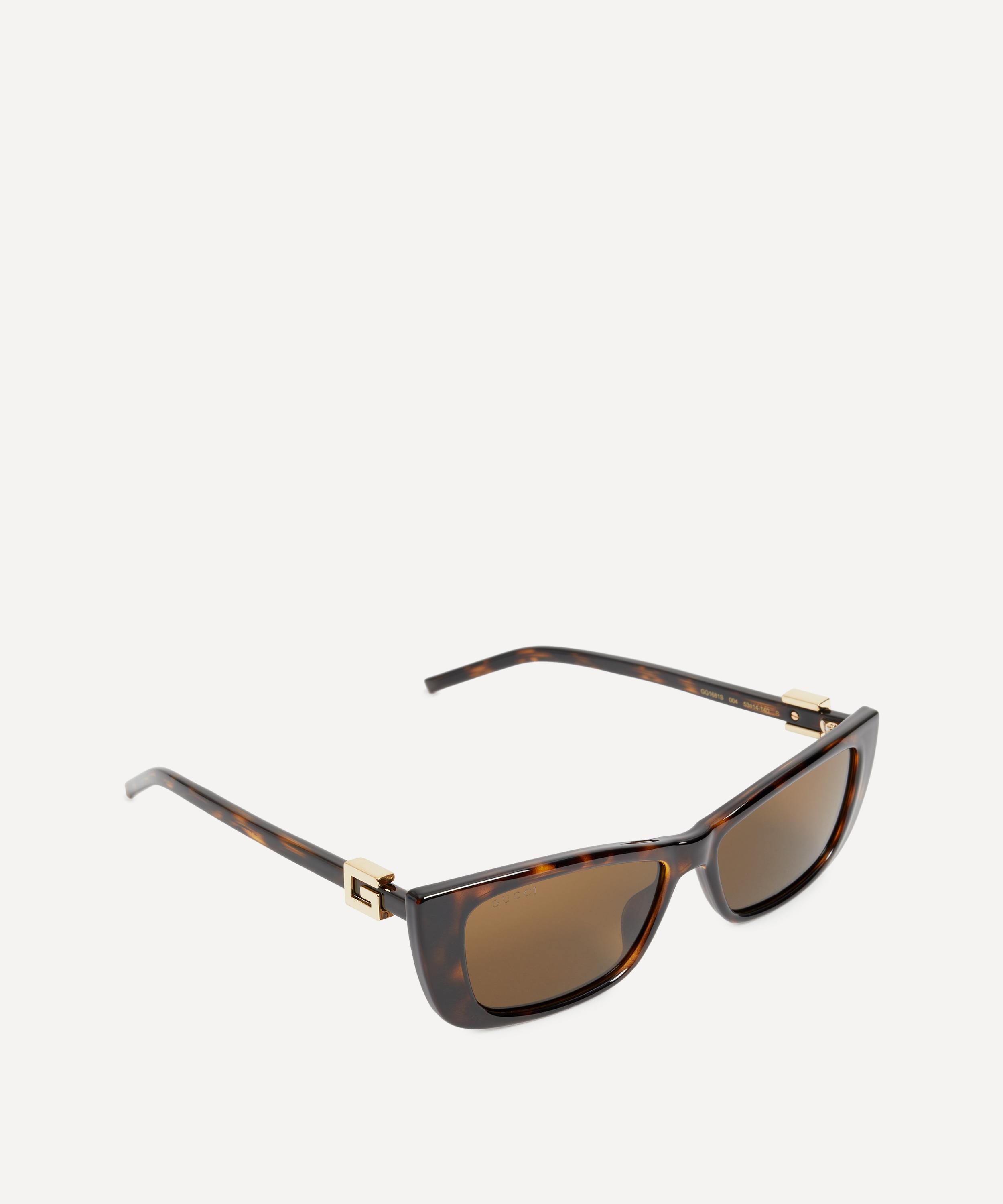 Crafted from glossy acetate, this elegant pair feature a cat-eye silhouette fitted with solid brown tinted lenses and slim temples, and are complete with a geometric rendition of the Italian fashion house's signature G logo for a modern finish.