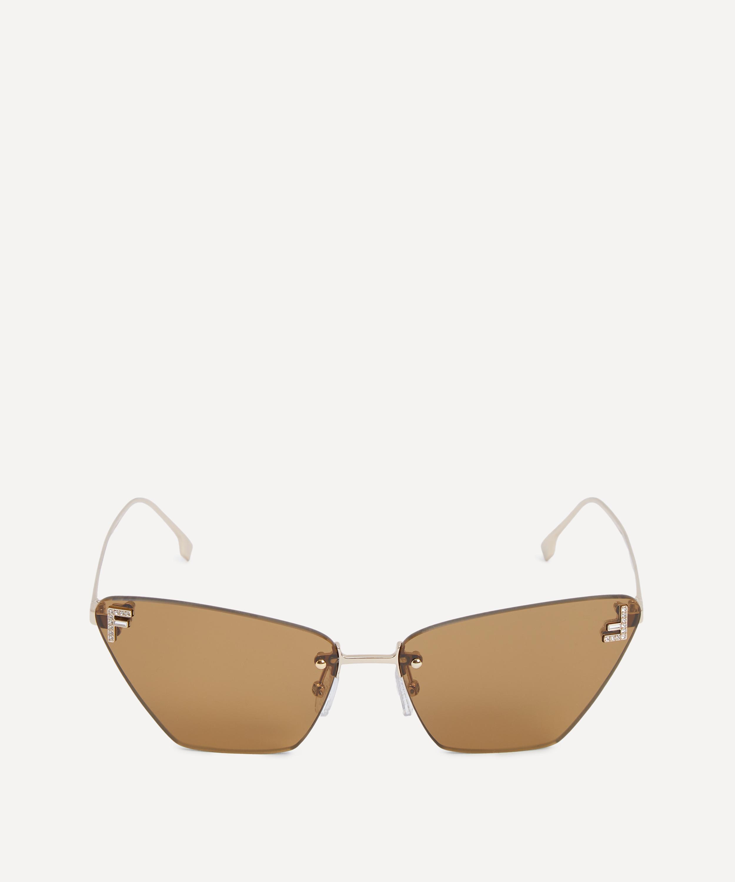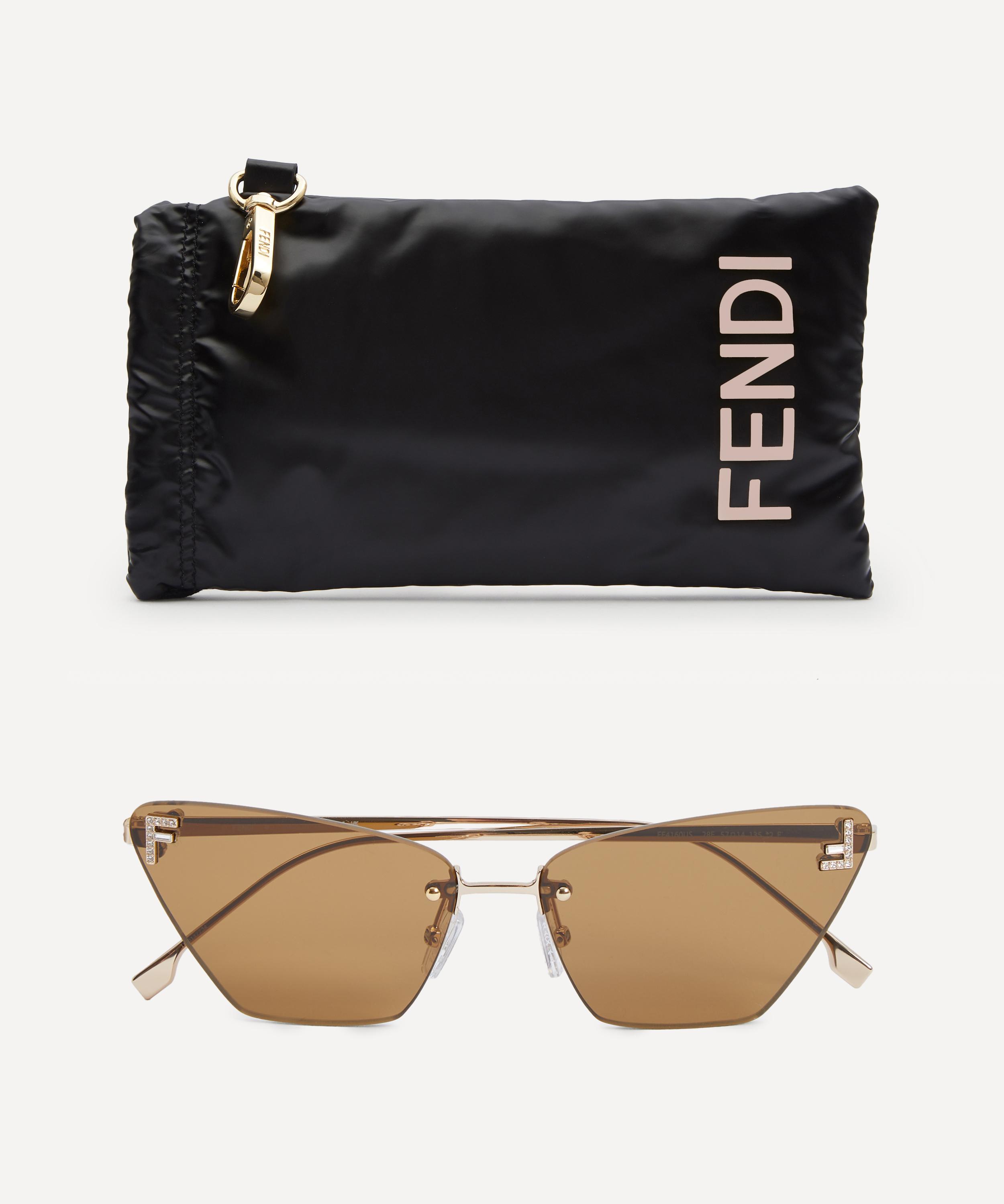 Make a bold statement with these contemporary rimless cat-eye sunglasses from reigning queen of accessories, Fendi.