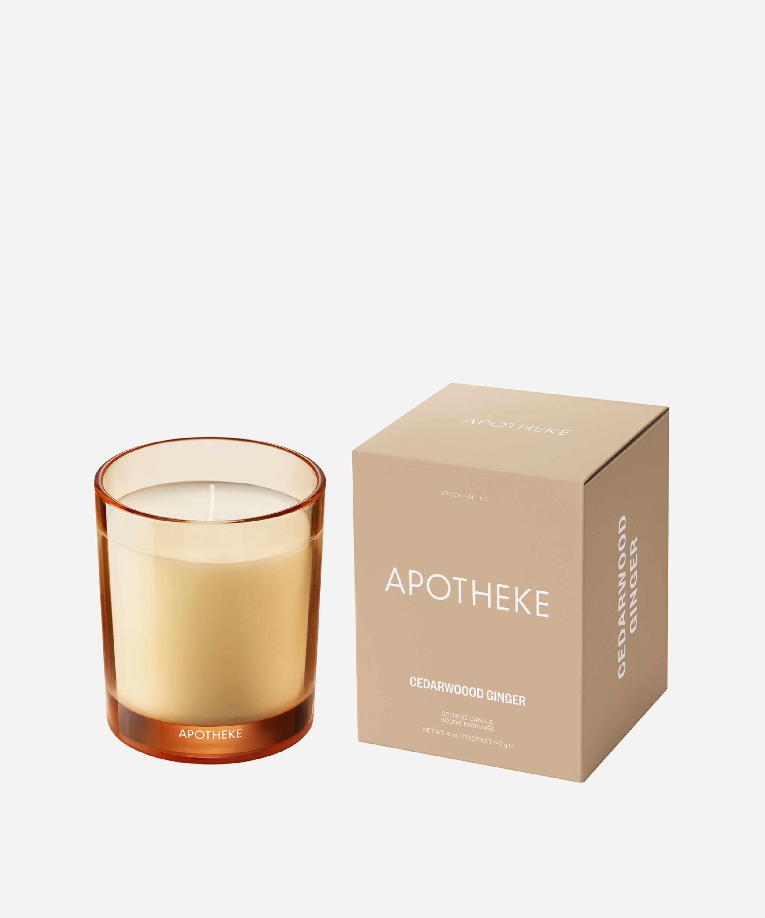 Imbuing your home with an enchanting atmosphere, Apotheke's Cedarwood Ginger Petite Scented Candle reveals a vibrant, floral woody aroma – housed in an elegant translucent white glass vessel that gently diffuses the candle's glow.