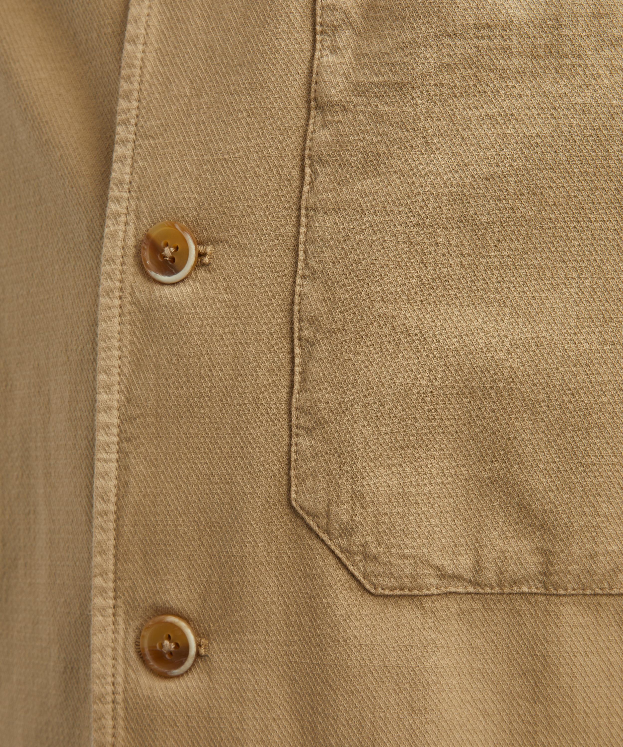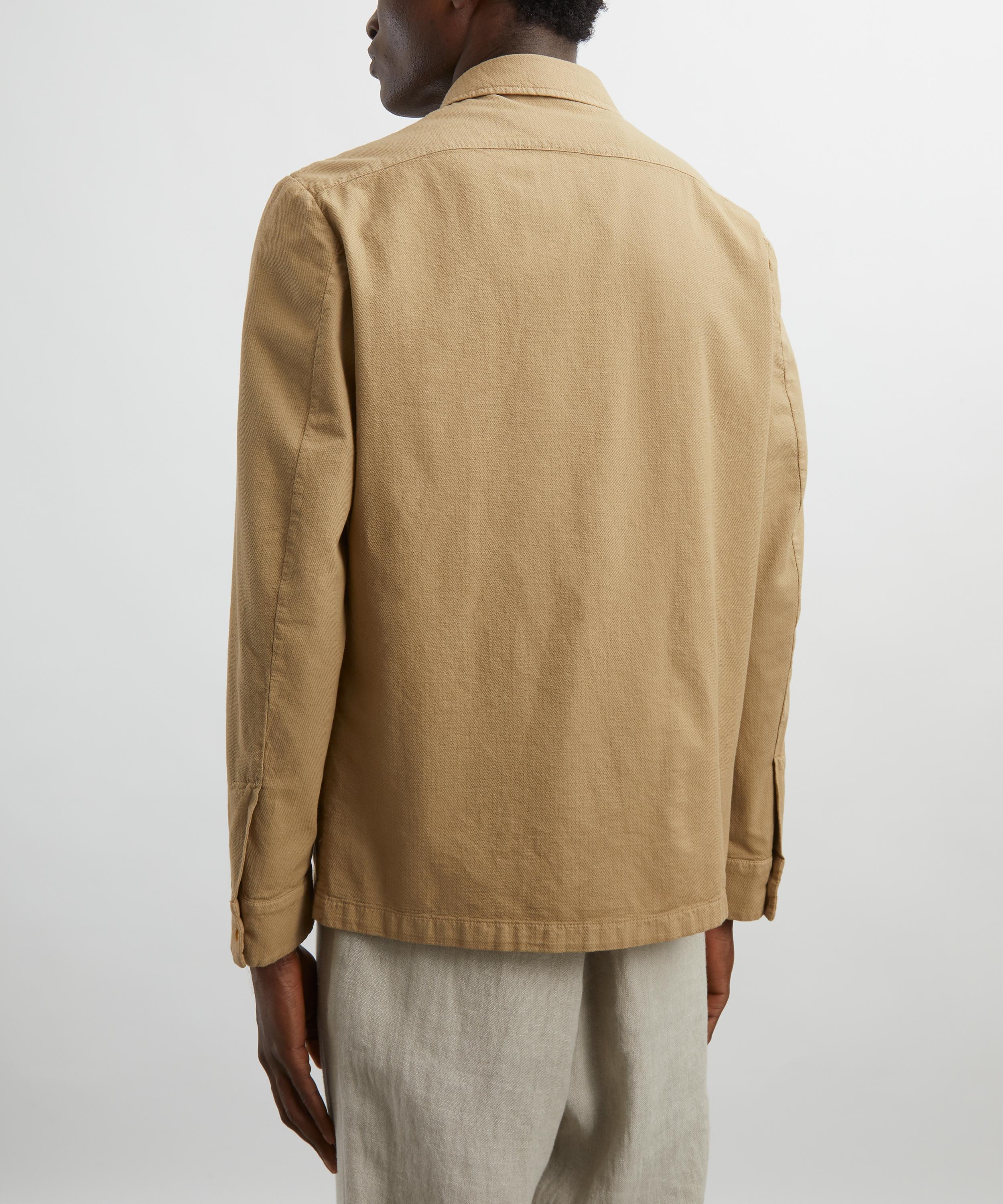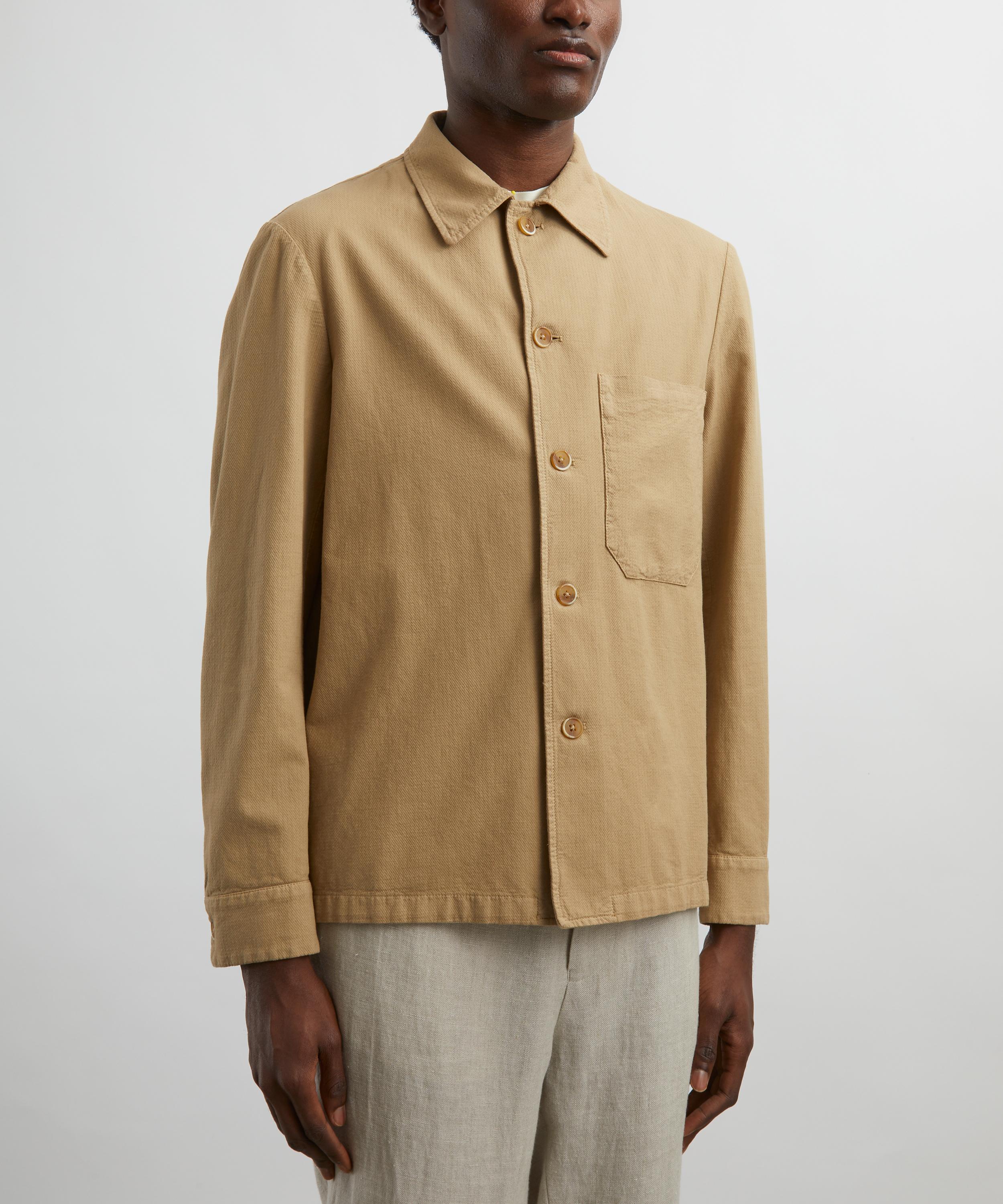 Cut from sturdy cotton twill, this beige overshirt brings a refined edge to your casual wardrobe. Inspired by classic workwear, it features a spread collar, front button fastening, and a single patch pocket at the chest, giving it a functional yet stylish utilitarian finish.