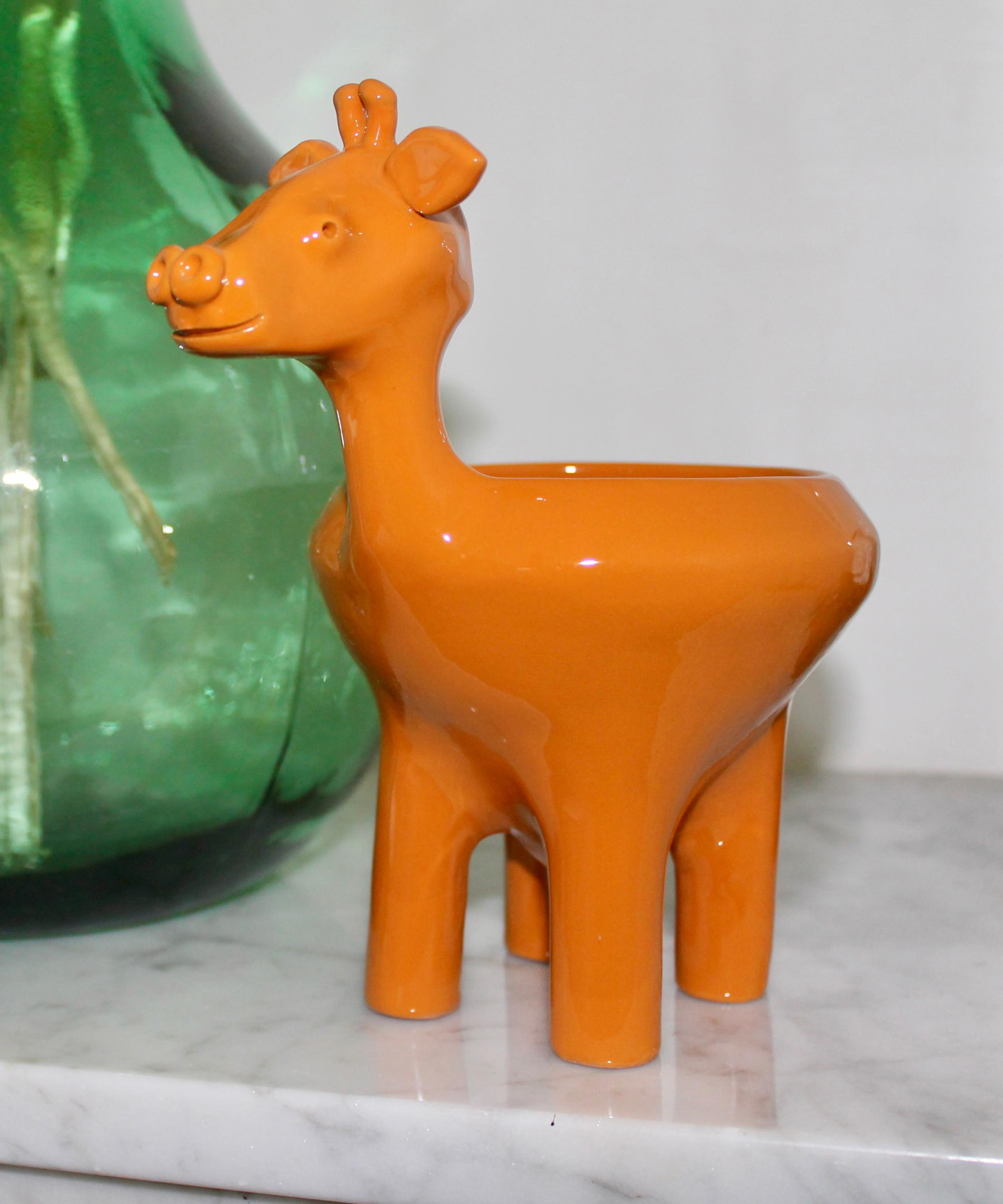 Effortlessly balancing fun and functionality, this bowl takes the funky form of a giraffe, meticulously handcrafted and finished with playful detailing. Mix and match with the other animals in the collection for marvelous menagerie that will add an joyful, eccentric edge to your interior space.