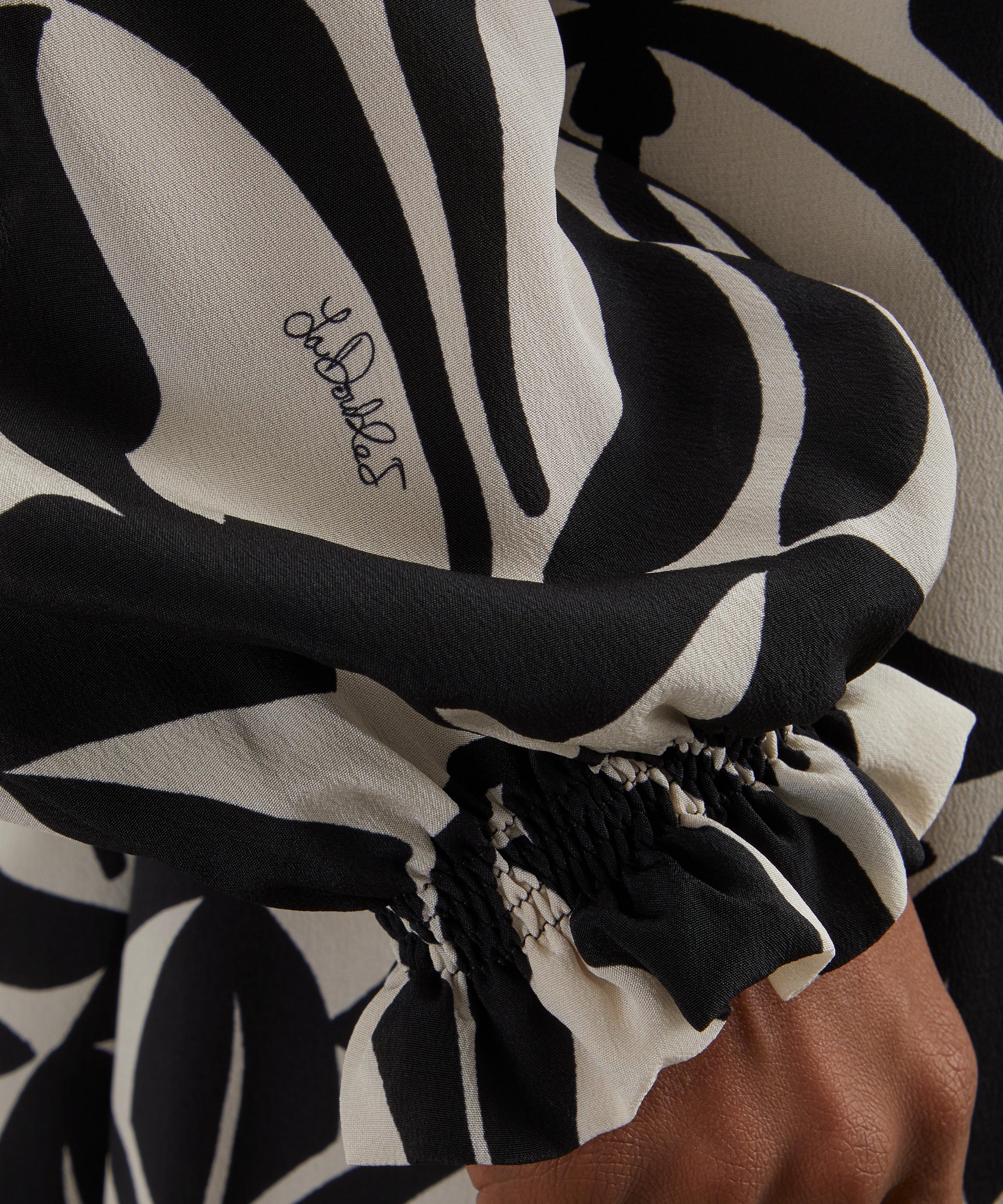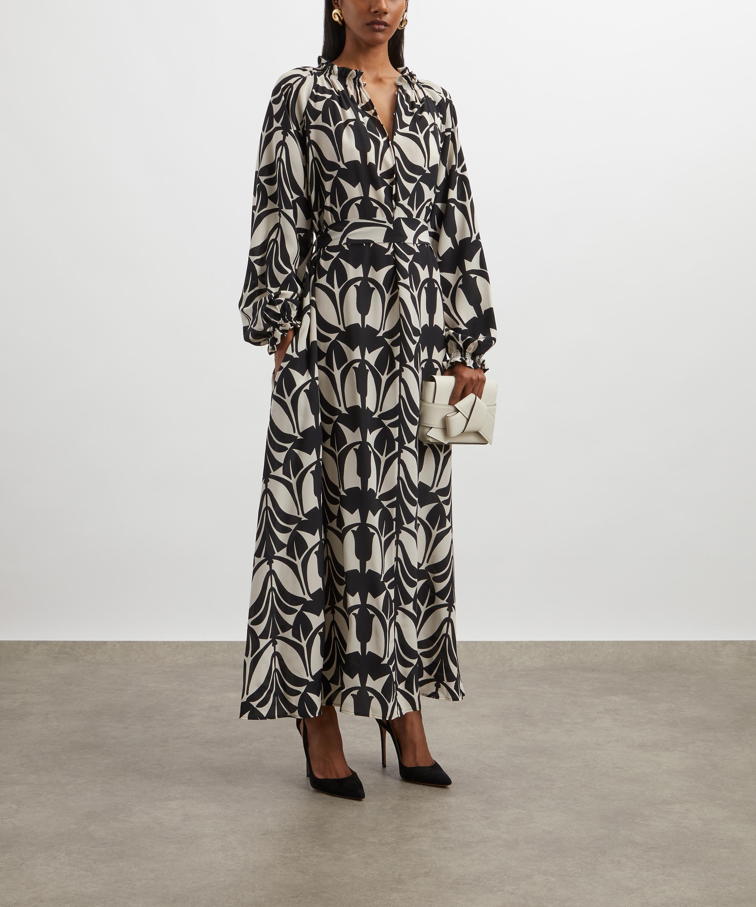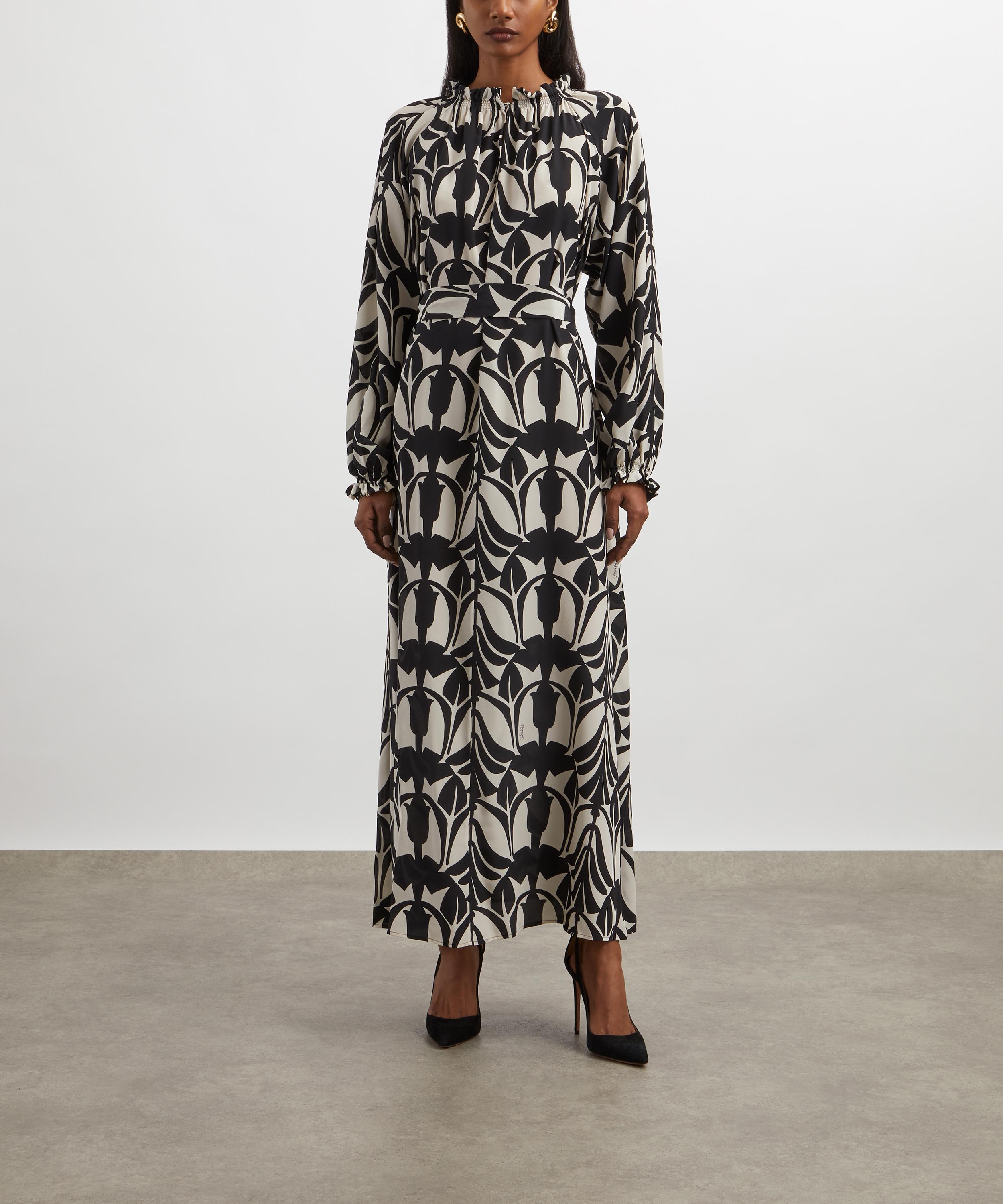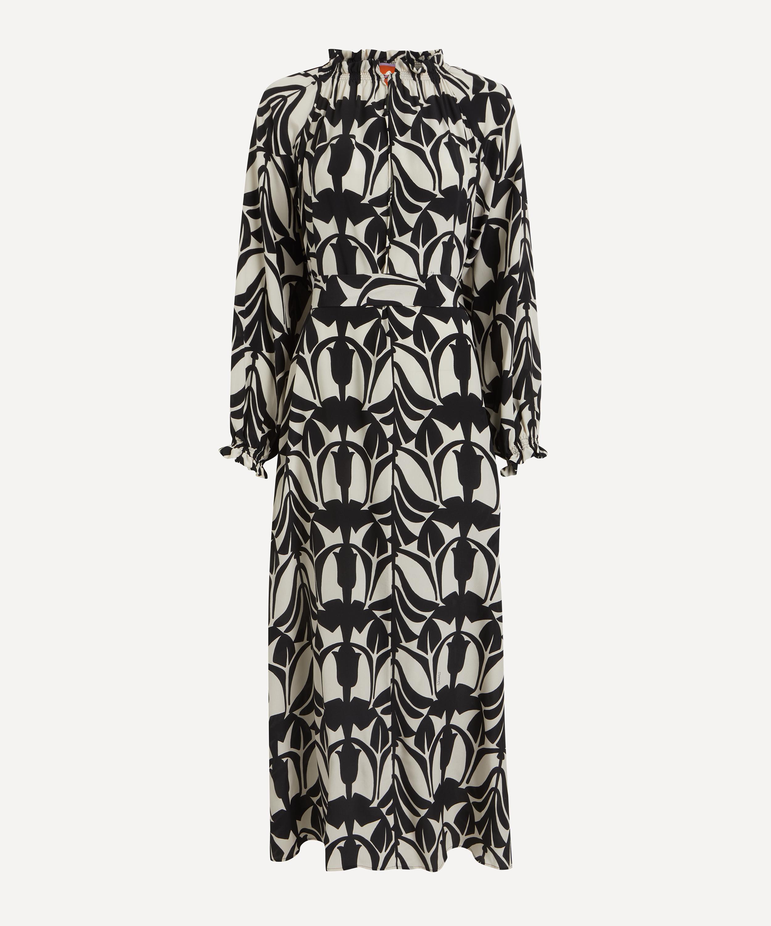 Crafted from pure silk for a floaty, relaxed silhouette, this statement piece features an all-over two tone print, and is complete with a gathered neckline, a ruffled collar secured with an adjustable tie closure, a buttoned front closure and a removeable sash at the waist.