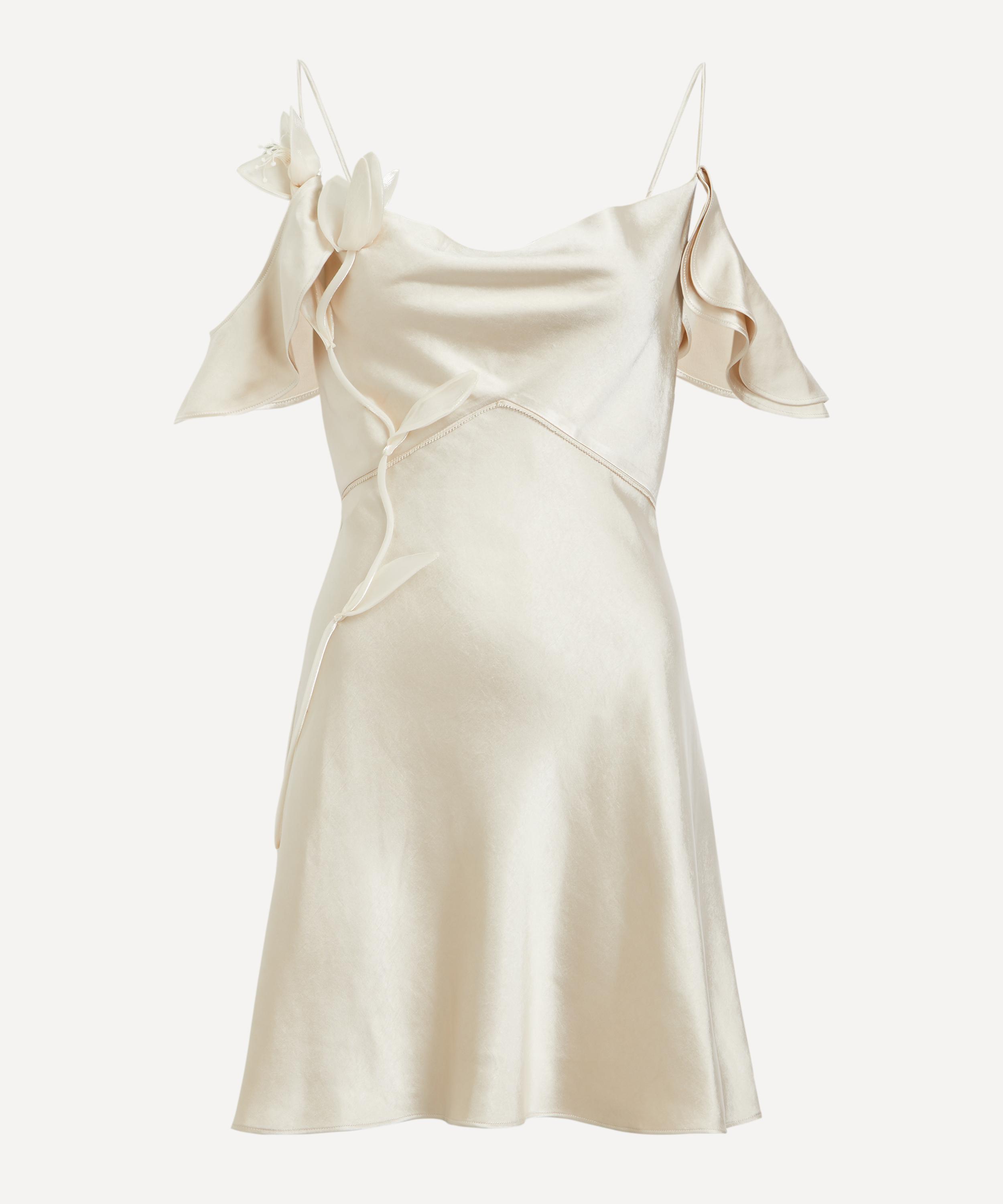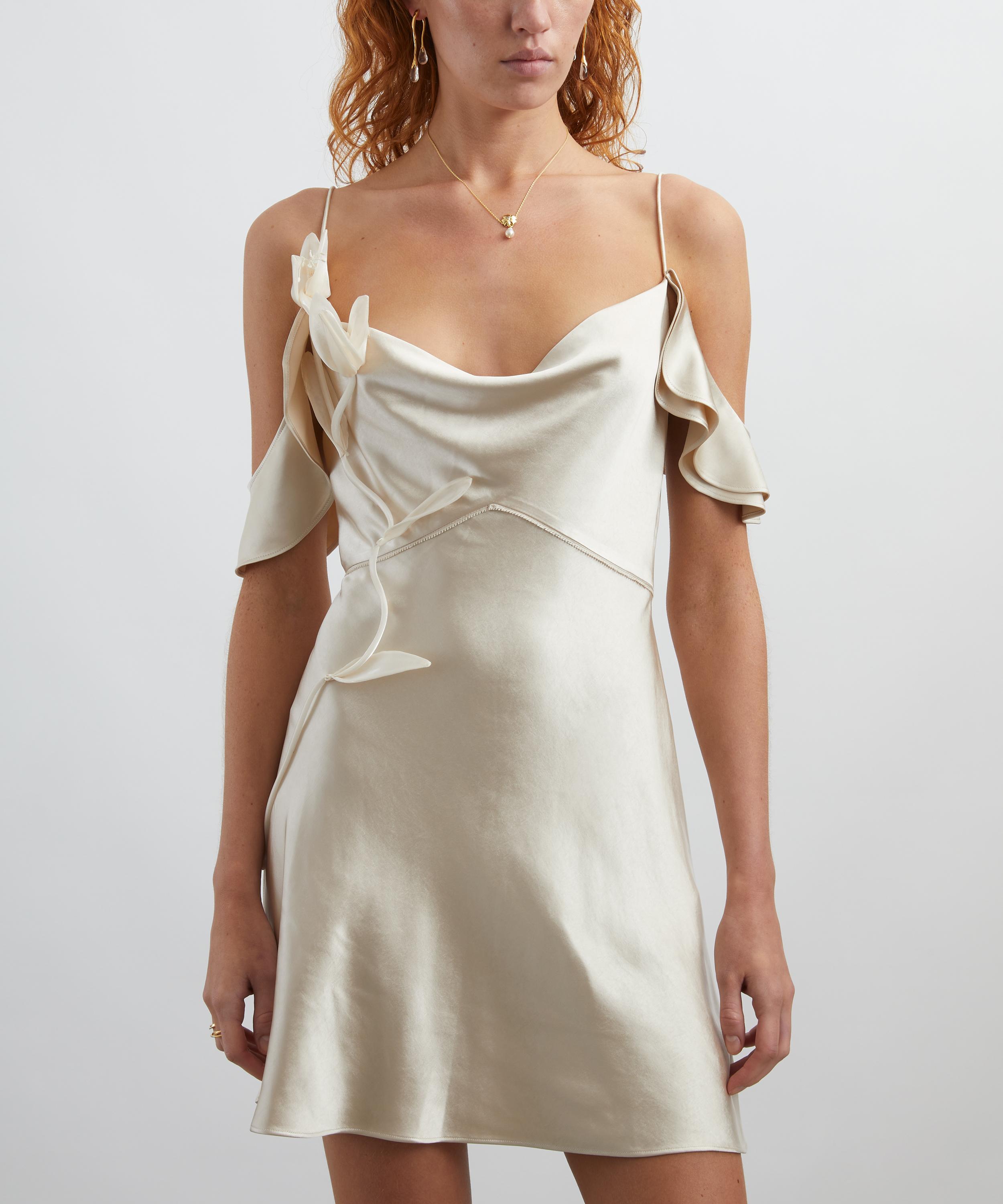 Nothing says romance quite like the Champagne Satin Flower Mini Dress from Self-Portrait.