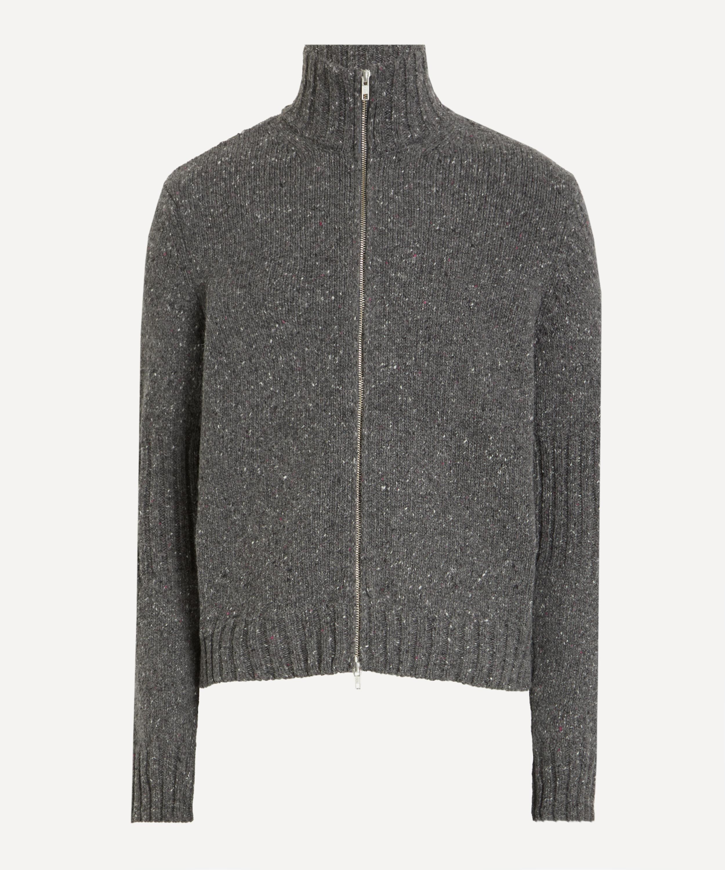 Crafted from a Donegal wool-blend, the Nova cardigan features a funnel neck, two-way zip fastening, and rib-knit trims, offering a relaxed and cosy finish with subtle texture and warmth.