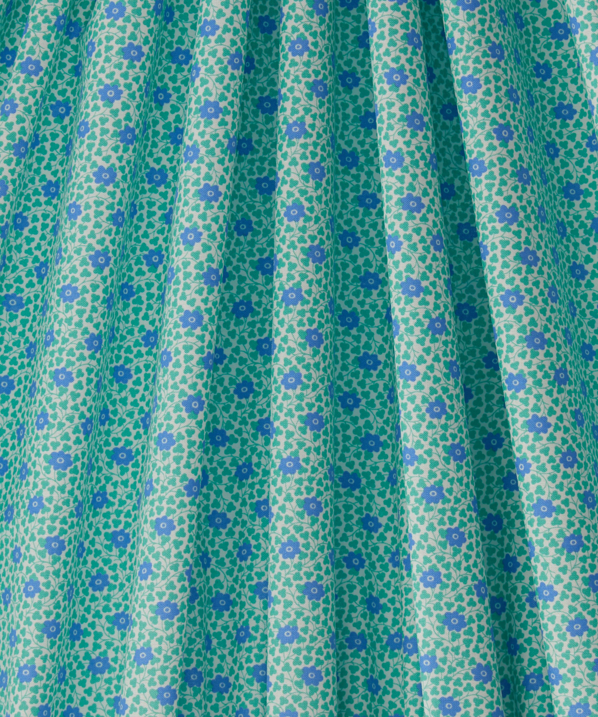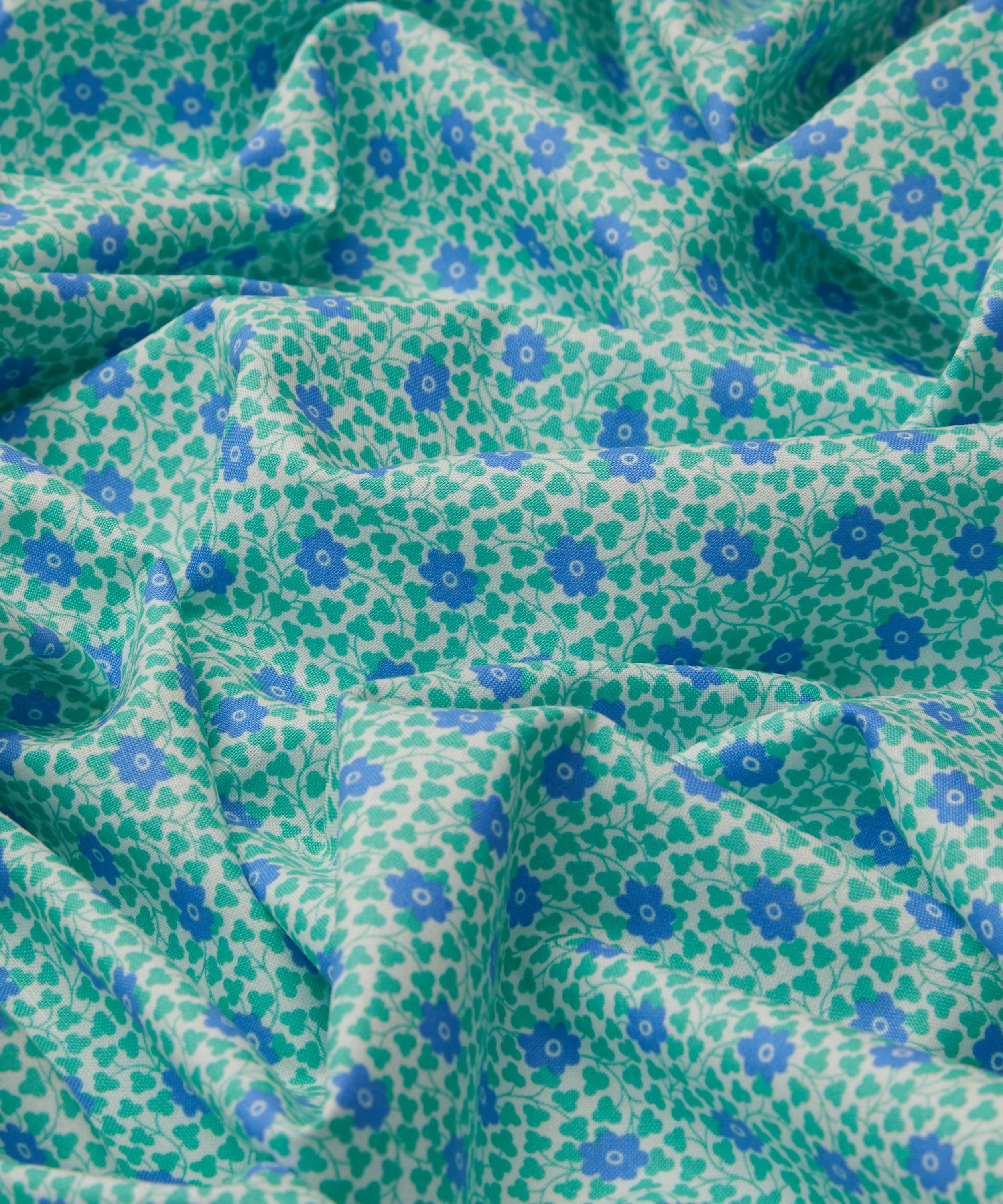 The original version of Chelsea Flower was created in the 1960s and printed at Liberty’s Merton Printworks in 1965. This small and simplified pattern features a dense network of stylised leafy trails, emphasised by bold pops of circular flowers – when viewed from a distance, the flowers resemble spots set over a textured ground.