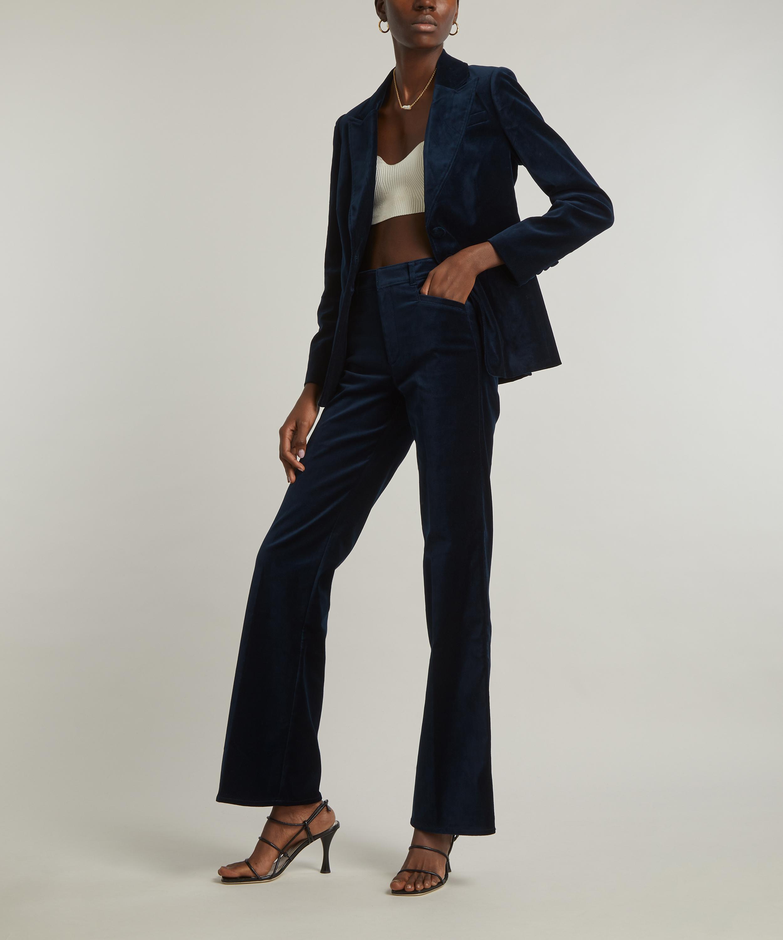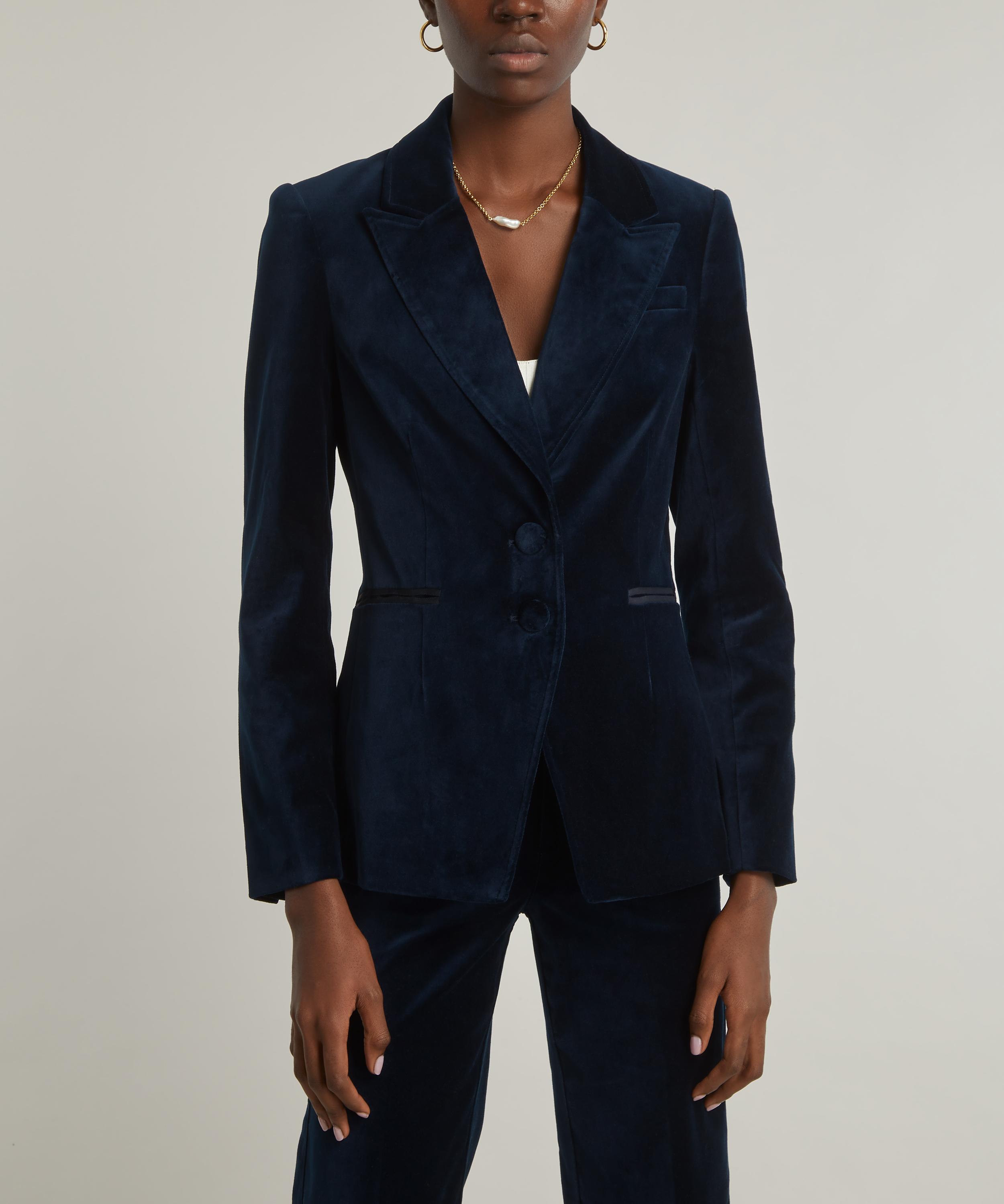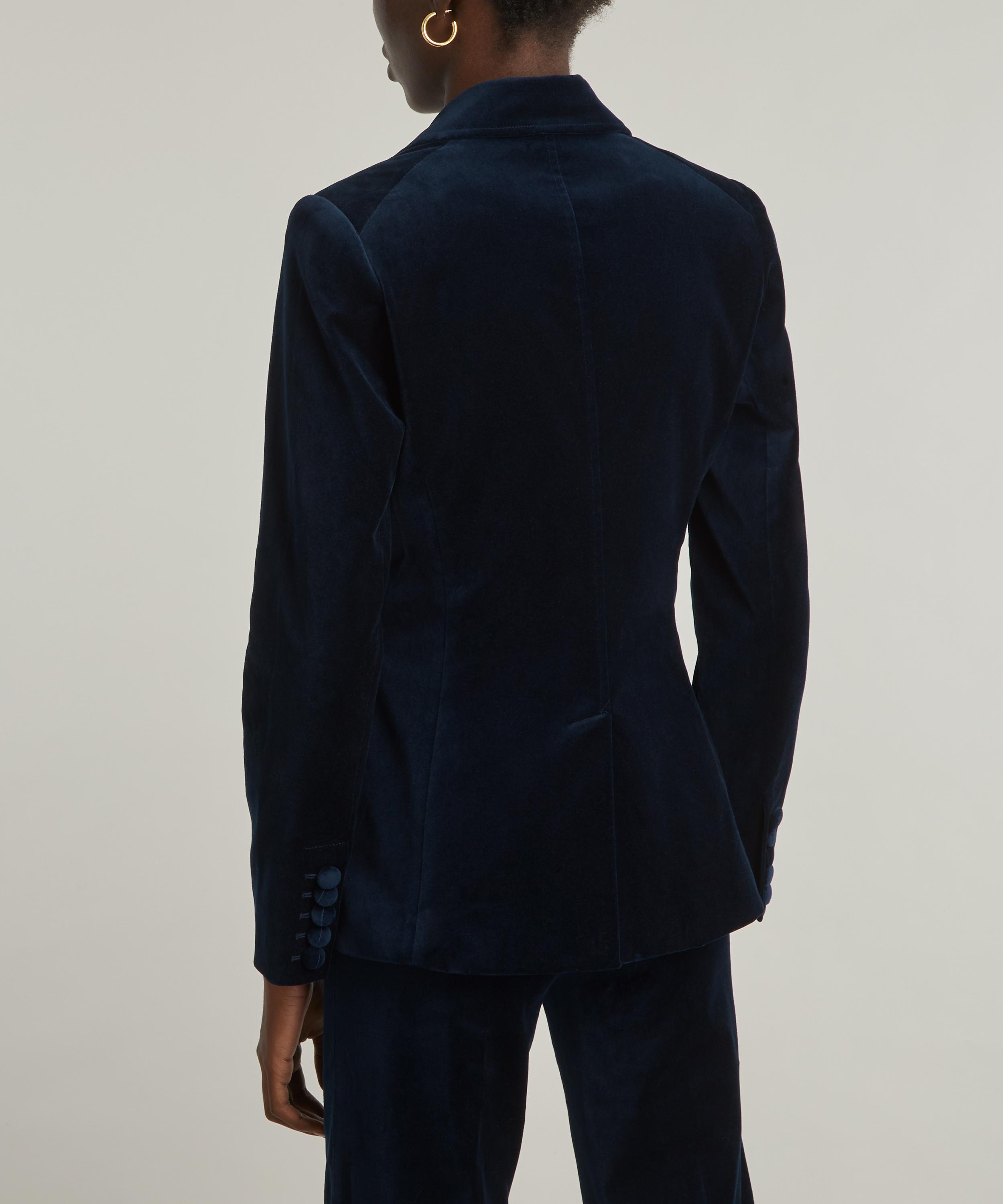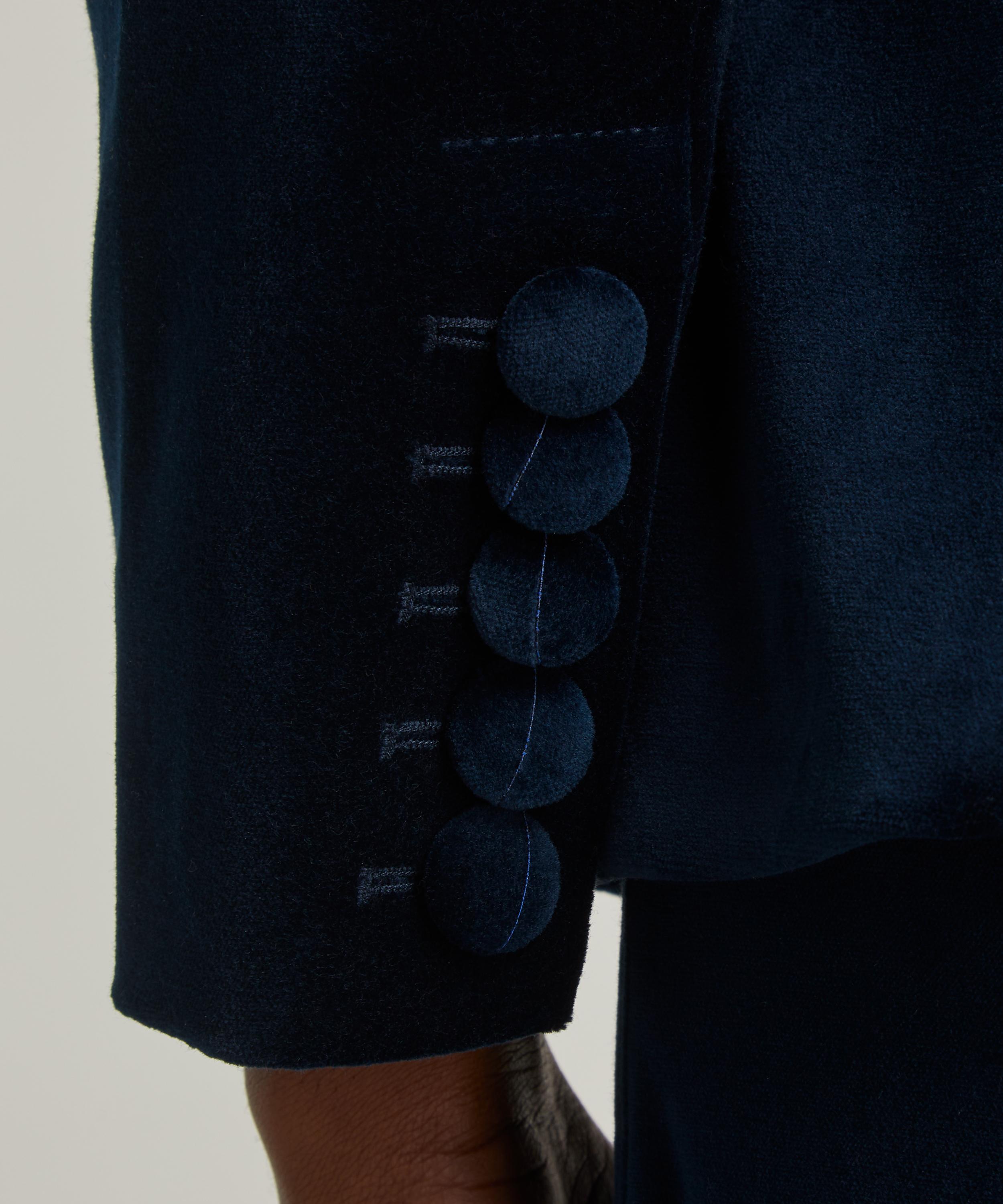 Cut from a soft navy velvet with just the right amount of stretch, this luxe blazer boasts a sleek silhouette, double buttoned front closure, notch-collar, and neat welt front pockets. Style it with the matching Leenah Trousers for a tailored and stylish ensemble.