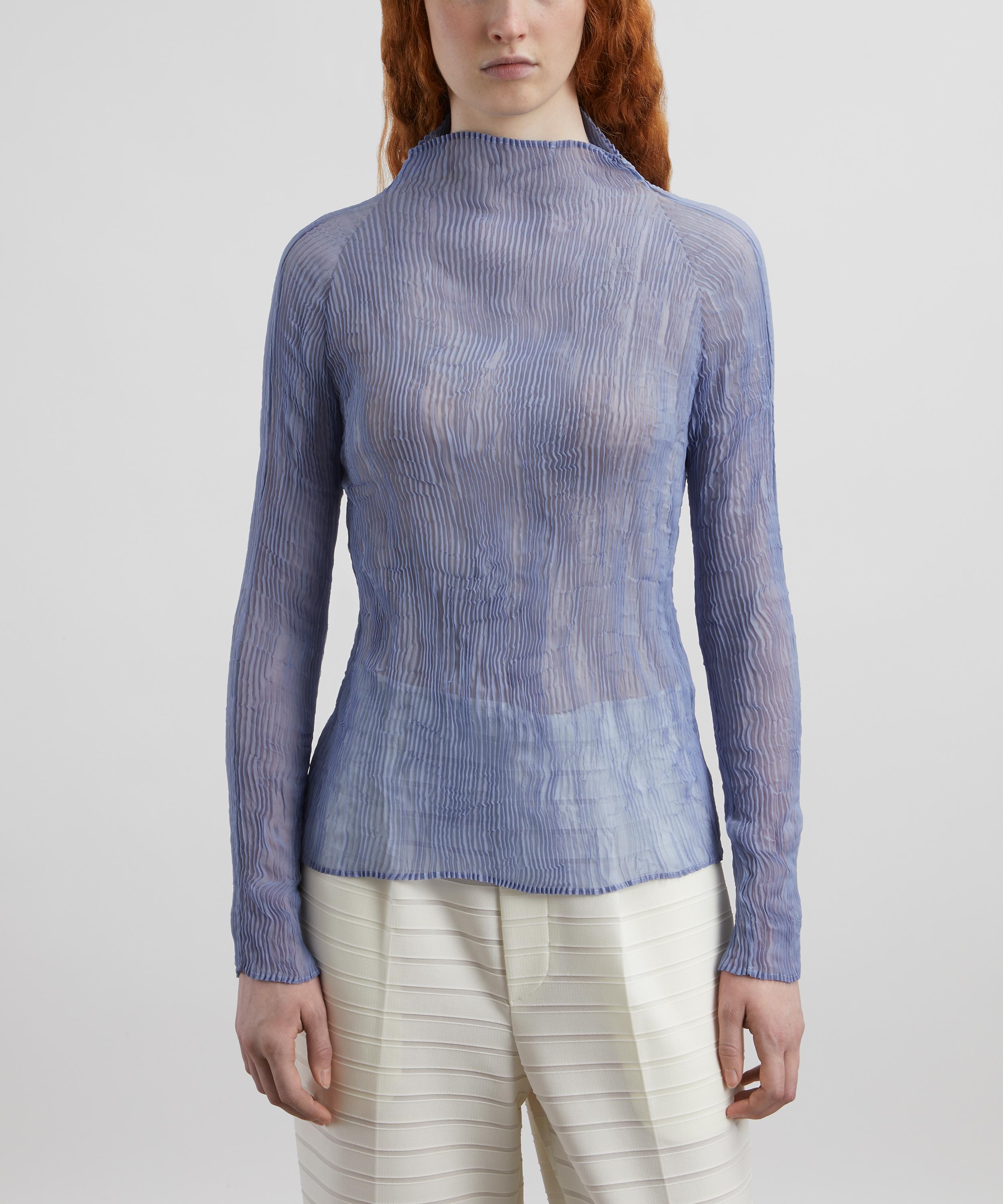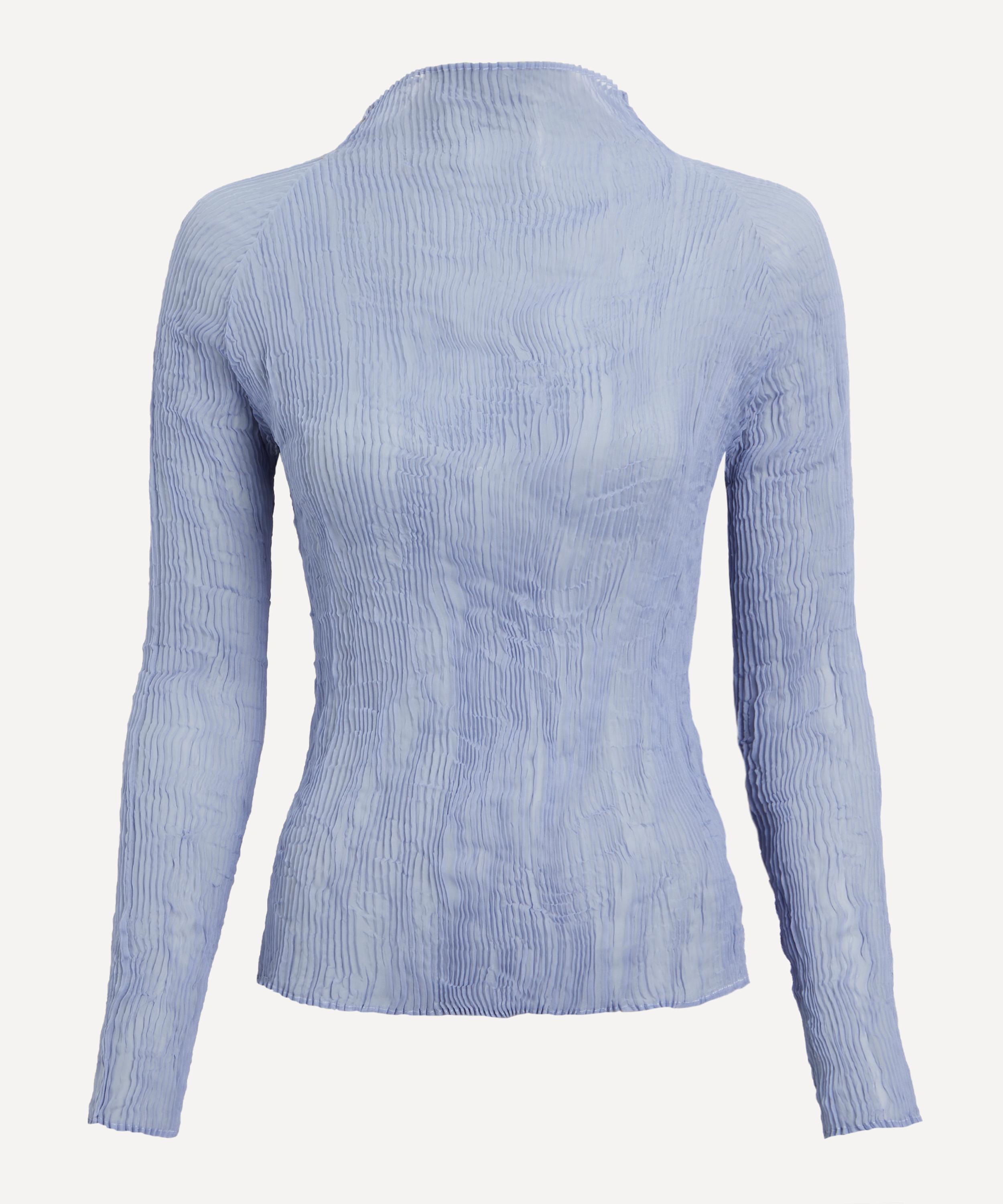 This pleated top is part of the CHIFFON TWIST 1 range from Issey Miyake, which features a collection of sheer, finely hand-pleated tops in seasonal colours. Designed for a slim fit with long sleeves, its mock neckline adds a touch of demure elegance.