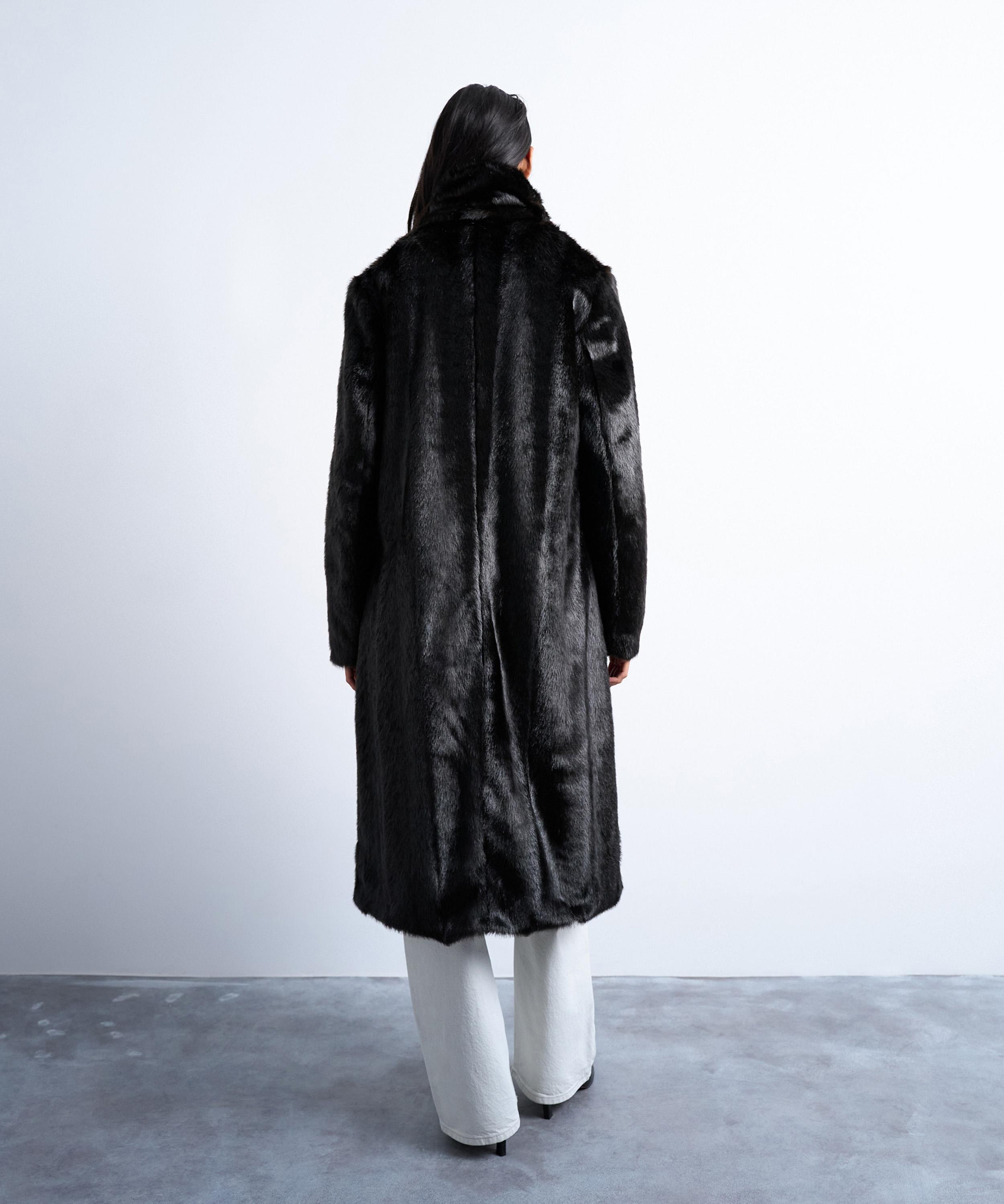 Crafted from a plush, ultra-soft faux fur, this coat is cut for a longline silhouette complete with notch lapels and a press-stud placket - making it the perfect winter warmer.