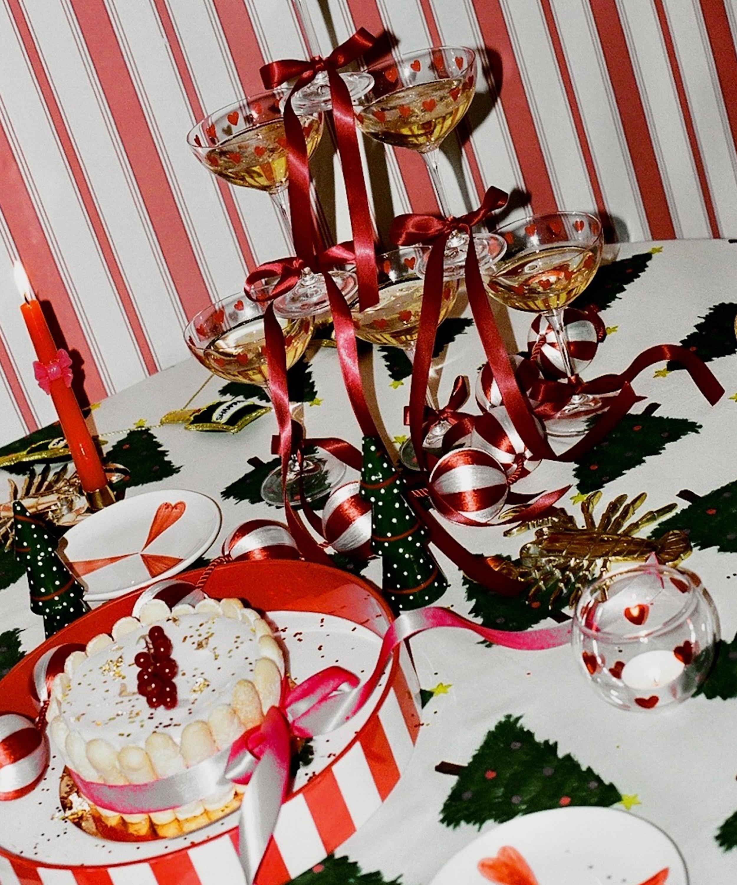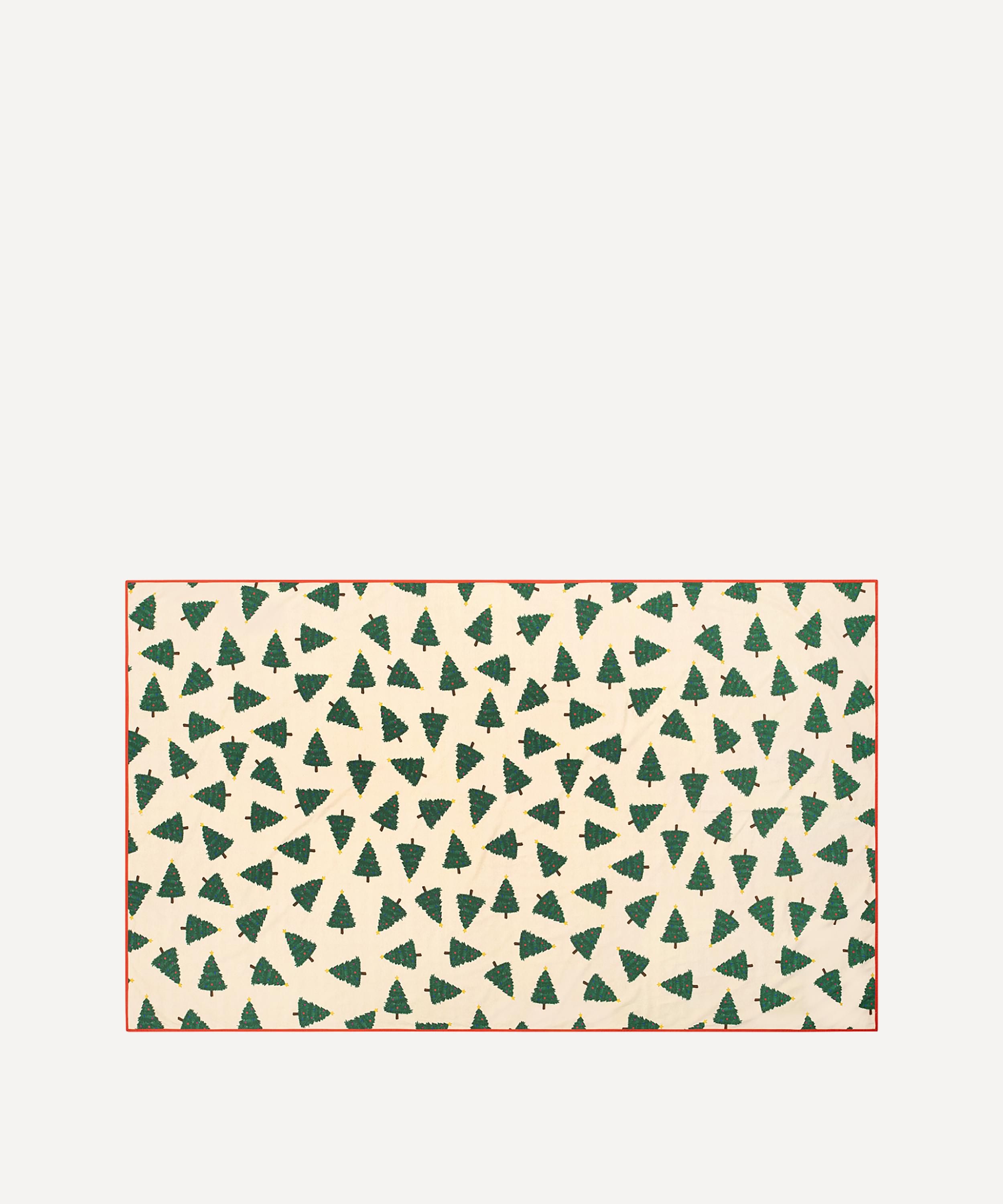 Setting the scene for a memorable seasonal celebration, this colourful textile is detailed with dazzling Christmas trees, framed by bright red border.