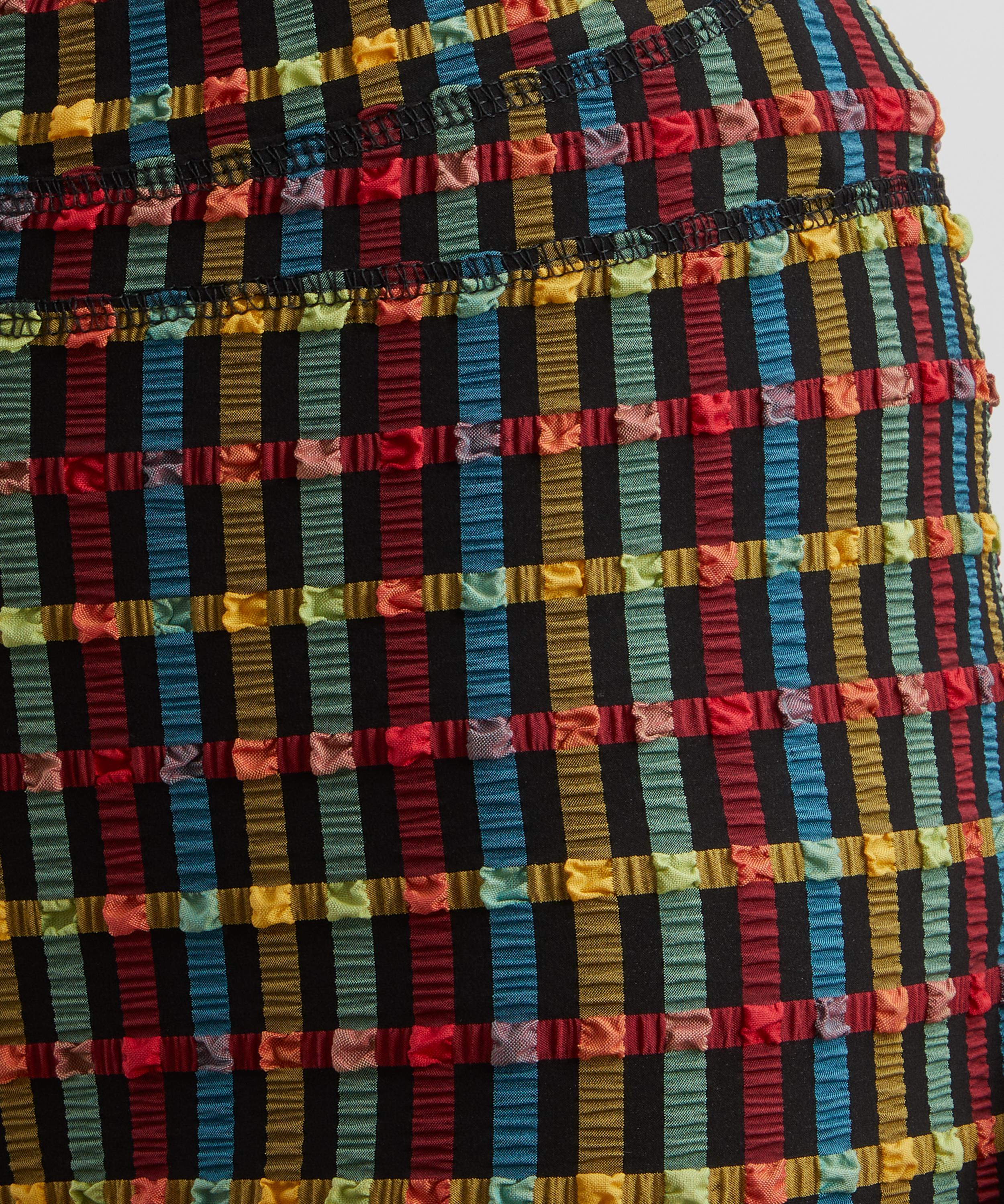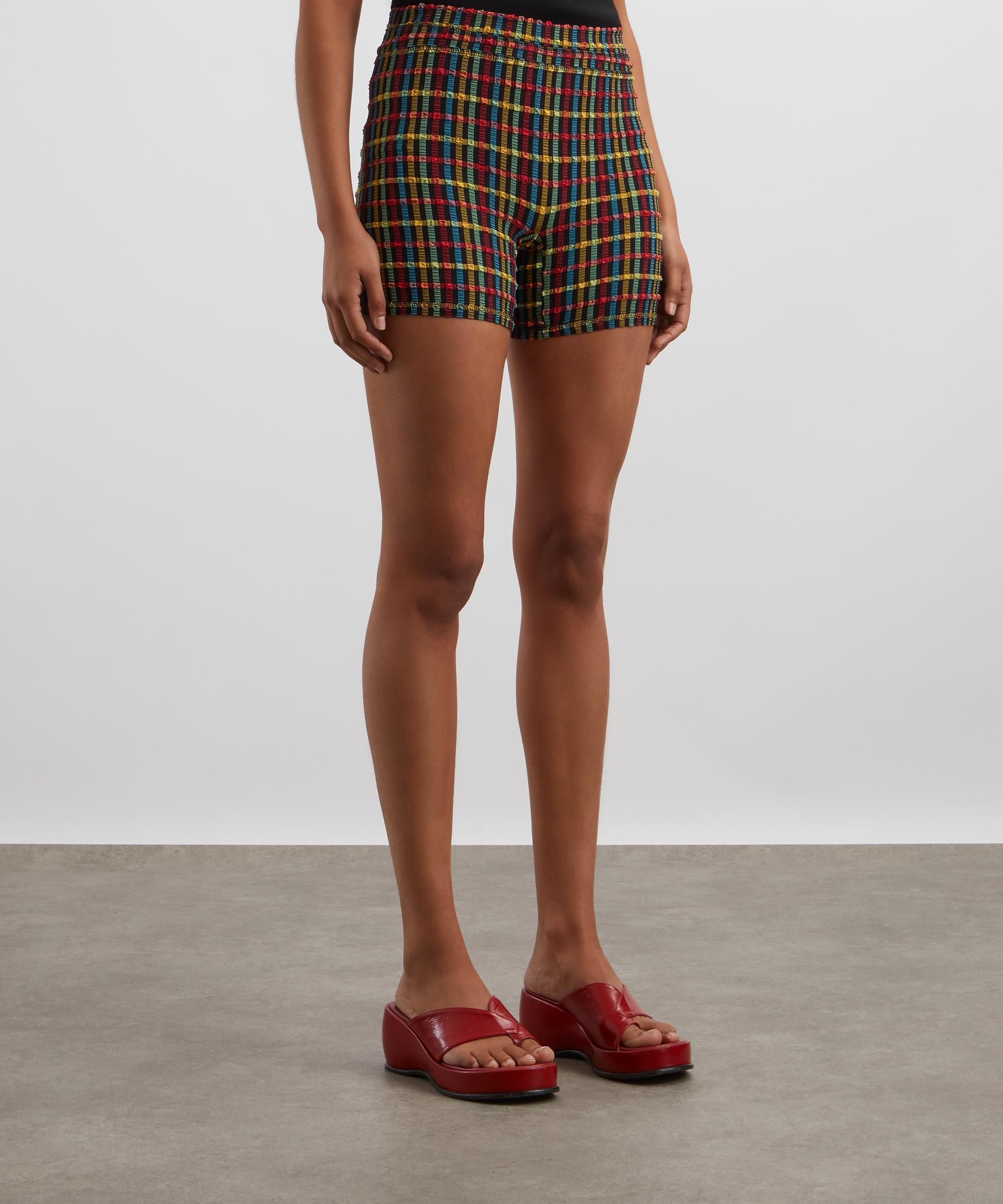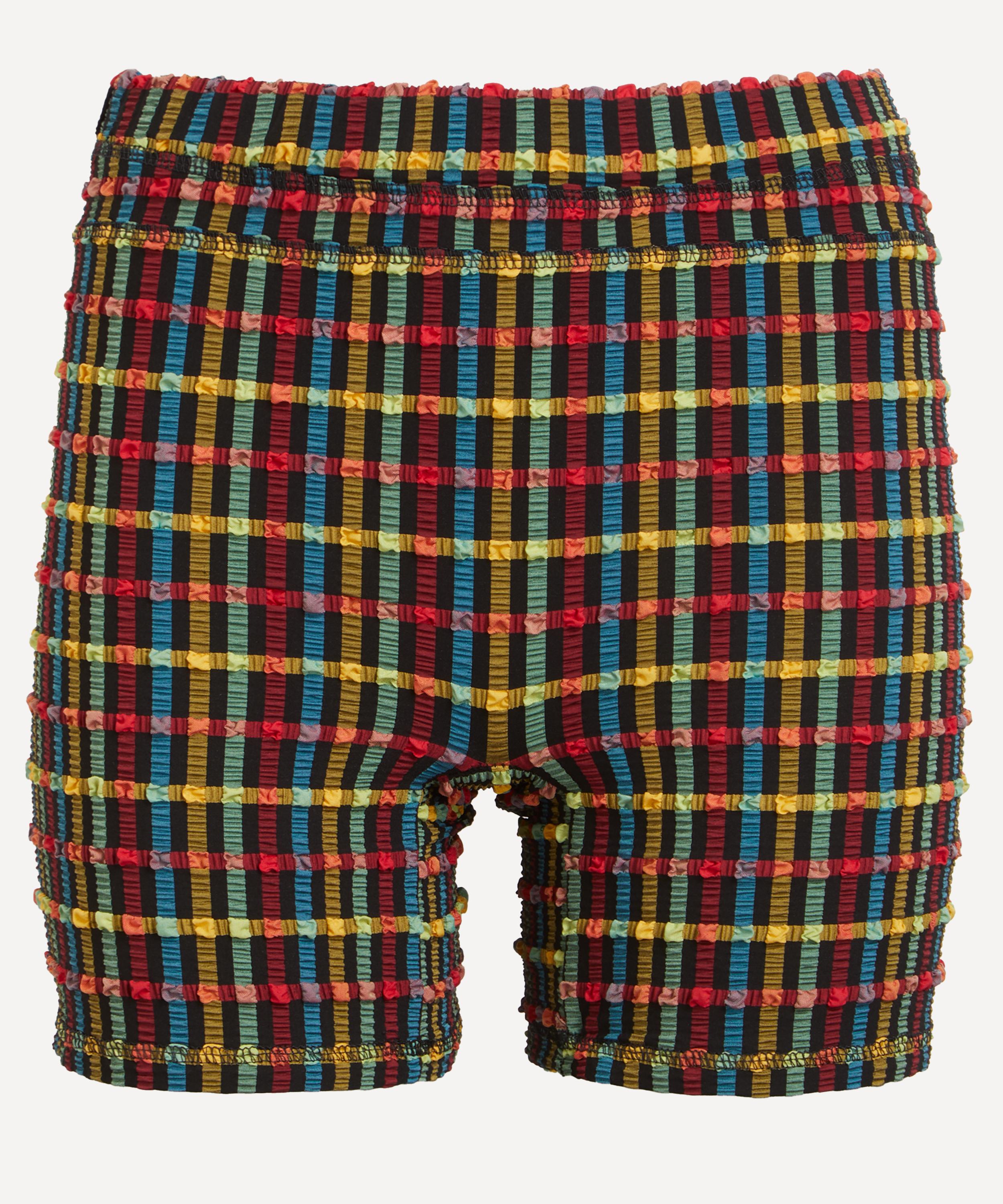 Slinky and short, these form-fitting bicycle shorts are crafted from seersucker fabric presenting a multi-coloured gingham pattern throughout. Ultra-comfy and easy to wear, they’re made to be matched with the matching Cindy Top.