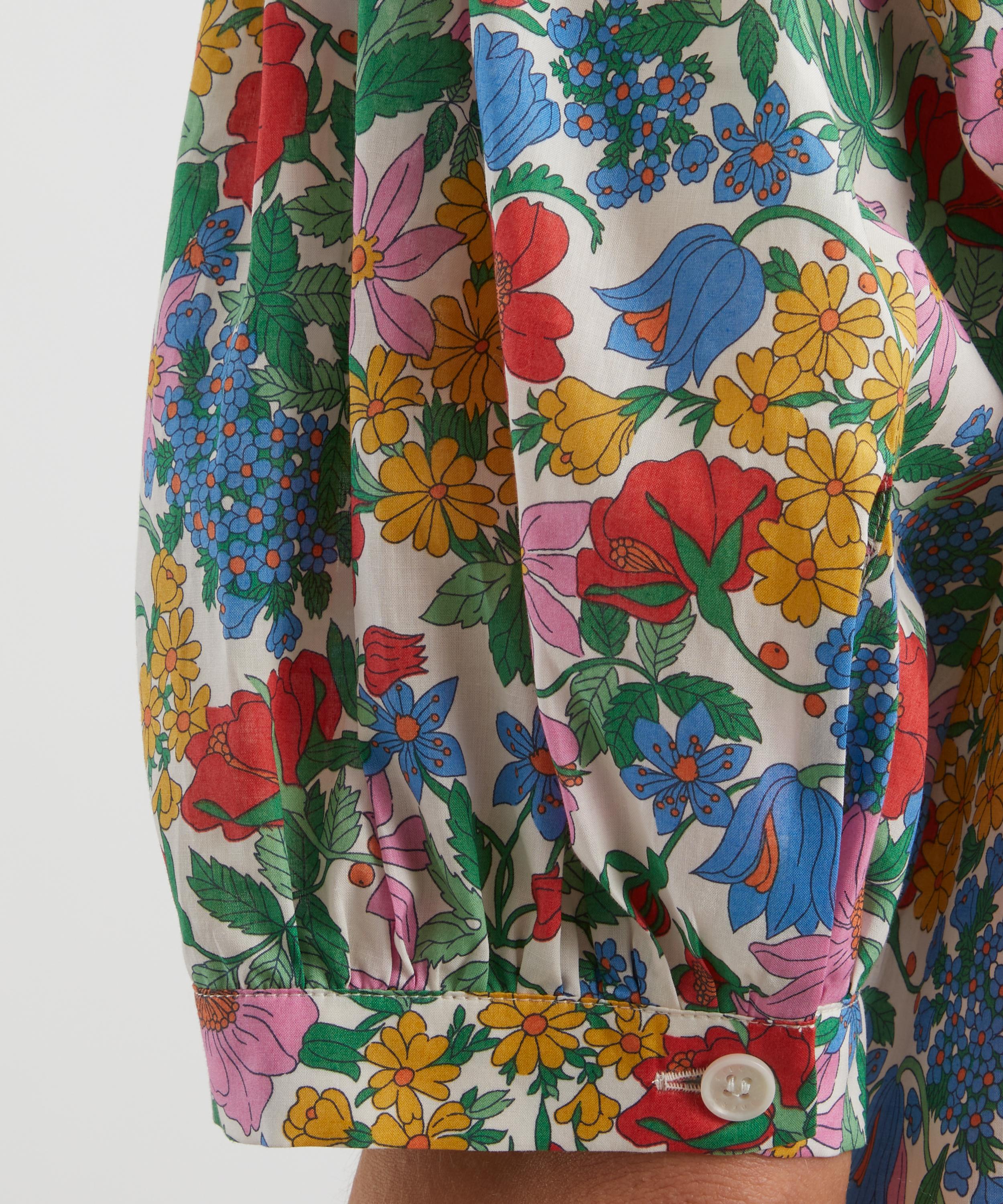 Printed in our very own cutting-edge Liberty fabric mill in northern Italy, this particular style of shirt showcases the Clarabell print - inspired by the vibrant beauty of summer gardens, Clarabell features intricate trails of anemones, roses, bellflowers, daisies, and forget-me-nots, creating a captivating symphony of form and colour.