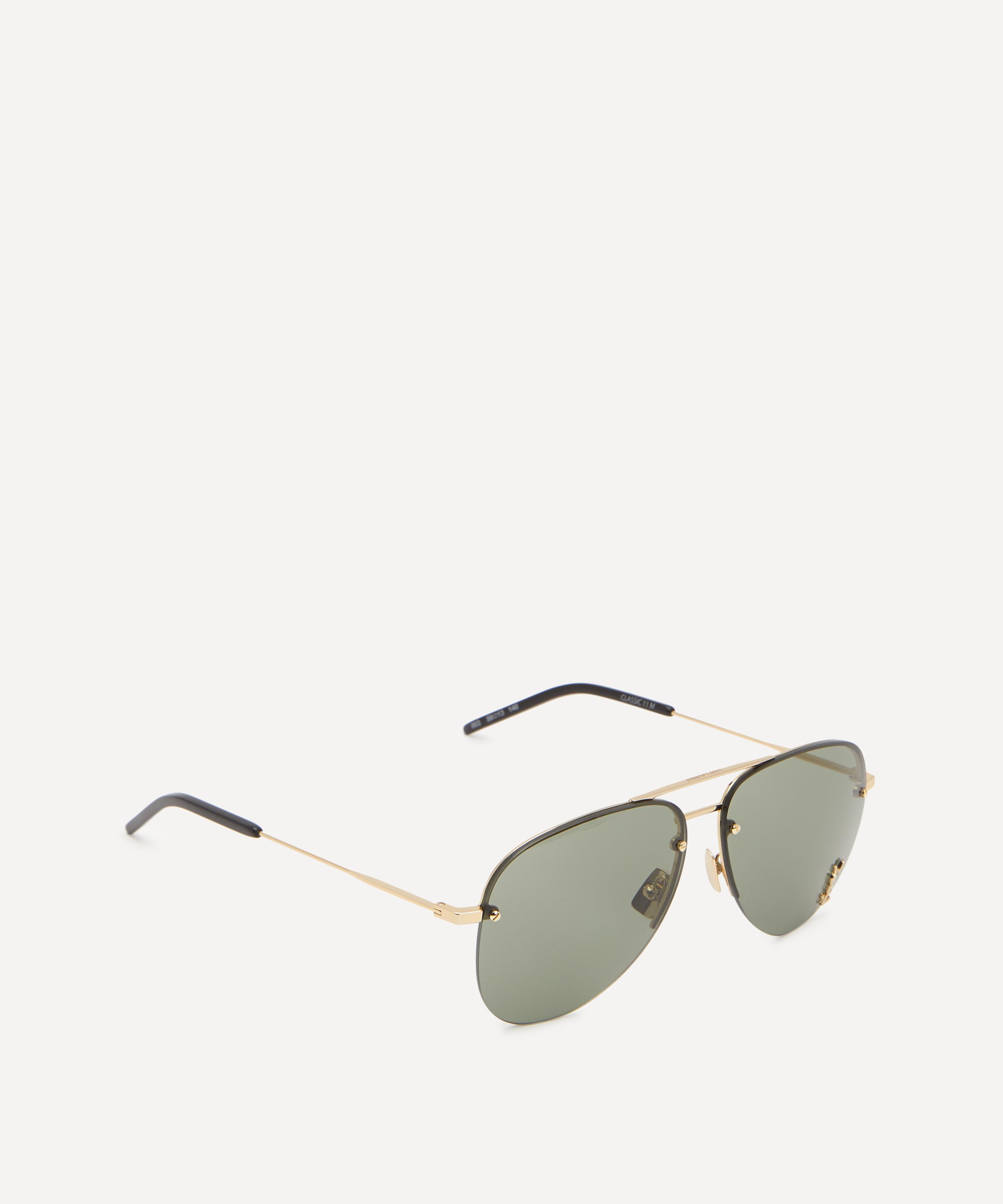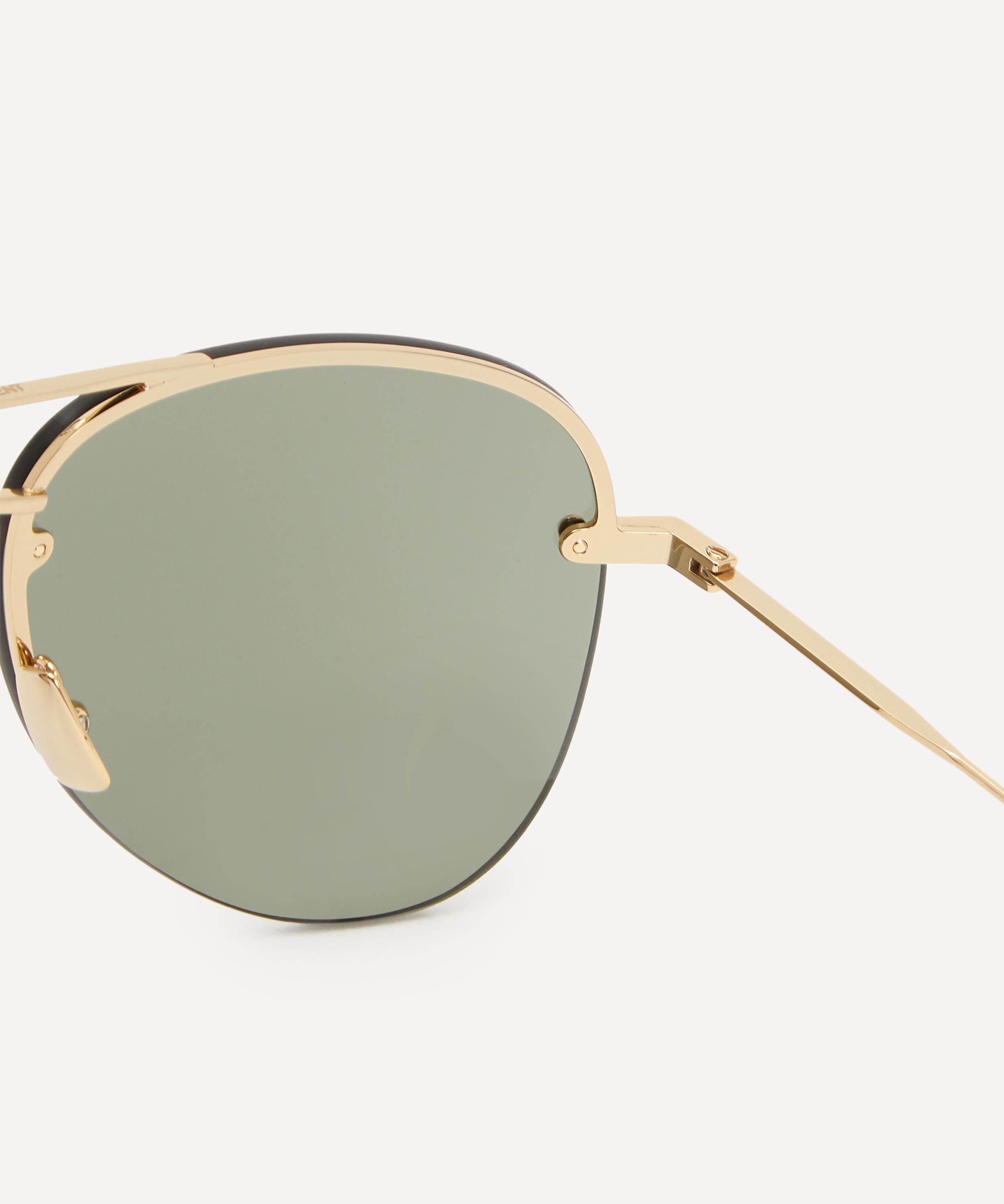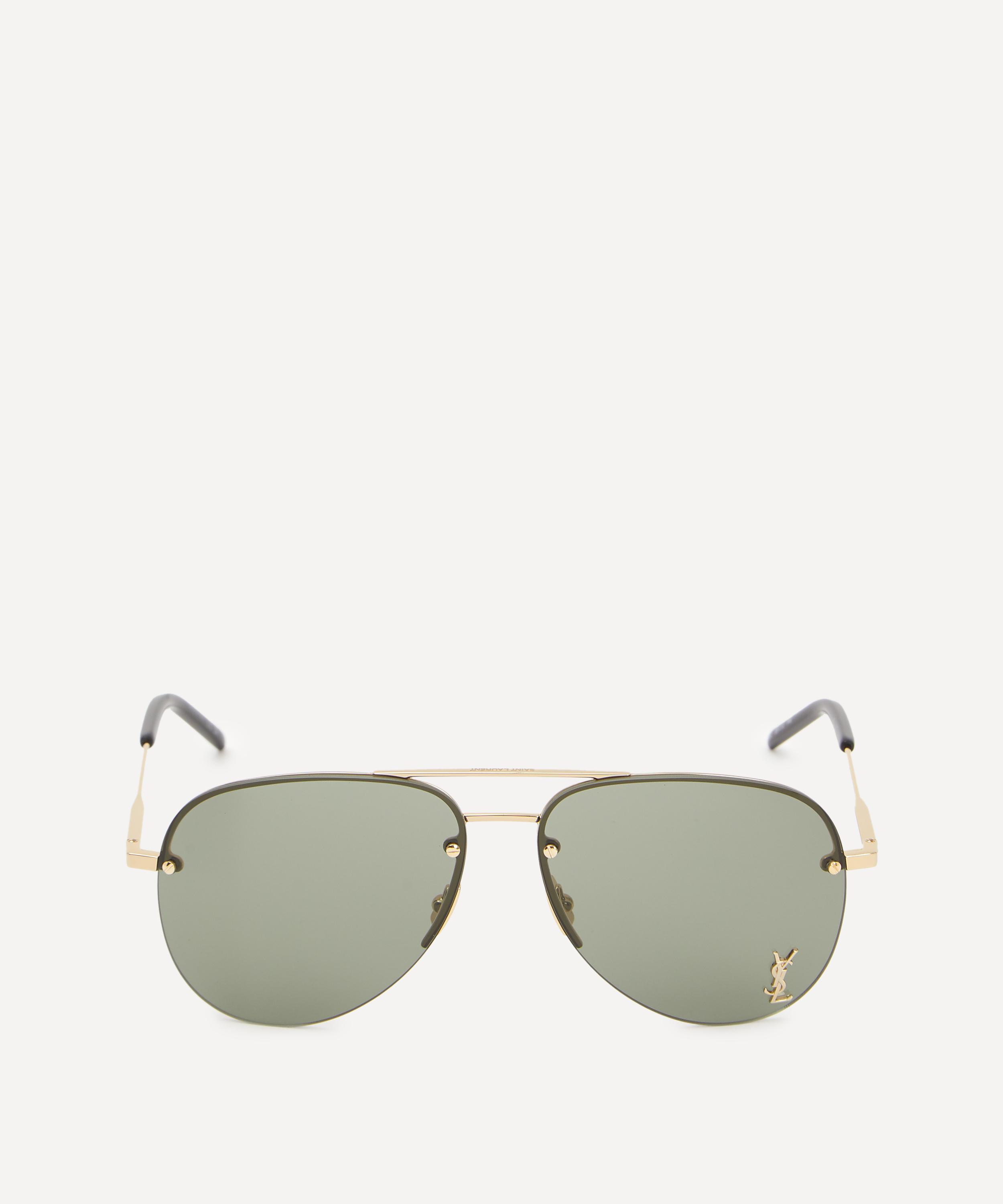 Featuring a rounded shape, these classic aviator sunglasses boast a thin gold-tone frame, complete with a lightweight metal bridge and iconic YSL monogram branding on its left, green lens. A statement-making, power pair brimming with retro appeal, add this must-have silhouette to your eyewear wardrobe and keep your look sleek for seasons to come.